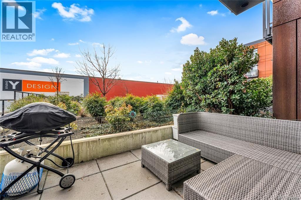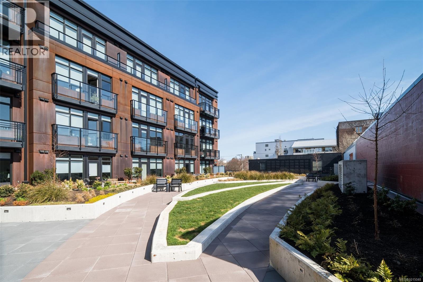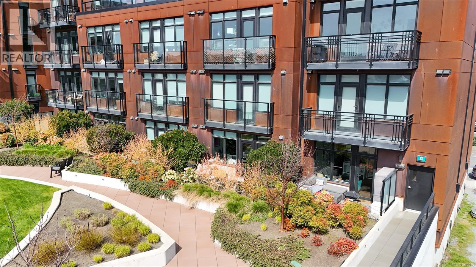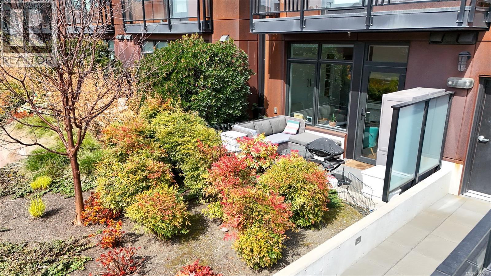 $223.50 MonthlyWelcome to this modern and private, end-unit suite boasting a bright and sunny elevated courtyard patio that is complete with secure underground parking at the Ironworks, in the heart of BC’s historic Capital. The combined living and dining space features a modern kitchen, incorporating premium appliances, quartz countertops, unique backsplash, dual-tone cabinetry and open shelving that blends well with the BBQ-friendly, south-facing outdoor space - perfect for small pets and faces the quiet courtyard outlaid with luscious grass and greenery to enjoy serene afternoons nestled away from the daily downtown activity. This condo has in-unit laundry, a beautiful 3 piece bathroom with contemporary matte black plumbing fixtures & a rain shower head all designed by LeFevre and Co., a local leader in Victoria Development. Steps from the city's best restaurants, cafes, shops, markets, culture venues, and nightlife making it easier to choose the lifestyle that you prefer. (id:44393)