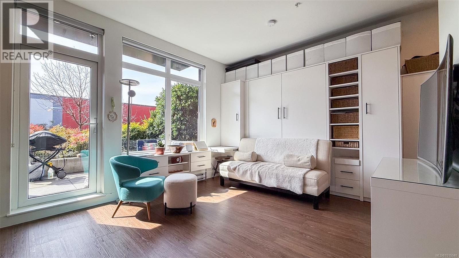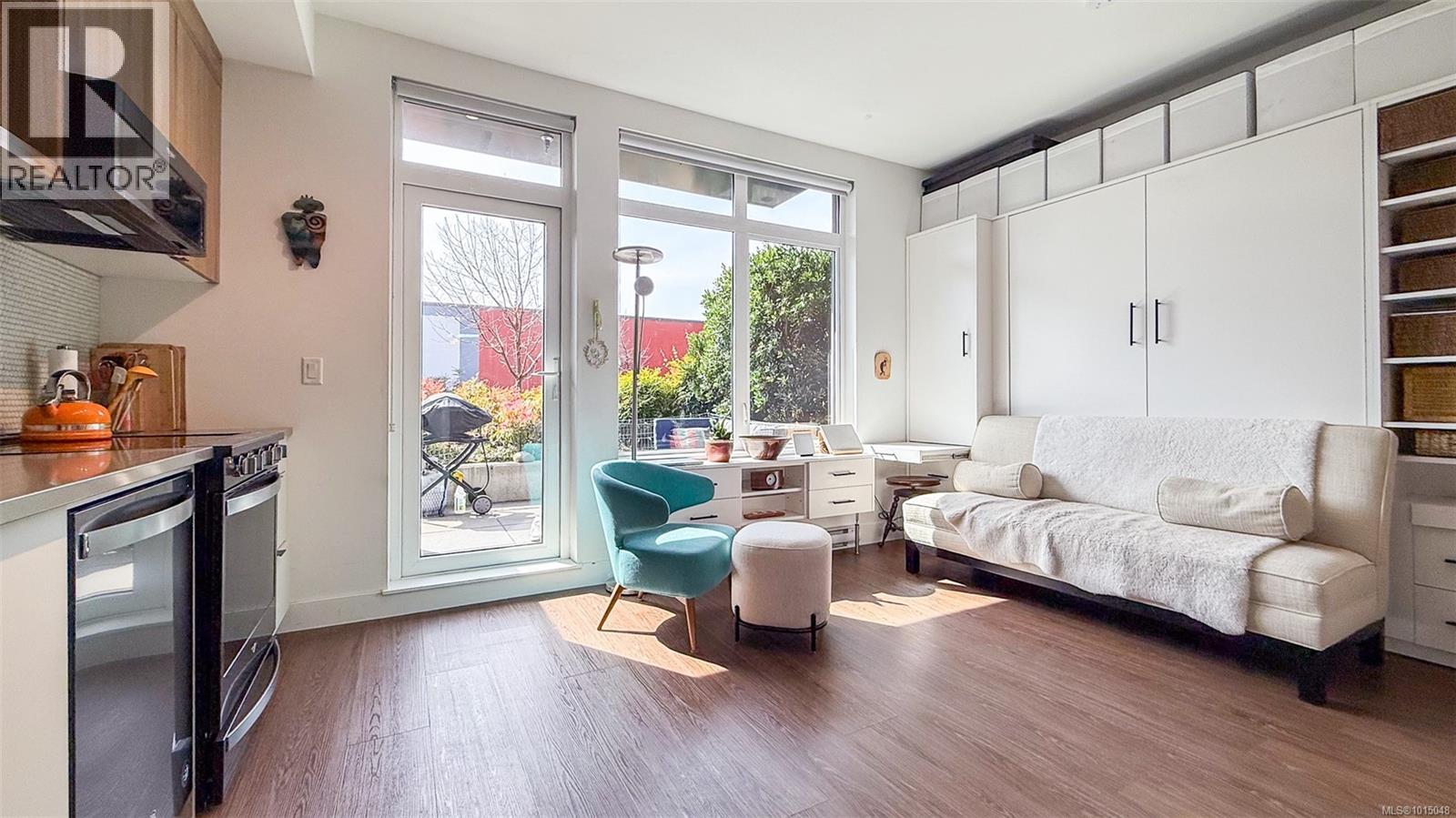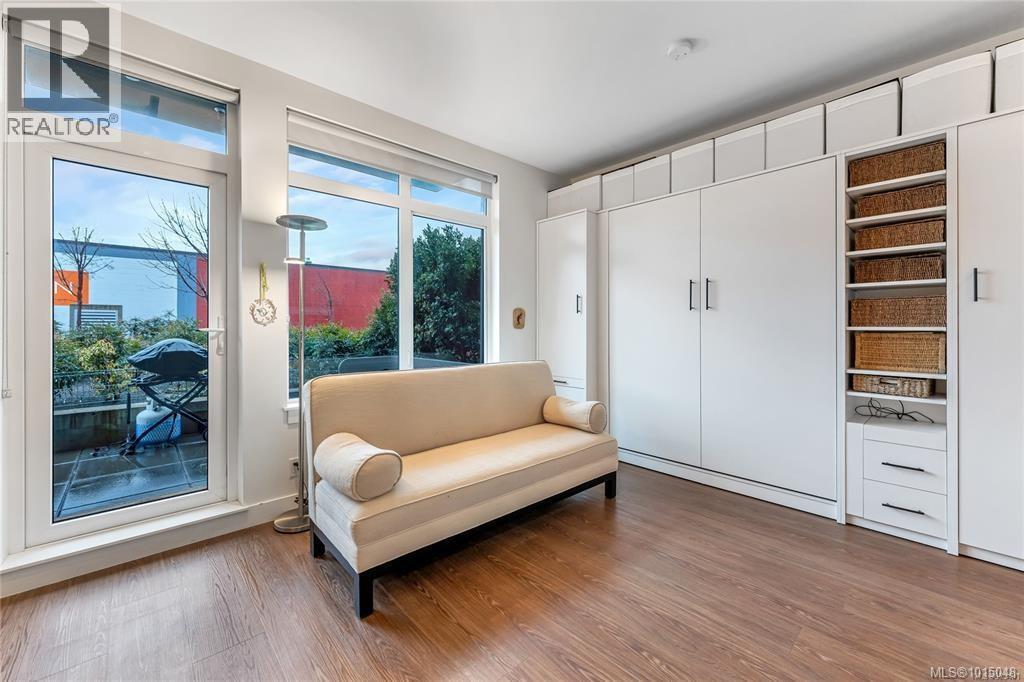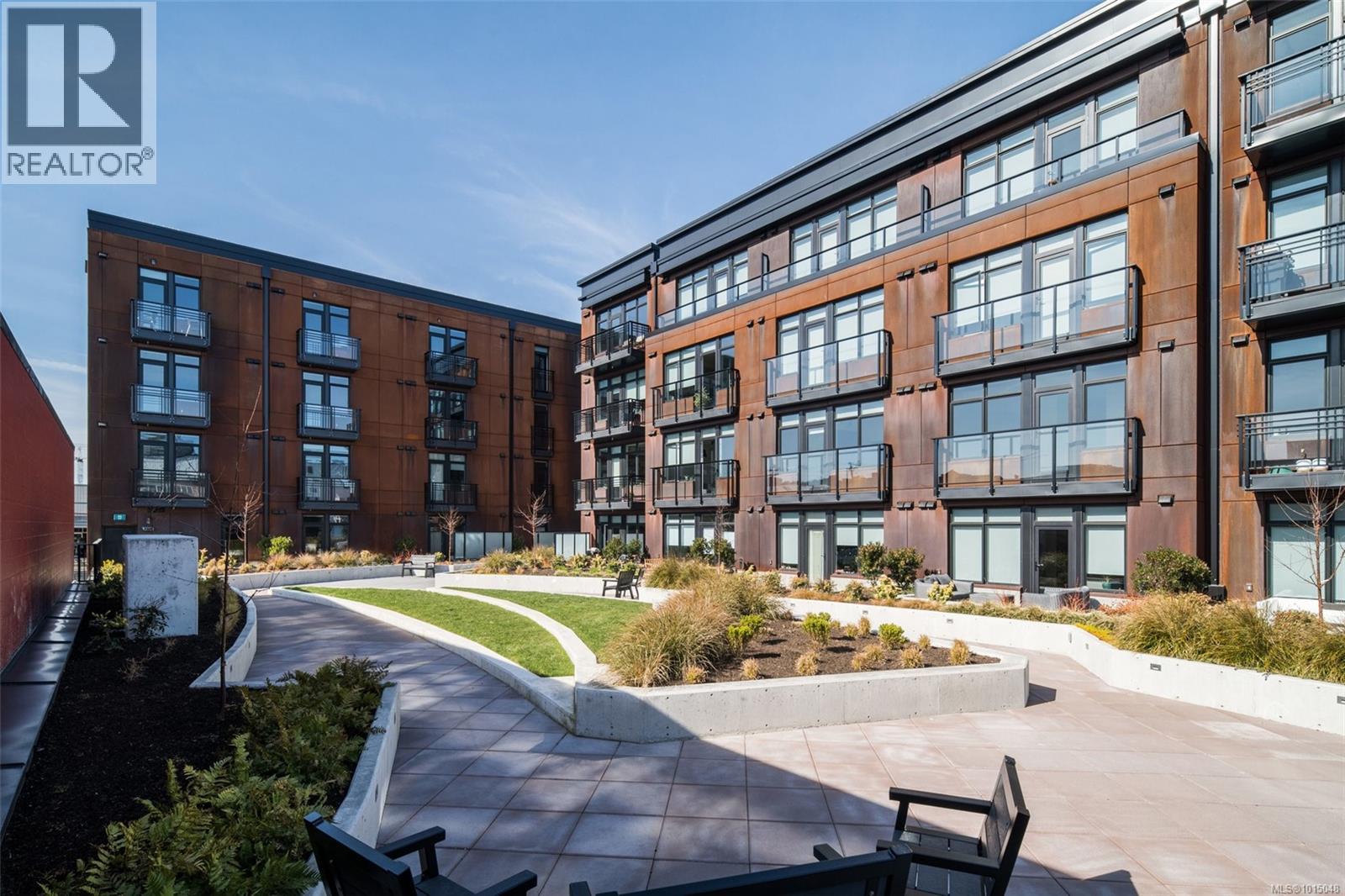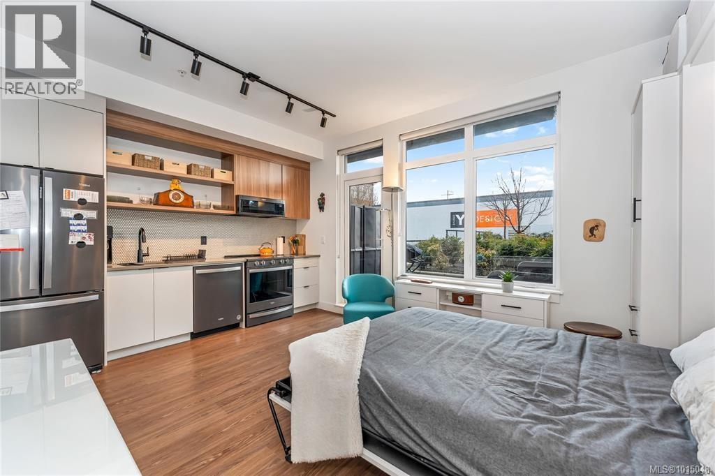 $223.50 MonthlyWelcome to this modern and private, end-unit suite boasting a bright and sunny elevated courtyard patio that is complete with secure underground parking at the Ironworks, in the heart of BC’s historic Capital. The combined living and dining space features a modern kitchen, incorporating premium appliances, quartz countertops, unique backsplash, dual-tone cabinetry and open shelving that blends well with the BBQ-friendly, south-facing outdoor space - perfect for small pets and faces the quiet courtyard outlaid with luscious grass and greenery to enjoy serene afternoons nestled away from the daily downtown activity. This condo has in-unit laundry, a beautiful 3 piece bathroom with contemporary matte black plumbing fixtures & a rain shower head all designed by LeFevre and Co., a local leader in Victoria Development. Steps from the city's best restaurants, cafes, shops, markets, culture venues, and nightlife making it easier to choose the lifestyle that you prefer. (id:44393)