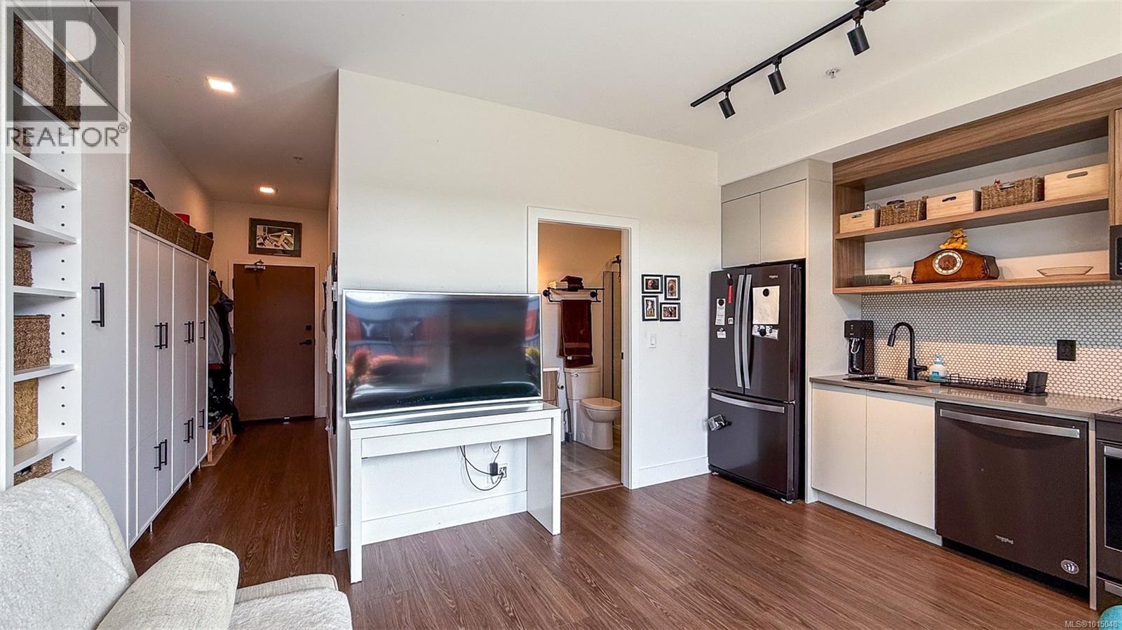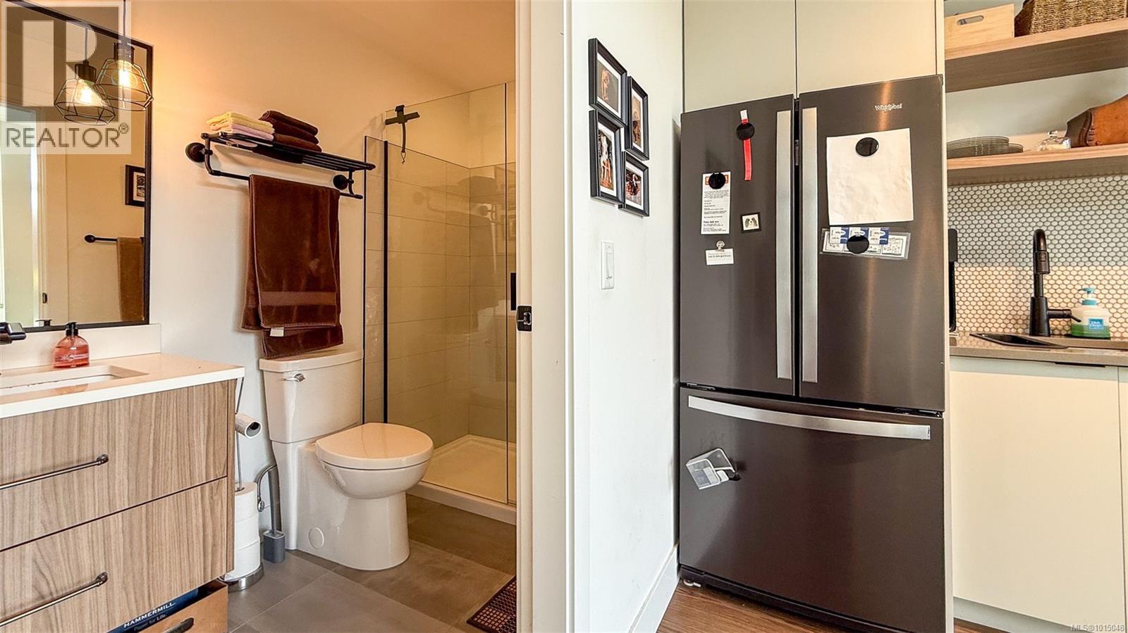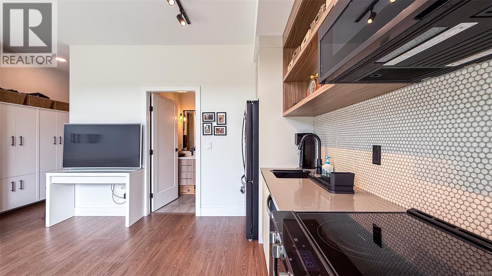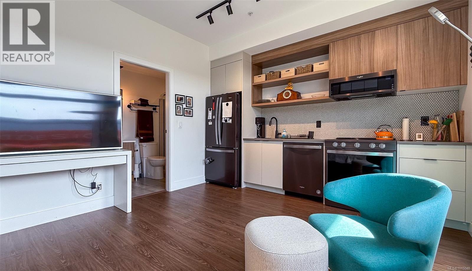 $223.50 MonthlyWelcome to this modern and private, end-unit suite boasting a bright and sunny elevated courtyard patio that is complete with secure underground parking at the Ironworks, in the heart of BC’s historic Capital. The combined living and dining space features a modern kitchen, incorporating premium appliances, quartz countertops, unique backsplash, dual-tone cabinetry and open shelving that blends well with the BBQ-friendly, south-facing outdoor space - perfect for small pets and faces the quiet courtyard outlaid with luscious grass and greenery to enjoy serene afternoons nestled away from the daily downtown activity. This condo has in-unit laundry, a beautiful 3 piece bathroom with contemporary matte black plumbing fixtures & a rain shower head all designed by LeFevre and Co., a local leader in Victoria Development. Steps from the city's best restaurants, cafes, shops, markets, culture venues, and nightlife making it easier to choose the lifestyle that you prefer. (id:44393)