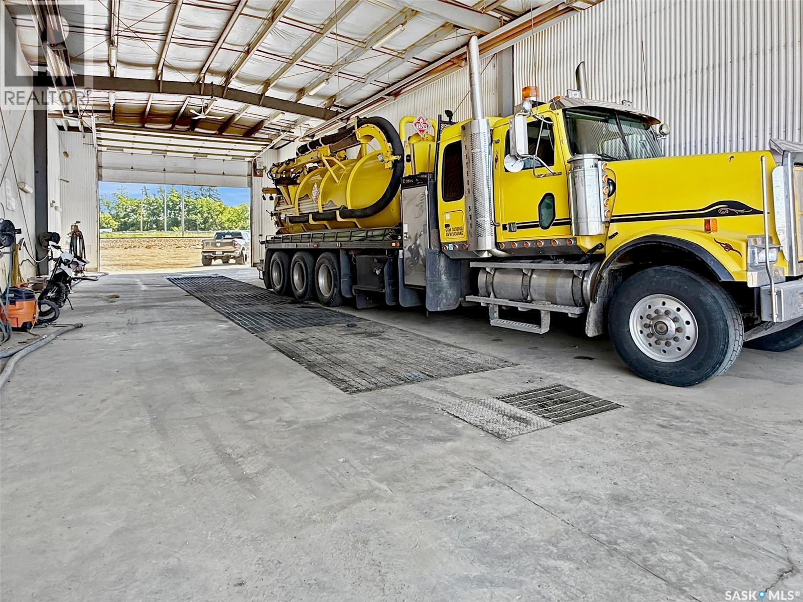 Looking for a prime location to house your growing business? Look no further. 2190 S. Service Rd. E. offers a .902-acre lot, centrally situated at the intersection of Highway 4 and South Railway St., just one exit from Highway 1. Located directly beside the railroad track on the southeast edge of the city, this property boasts exceptional accessibility. Accessibility is not the only advantage, Imagine the marketing potential with signage visible from this thoroughfare—expect exponential growth! The shop itself is impressive, with the main shop area spanning 4,250 sq. ft. It features open work space, two overhead heaters, one infrared heater, a lifting bar, and three overhead doors—two measuring 14 x 16 ft. and one measuring 16 x 16 ft. Adjacent to the shop, you'll find a versatile office area, currently including a 314 sq. ft. break room with laundry facilities, two washrooms, two separate office areas, and a large reception room with direct exterior access, providing an ideal space for your business's front end operations. Above, there's an open mezzanine currently divided into two office areas. Attached to the main shop is a 28.5 x 80 sq. ft. wash bay, added in 2012 by a reputable builder. This space is equipped with a central drain and features doors on each side allowing trucks to drive, measuring 16 x 20 ft. tall. All doors are automatic, fit with a 4 inch file line, the buildings, along with the roofs, are constructed of metal for optimal durability and the building is fit with three phase power. The lot itself accommodates ample parking, with multiple plug-in stations and additional space for an entire fleet. Significant yard construction has been completed to cater to heavy equipment, with the ground pressed and compacted accordingly. The property is connected to city water and municipal sewer. A comprehensive environmental analysis has been conducted, confirming the property is clear, report available with an accepted offer. Call for more information (id:44393)