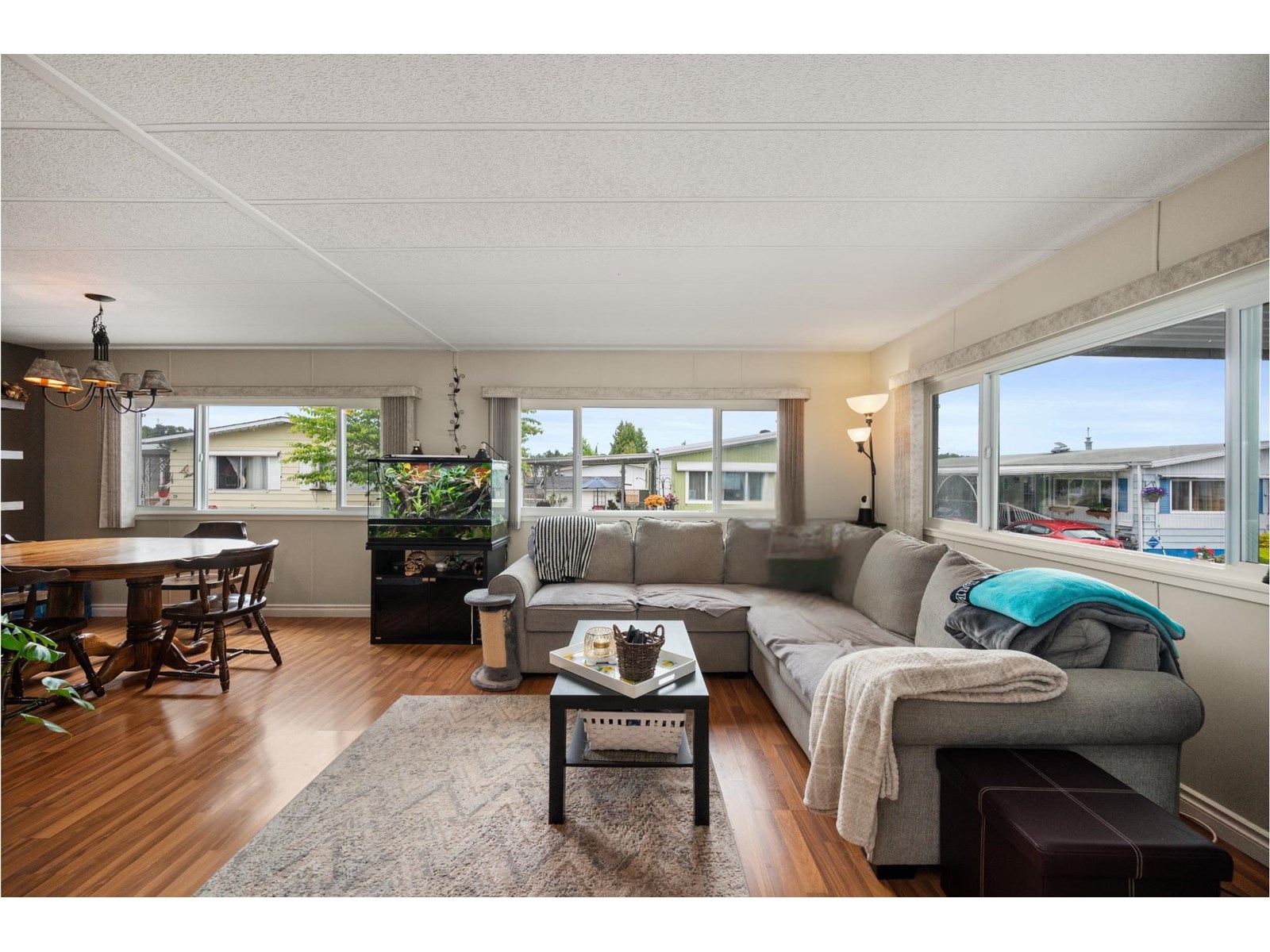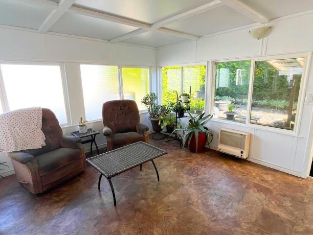 Enjoy a VERY PRIVATE, SOUTH FACING backyard lined with tall hedges, plus a WORKSHOP. This 2-bed, 2-bath double-wide offers a large living space, an updated kitchen, and a large sunroom. The primary bedroom includes a 4-piece ensuite, with the secondary bedroom having Jack-and-Jill access to the second bath. Features include a new torch-on roof (2025), windows (2019), A/C, and fresh updates. Pad rent only $911 includes water, sewer, garbage, and land taxes. Highly sought-after Westwood Estates is a quiet 55+ community where large dogs are welcome with manager approval. This is a must see! (id:44393)