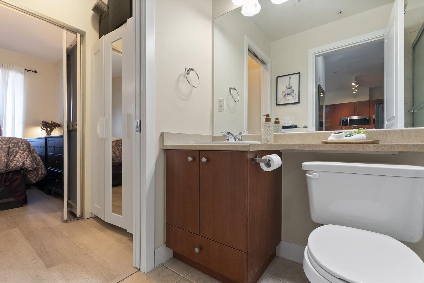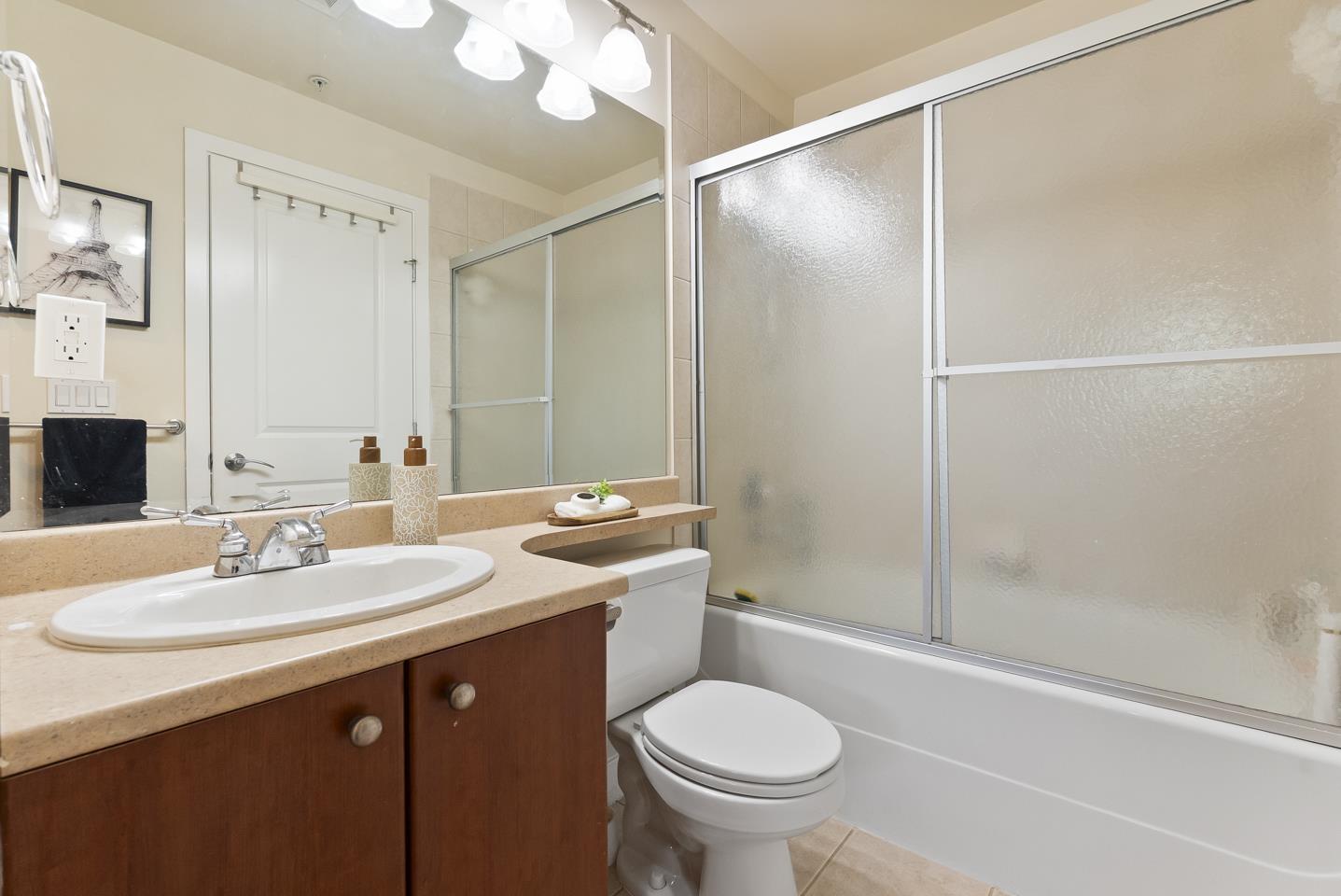 $293.13 MonthlyYour home search ends here; welcome to Charlton Park by Omni! This bright 1bed/1bath offers a smart open layout w/ sunlight streaming through large windows, plus 2023 updates including vinyl laminate flooring & a refreshed kitchen w/ brand-new stainless steel appliances. Walking through, step onto your unique L-shaped balcony; the covered section is a cozy, year-round retreat w/ a rare semi-enclosed wall for seclusion, so no nosey neighbours or passersby peeking in, while the open side is ideal for morning sun or garden corner. Enjoy resort-style amenities like a pool, hot tub, sauna, gym, guest suites, clubhouse & playground. The location is unbeatable: stroll to Guildford Mall, parks, transit, and be on Hwy 1 in minutes. It doesn't get more convenient than this in the heart of Guildford (id:44393)