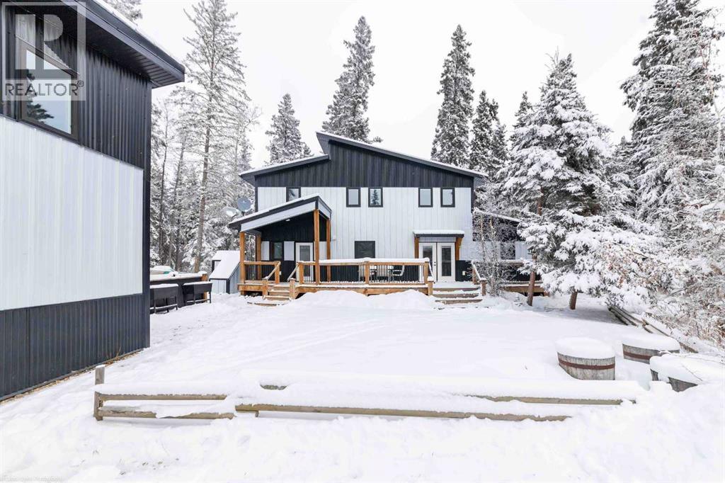Brightsand Lake, Saskatchewan year-round residence. This 4-bed 3-bath all-season lake house was built in 2020. The stunning 2-storey home is situated in a cul-de-sac in the Sandy Point development. A short walk through the stands of mature spruce trees takes you to the Brightsand Lake shore line where you can swim, boat, fish or simply enjoy the spectacular lake without the crowds. The main level has an open concept kitchen, living and dining area. The kitchen features a large island with seating, stainless steel appliances including a dual oven, soft close cupboards and both pendant and pot lighting. The adjacent dining area is a large space, great for family gatherings with convenient access to the front deck. The living room boasts a vaulted ceiling and lots of windows that offer beautiful views. The room is accented by a cozy wood burning stove. The main level primary suite has a large closet and a 4-pc ensuite. Finishing the main level is a 3-pc powder room, laundry room and utility room. Notice the large closet with bench seating conveniently close to the main entry. The upper floor hosts three spacious bedrooms and a full 4-pc bathroom. White washed pine ceilings feature throughout the home and add to the cabin feel. There is in-floor heating on both levels. The front and back decks offer great outdoor space to enjoy the surroundings. Outside is a single detached garage, a shed, bunkhouse and wood shed. The metal siding and metal roofing on both the home and garage are a plus. The satellite dishes and cell phone booster stay. Yes, there is an RV plug. Water is from a well. Septic is a tank with Bluetooth alarm. Call to view this beautiful Brightsand Lake property! The seller/builder of this property will go over the systems of the home to ensure a smooth transition for the next owner. Also note: Seller will consider trades of a lesser value: Do you have a property that you would like to sell first before buying your dream cabin. Do you have a lake lot right now and you want to build a new cabin or improve your old one but don't know where to start with that. Maybe you have an acreage with an old house or a piece of farm land or bush land that you would like to sell. This seller will consider taking your vacant land, lake lot, lake cabin, acreage, farm land, pasture land, bush land or house in one of the surrounding communities such as St. Walburg, Turtleford or Paradise Hill on trade. (id:44393)