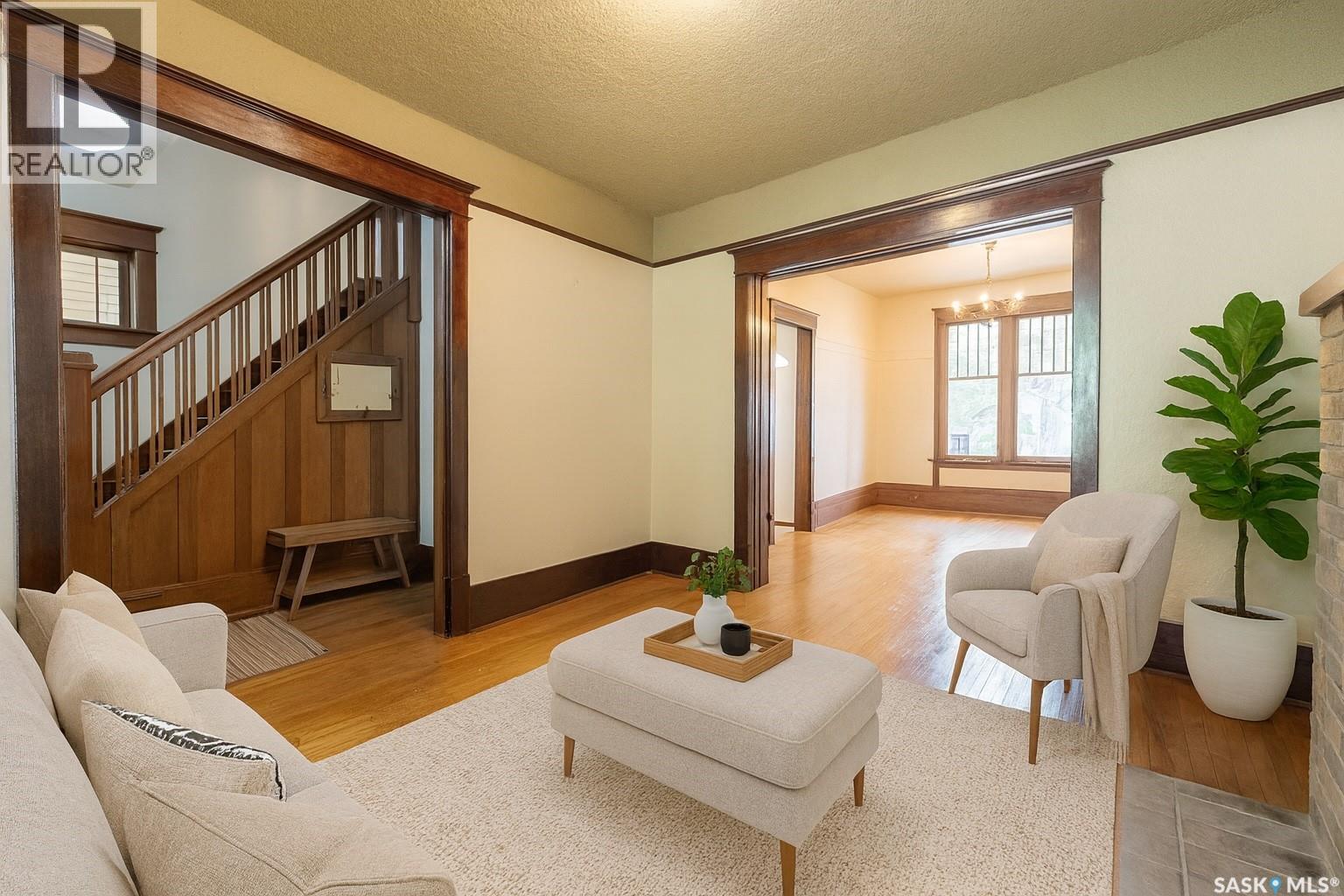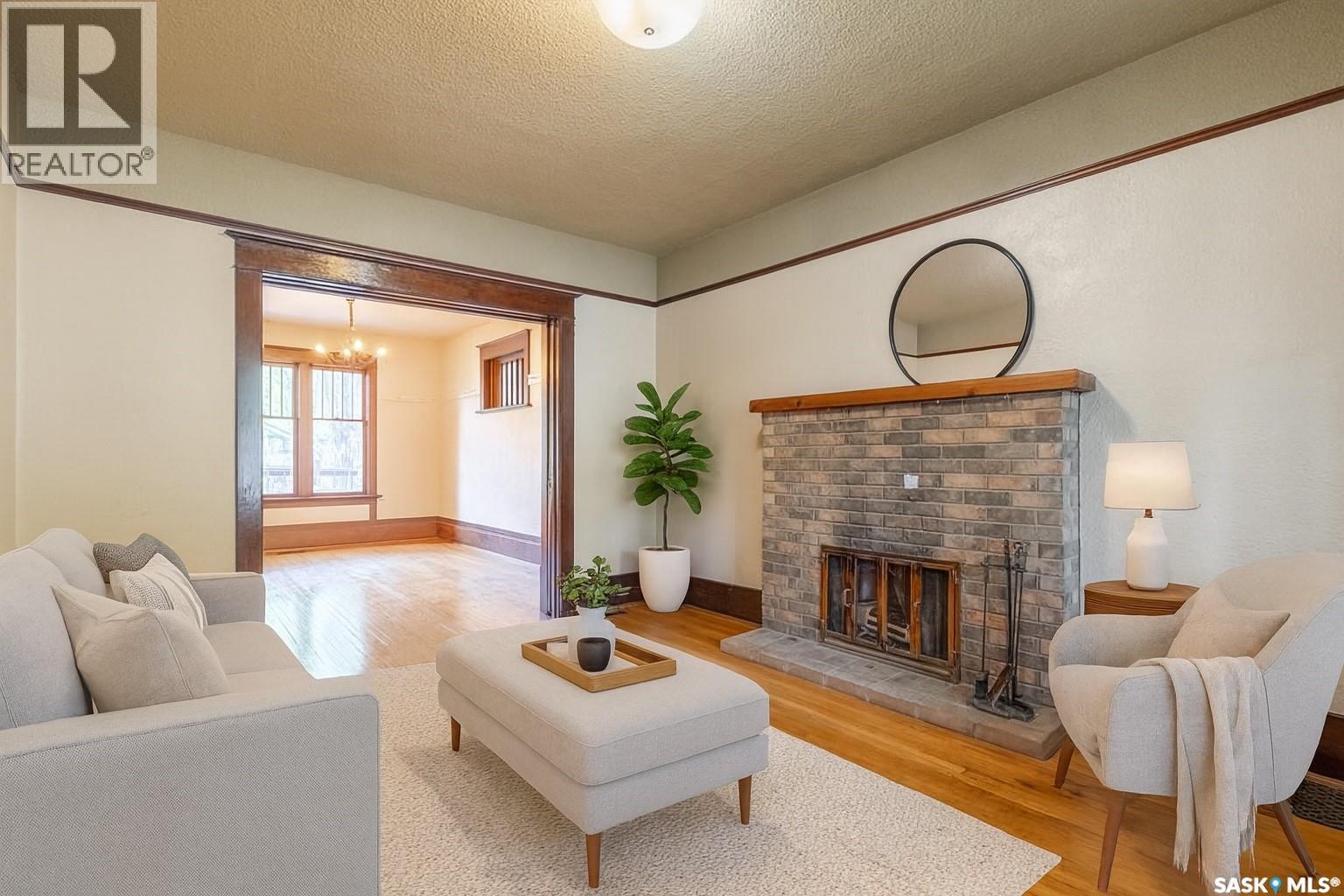 Welcome to this charming and spacious 4 bedroom, 2½ story home located in the heart of Regina’s vibrant Cathedral area. Just two blocks from the school and a very short walk to the restaurants, bars, and eclectic shops of 13th Avenue, this home offers the perfect blend of community living and urban convenience. Inside, the home makes excellent use of its square footage with 9 foot main floor ceilings and large rooms throughout while maintaining the majority of its original solid wood character and timeless appeal. The inviting front porch and rear deck provide great street presence and outdoor living spaces. Recent updates include shingles, eave troughs with leaf guards, a high-efficient furnace, and water heater, AC, while the updated electrical panel adds further peace of mind. The structure appears to be very solid, and the basement offers both a large den and plenty of storage space. The home has had recent paint both inside and out. On the second floor, one of the oversized bedrooms was previously used as a studio, making it an ideal option for a home office, studio, Bonus room or exercise room—a versatile area that adds to the home’s functionality. The majority of the flooring is Original hardwood. Warm up around the wood burning Fireplace this winter. The expansive kitchen provides ample cabinets and a pantry room with door to back deck. Convenient for bringing in the groceries. Large bathroom has a stand alone claw foot tub and a second area for added storage or could act as a linen room or relaxation area. This Cathedral gem combines character, space, and updates in one desirable package and is available for immediate possession. (id:44393)