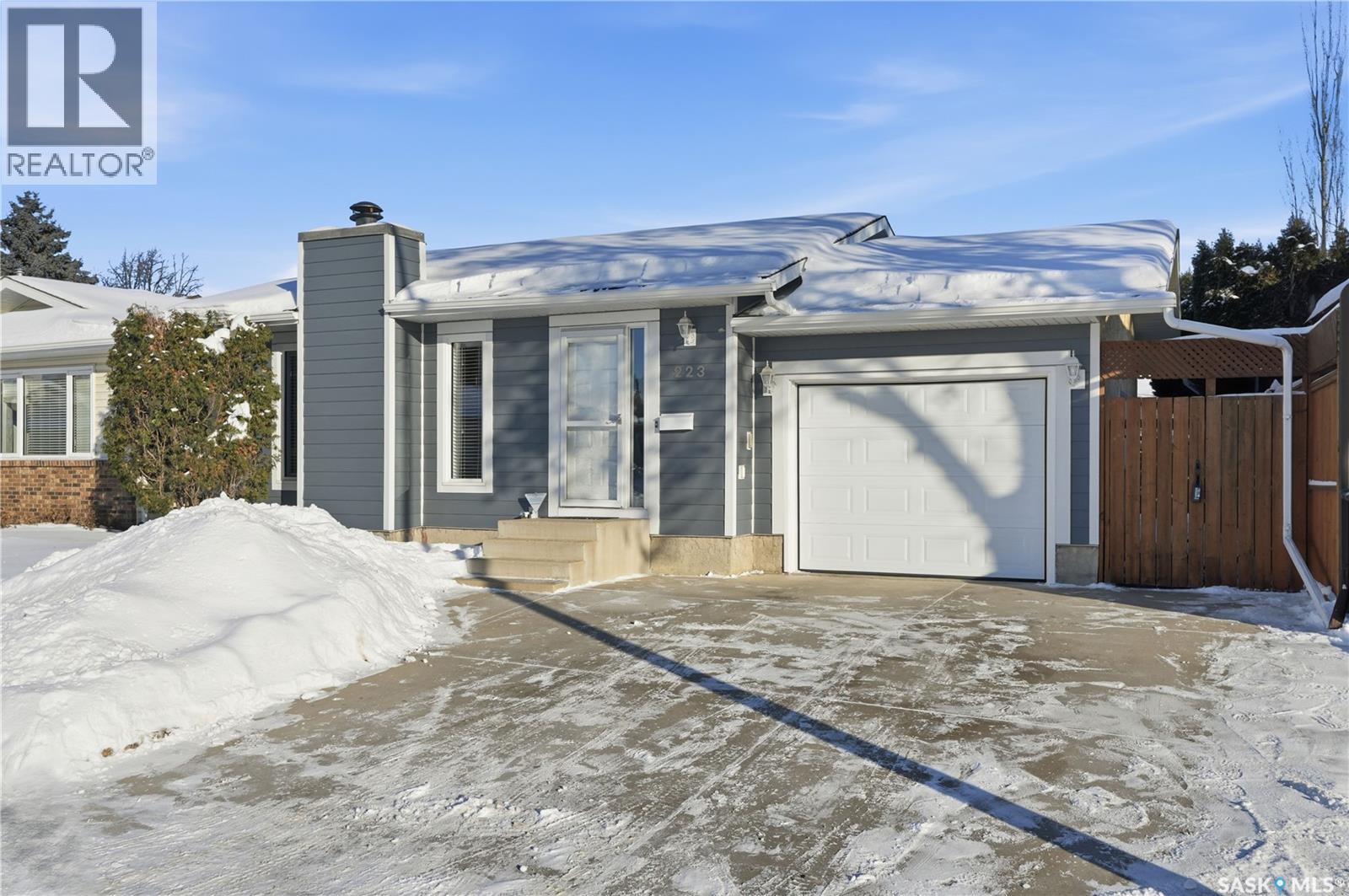 Lakeview Bungalow!!! Welcome to 223 Delaronde Lane, Saskatoon. This 1116 sq ft bungalow offers 4 bedrooms, 3 bathrooms, attached single car garage and a generous sized yard. This property has had some upgrades over the years: high eff. furnace/water heater, shingles, front exterior Hardie Board siding, and main floor bathroom. Other key notables: central air conditioning, central vac, air exchanger, surround sound in basement, soaker tub, wood fireplace, concrete patio, and a huge shed out back. Located in a quiet neighbourhood close to schools makes this a perfect family home. Pride of ownership is evident when you walk through this home so don't miss out!! (id:44393)