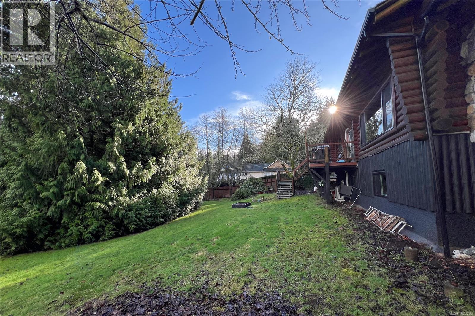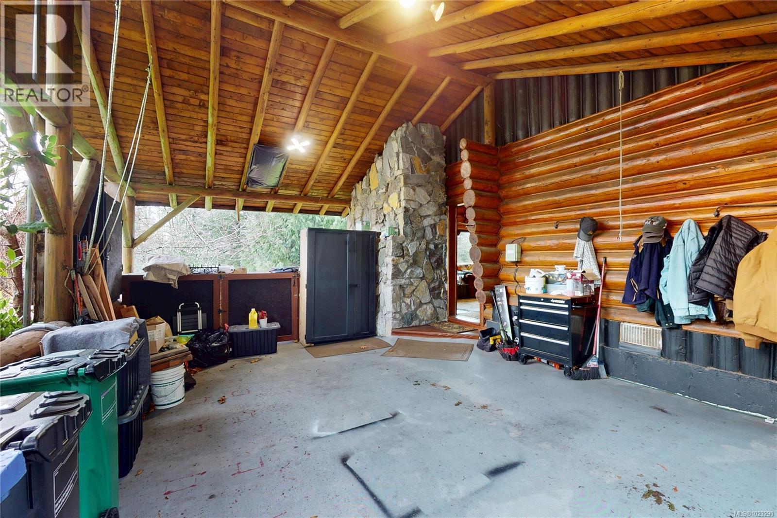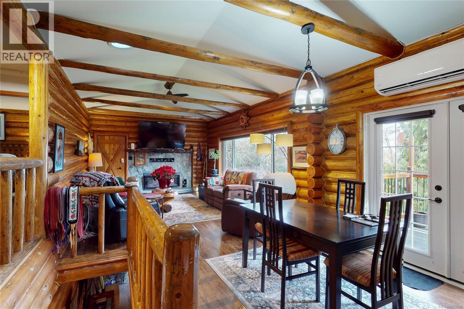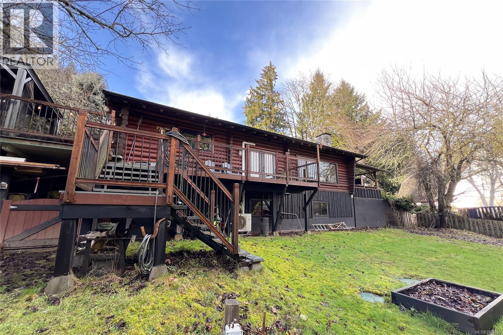 Discover the charm of this rustic log home in South Mill Bay, nestled on a tranquil half-acre lot at the end of a quiet no-thru road—just 17 minutes from Langford. This inviting three-bedroom rancher features the warmth of wood throughout and a full walkout lower level. The living and dining area exudes cozy ambience with a wood-burning fireplace and new French doors opening to a spacious deck overlooking a fenced backyard with plum and apple trees. Recent upgrades include a stunning new kitchen with heated floors, a new ensuite and refreshed second bathroom, new vinyl windows and doors, a heat pump, pellet stove, and improvements to both the septic system and well. Downstairs offers a family room, third bedroom, bathroom, and a large unfinished space perfect for a workshop, hobby room, wine-making area, or more living space? Outside, enjoy the expansive yard and a charming log outbuilding with windows and a concrete floor—ideal for an artist’s studio. The home also features a high-producing well, beautifully refinished exterior logs, a roomy attached carport, and a circular driveway for easy access and parking. (id:44393)