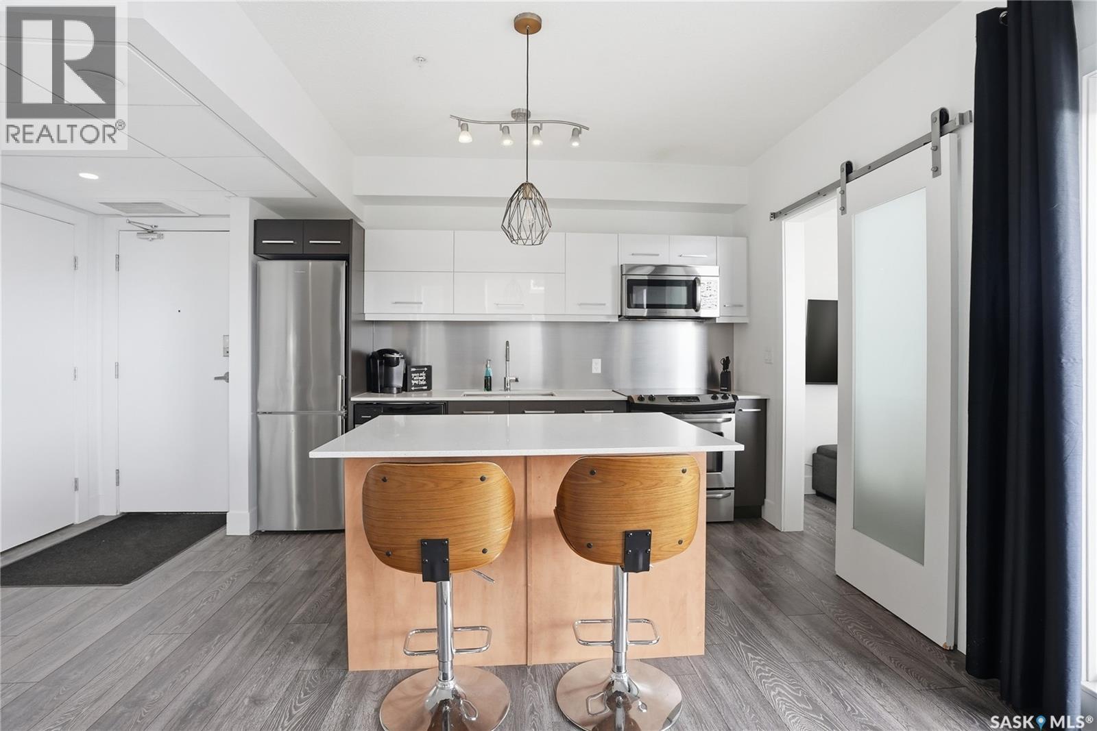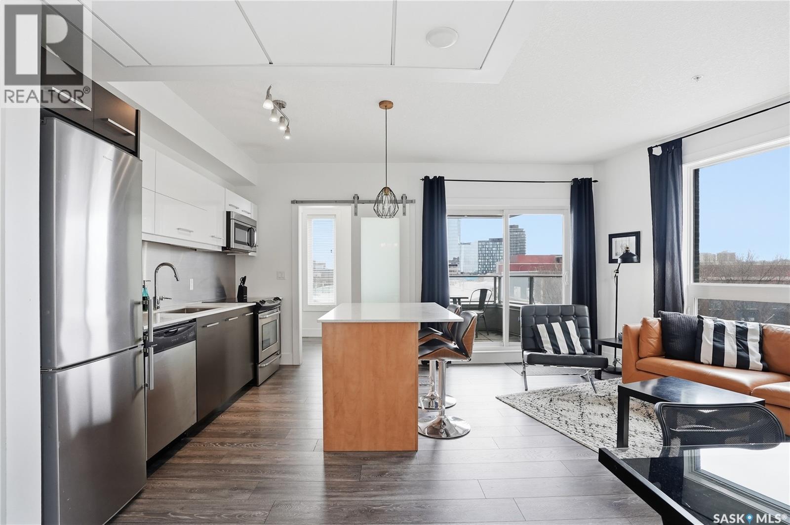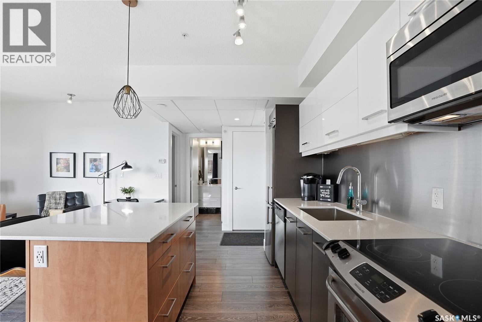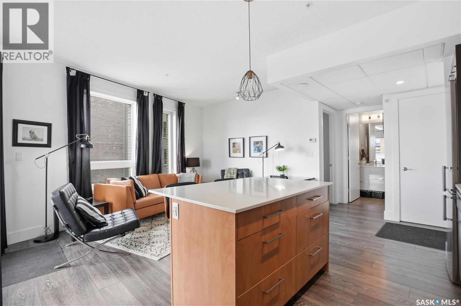 $345 MonthlyWelcome to #225-404 Avenue C South. The Banks is an exclusive development located in the heart of Riversdale, just steps away from the river. This unique boutique condominium development offers riverbank views, a modern interior, and a Southeast-facing balcony. Four contemporary buildings mixing residential and commercial were constructed by the award winning Le Febre Group from British Columbia in 2015. As one of the fastest growing communities, that means the area is home to some of the best amenities. Gather Local Market, Homequarter Coffeehouse, Local Barre, Yoga studio, hair salons, pet grooming, Remai Art Gallery, Persephone Theatre, and Isinger Park are among the fantastic attractions in the area; not to mention the seemingly endless shopping and dining opportunities of downtown Saskatoon. It’s even a stone’s throw from the shops on Broadway Avenue. Buyers with a keen eye and good taste will appreciate the orientation and features of this unit. With fantastic access to the cityscape and river; you’d be hard pressed to find such a valuable location. A thoughtfully laid out kitchen features quartz countertops, stainless steel appliances, an island, and plenty of cabinet storage. The living room is certainly the place to be to enjoy the sunlight. Access the door to the balcony here to get out and enjoy the sunshine and views. Other features include in-suite laundry, central air conditioning, covered balcony, security cameras + secure entry, elevator service, one underground parking stall and a secure storage unit. Pets are allowed with restrictions* (id:44393)