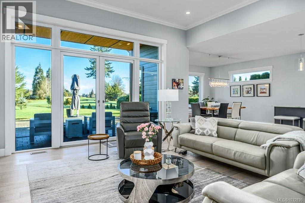 $110 MonthlyWelcome to Hampton Gate, an exclusive gated golf community located at Crown Isle on Vancouver Island. This contemporary rancher is ideally positioned between the 16th & 17th fairways, offering exceptional golf course frontage and unparalleled views down the 11th fairway. Set on a quiet cul de sac at the end of the complex on one of the largest lots, this custom built 2019 home showcases refined craftsmanship, including European white oak engineered hardwood flooring, Innotech tilt and turn windows, quartz countertops, and 11foot ceilings in the great room. Outdoor living is highlighted by a huge patio with interlocking pavers, a covered area for all season use, and a Watkins saltwater spa in a private setting. Green built options include EV charger, heat pump, and efficient natural gas on demand hot water tank/furnace/fireplace/bbq. With level entry living, wide hallways, and a 5 foot paved walkway encircling the home, this residence is a great option for all ages. Generous size garage fits 2 cars, storage and workshop area comfortably. Come and see why Hampton Gate is a great place to call home. (id:44393)