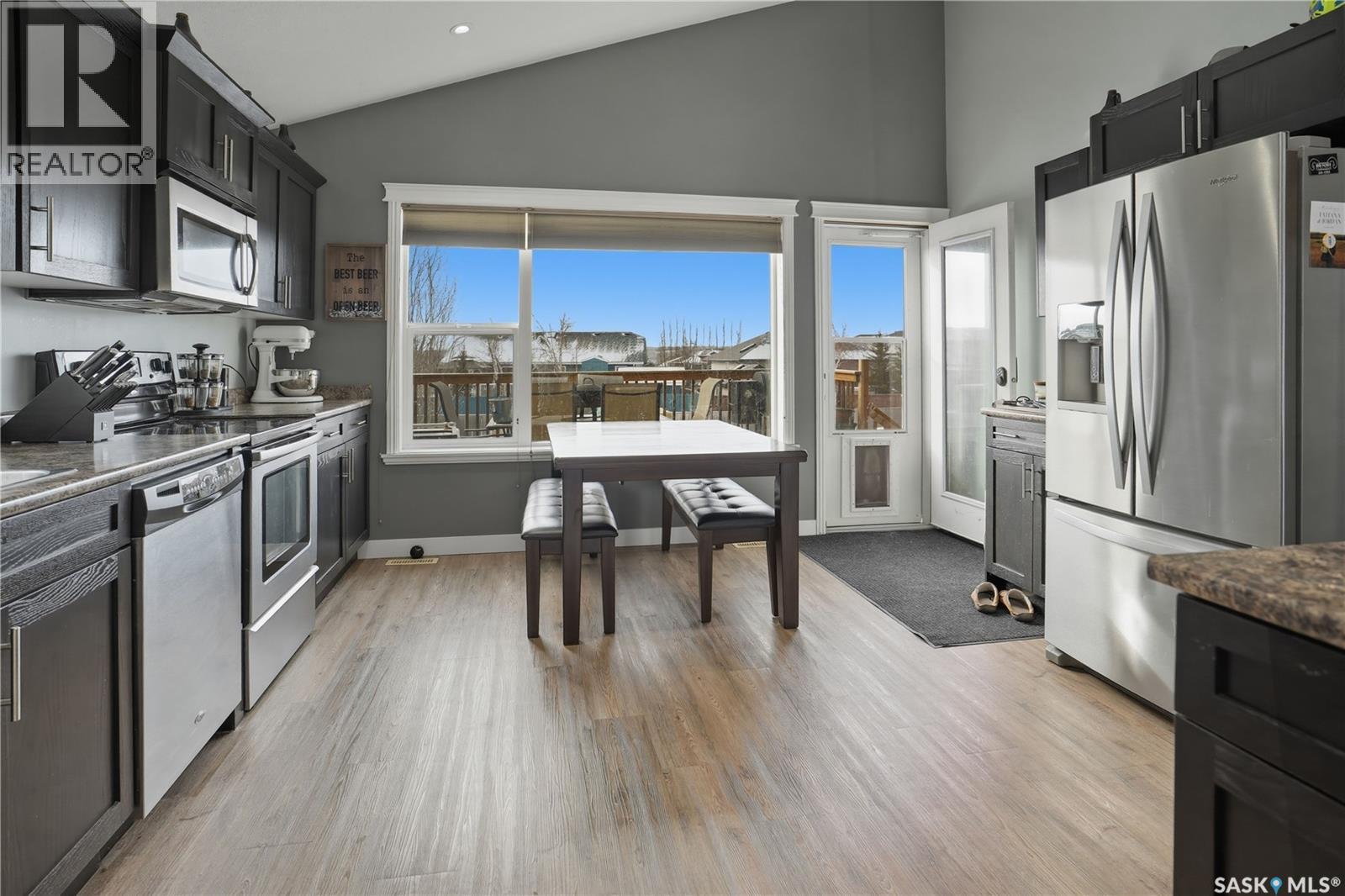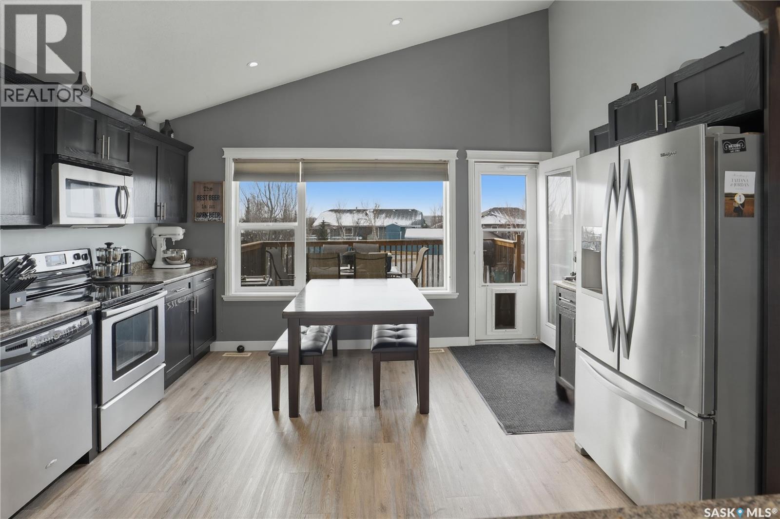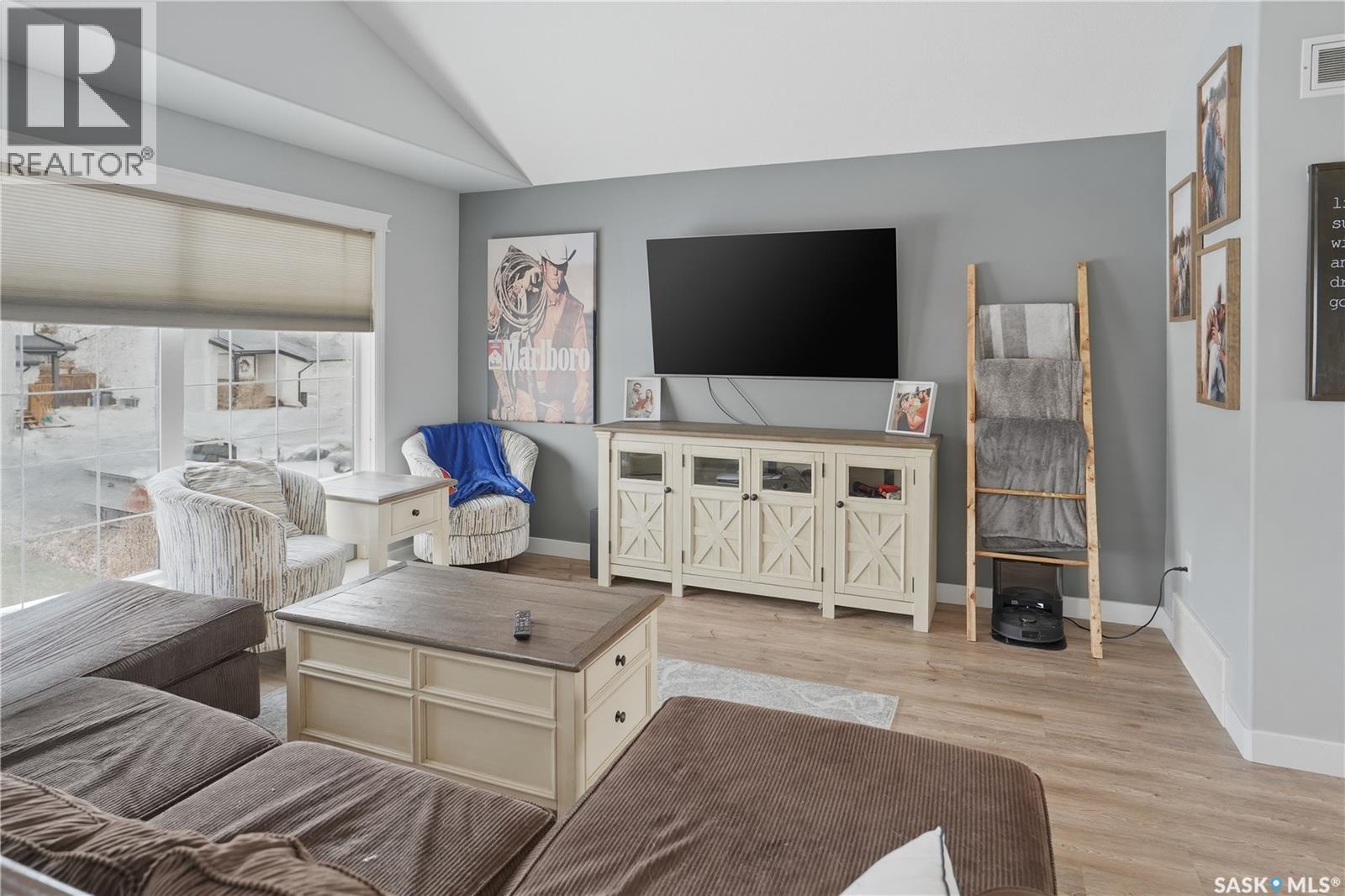 This beautiful bilevel is located in the heart of Battleford, backing onto green space and just steps from a nearby park and walking trail. Built in 2012, this quality home offers a functional and spacious layout with two bedrooms up and two down, providing generous room sizes and excellent living space throughout. The main level has been recently transformed by removing the wall between the living room and kitchen, creating a bright, fully open-concept layout. Large windows, vaulted ceilings, and brand new vinyl plank flooring enhance the modern feel. The kitchen features high-end cabinetry, a corner pantry, island, ample counter space, stainless steel appliances, and direct access to the spacious deck. The main floor also offers the convenience of two full four-piece bathrooms, including a massive primary bedroom and an additional bedroom. The fully developed basement includes two more large bedrooms, another 4 piece bathroom, and an impressive recreation room, perfect for entertaining or relaxing with family. The large backyard is fully fenced, with firepit area and tons of closed in storage under the deck. Additional highlights include underground sprinklers front and back, central air conditioning, and plenty of parking. If you’re looking for a move-in ready home in a fantastic location, this one checks all the boxes. Call today to book your showing! (id:44393)