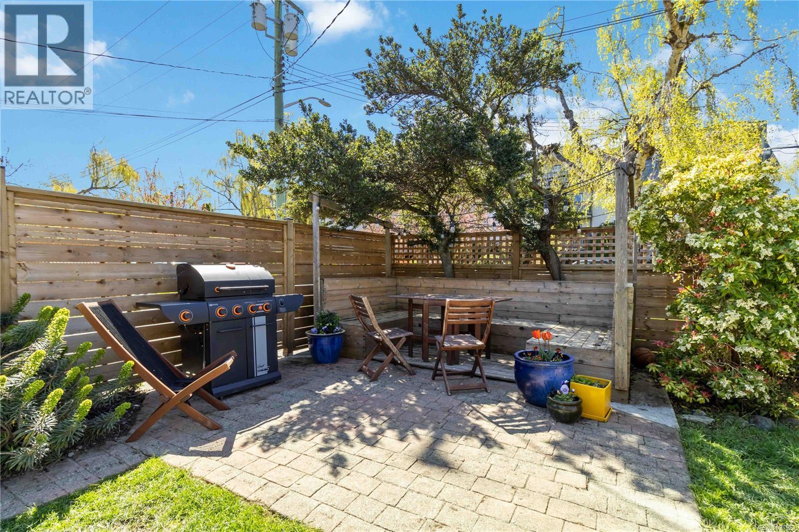 James Bay Living at Its Finest. Ideally located just steps to the Inner Harbour, Dallas Road Waterfront, Beacon Hill Park, Fisherman's Wharf, and the everyday conveniences of James Bay Square Shopping Centre, this beautifully updated 3-bedroom plus studio, 2-bathroom character home offers the ultimate walkable lifestyle. Designed to feel like a detached home—only connected by a small rear awning—it blends timeless charm with modern upgrades, including original solid hardwood floors, coved ceilings, skylights, a new ducted heat pump, upgraded insulation, updated kitchen with new cabinetry and pantry, renovated bathrooms, refreshed lower level with new flooring and finished laundry, hot water on demand, new appliances, and 200-amp service. The self-contained studio (currently vacant) offers excellent flexibility for a mortgage helper, guest space, or home office, while the sunny south-facing backyard and fresh exterior paint complete this exceptional offering. Location, lifestyle, and opportunity all in one—this is James Bay living at its best. (id:44393)