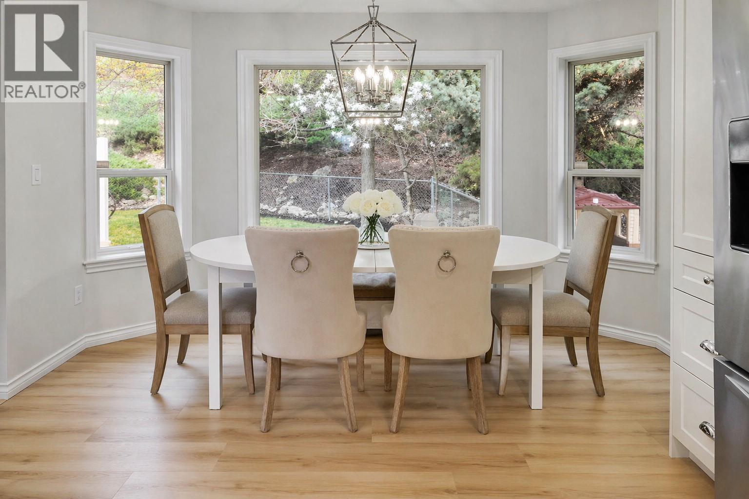 Live the dream in the Okaganan in this beautifully finished 5 bedroom home complete with a 2 bdrm mortgage helper suite and located in the highly sought-after community of Dilworth. Spanning on 1/3 acre lot, this home is situated in close proximity to beach, vineyards, shopping and everything Kelowna has to offer. The lower level is a self-contained suite with separate entrace to 2 bdrms, full bath, spacious family room, full kitchen, storage room and ensuite laundry, with versatility to extend into the main home with any future needs. Fall in love with this brand new kitchen featuring quartz countertops, dreamy faucets, granite farm sink and functional design. The upper level includes 2 good-sized bdrms and a primary bdrm of your dreams including a walk-in closet complete with laundry and a private patio perfect for evenings in the hot tub. The high-end finishes are carried on throughout in the private ensuite and main bathroom complete with soaker tub. The main level also features 2 dining areas, a family room and living room opening to a private patio with grapevine trellis, perfect for entertaining. The large picture windows showcase the peaceful valley views and beautiful mature trees. A rare lifestyle highlight is direct backyard access from your private trail leading to a scenic lakeview recreation area with ping-pong table, bar seating, and playground. Features: vinyl plank flooring, upgraded plumbing (no Poly B), modern pot lighting, large fenced yard, double garage. (id:44393)