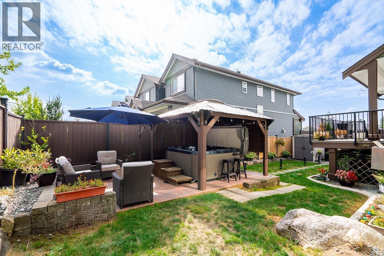 Welcome to Silver Woods in Silver Valley. This 4,365 square ft family home sits on a 5,996 square ft lot and offers 4 bedrooms up, including a luxurious primary suite with vaulted ceiling, elegant ensuite, and walk-in closet. The main floor features open-concept living with a 17 ft ceiling family room, coffered dining room, and custom kitchen. Comfort is maximized with a heat pump providing efficient heating and air conditioning. Enjoy outdoor living with a large deck, patio, and hot tub with gazebo. The daylight basement includes a 1-bedroom suite with separate laundry and private patio-ideal for in-laws or extended family. A 3-car garage, bright spaces, and quality finishes complete this exceptional home in a sought-after community surrounded by trails, parks, and nature. (id:44393)