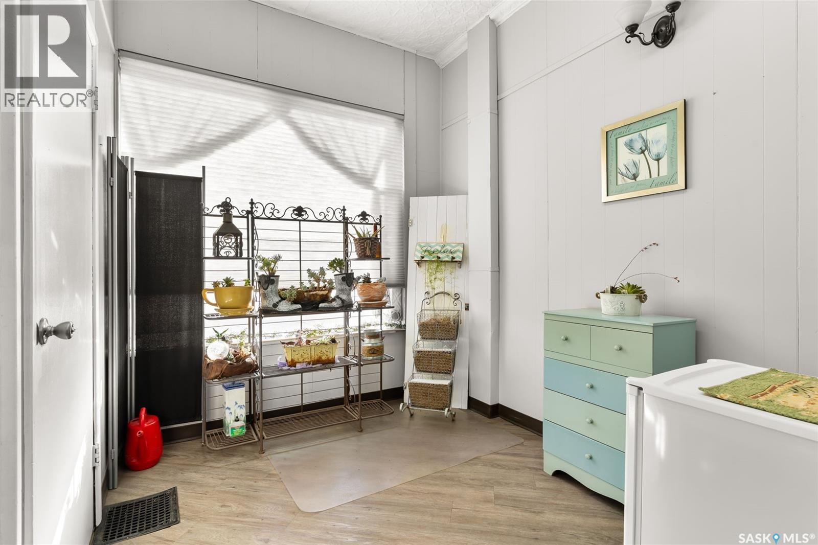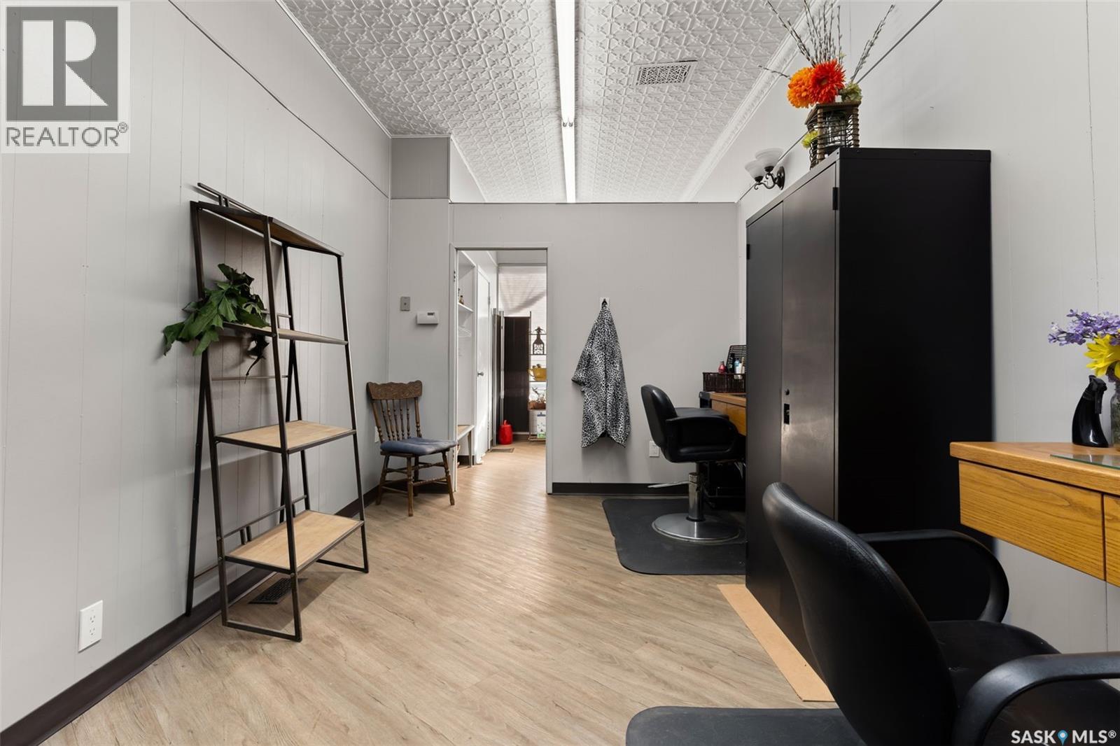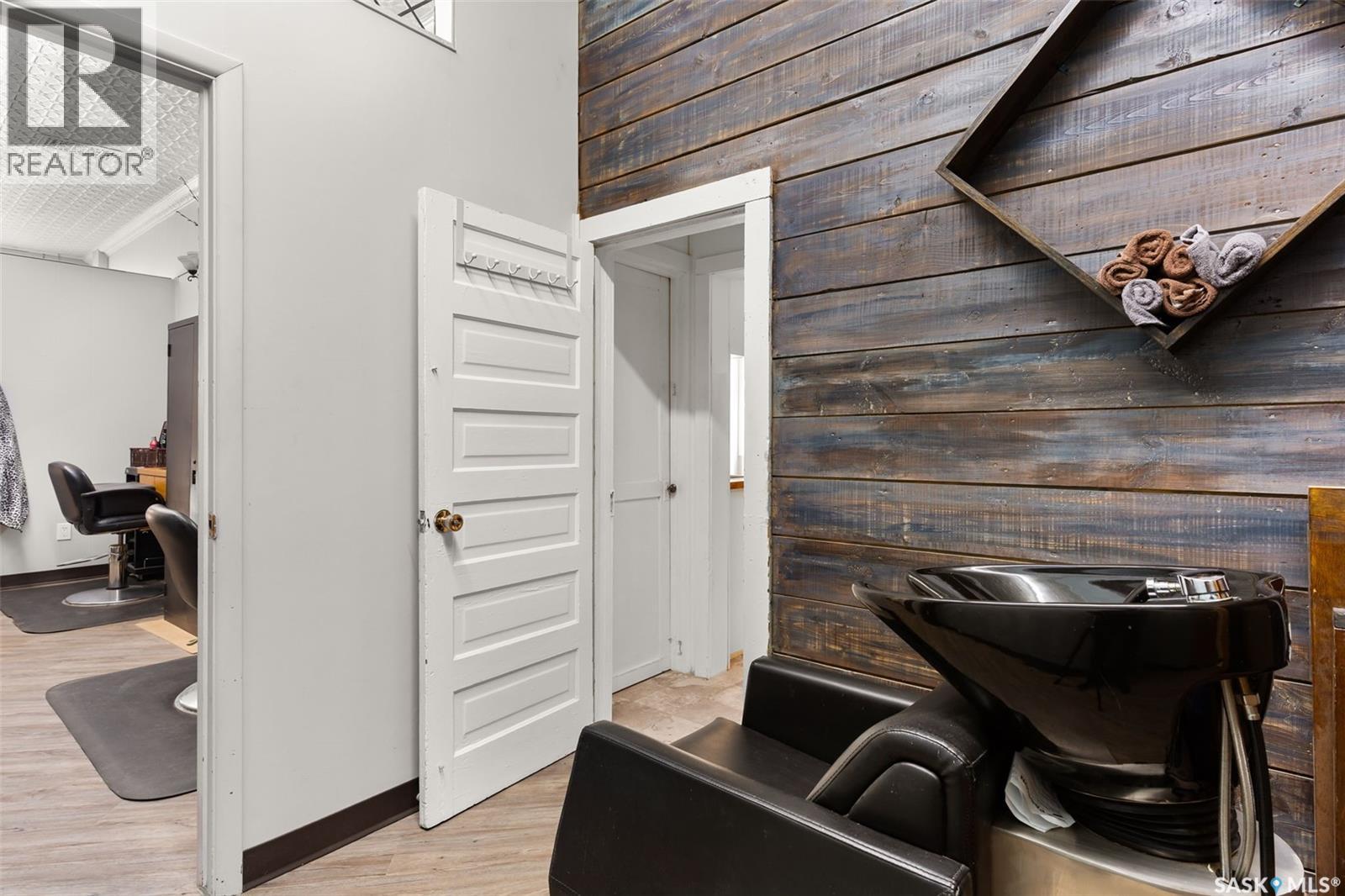 Located in Southey, SK on Railway Avenue with excellent site lines and visibility to Highway 6 is this 2,760 sqft mixed use commercial building. The building is comprised of 2 retail spaces and a 2 bedroom residential apartment. The end retail space is currently a tenant occupied vape shop. The tenant wishes to stay and is on a month to month lease. The vape shop was a former bakery and still has the commercial stainless steel sink and a gas line at the back that was used for the ovens. There is a dock door at the rear of the vape shop space. The centre retail space is a former hair salon that is in turn key condition with salon fixtures and plumbing in place. The salon has newer flooring, paint and a gorgeous tin ceiling. There is a laundry area at the rear of the hair salon plus a shared 2 piece bathroom for both retail areas to use. The salon space could be converted to other commercial uses. The residential quarters is spacious and filled with lots of light. It has been tastefully updated with newer flooring, paint, and updated 4-pce bathroom. The kitchen is fresh and bright with loads of cabinetry and kitchen appliances are included. The residence has one bedroom on the main floor and a second bedroom plus sitting room/den and a bonus room located on the second floor. There is a large storage area at the back of the building that can be shared. The building sits on 2 lots and there is ample parking in the rear for tenants accessed via the back alley. There is also an older garage at the rear that is currently being used for storage. (id:44393)