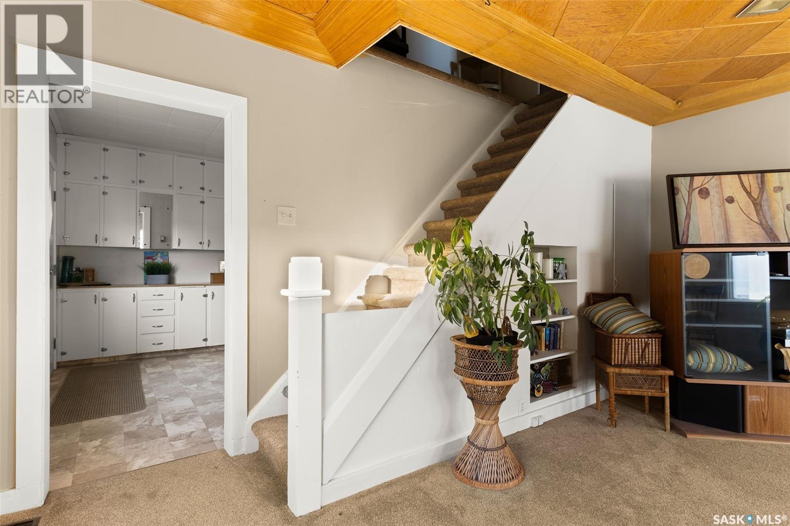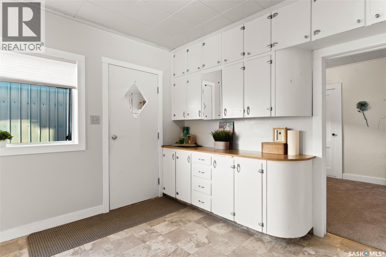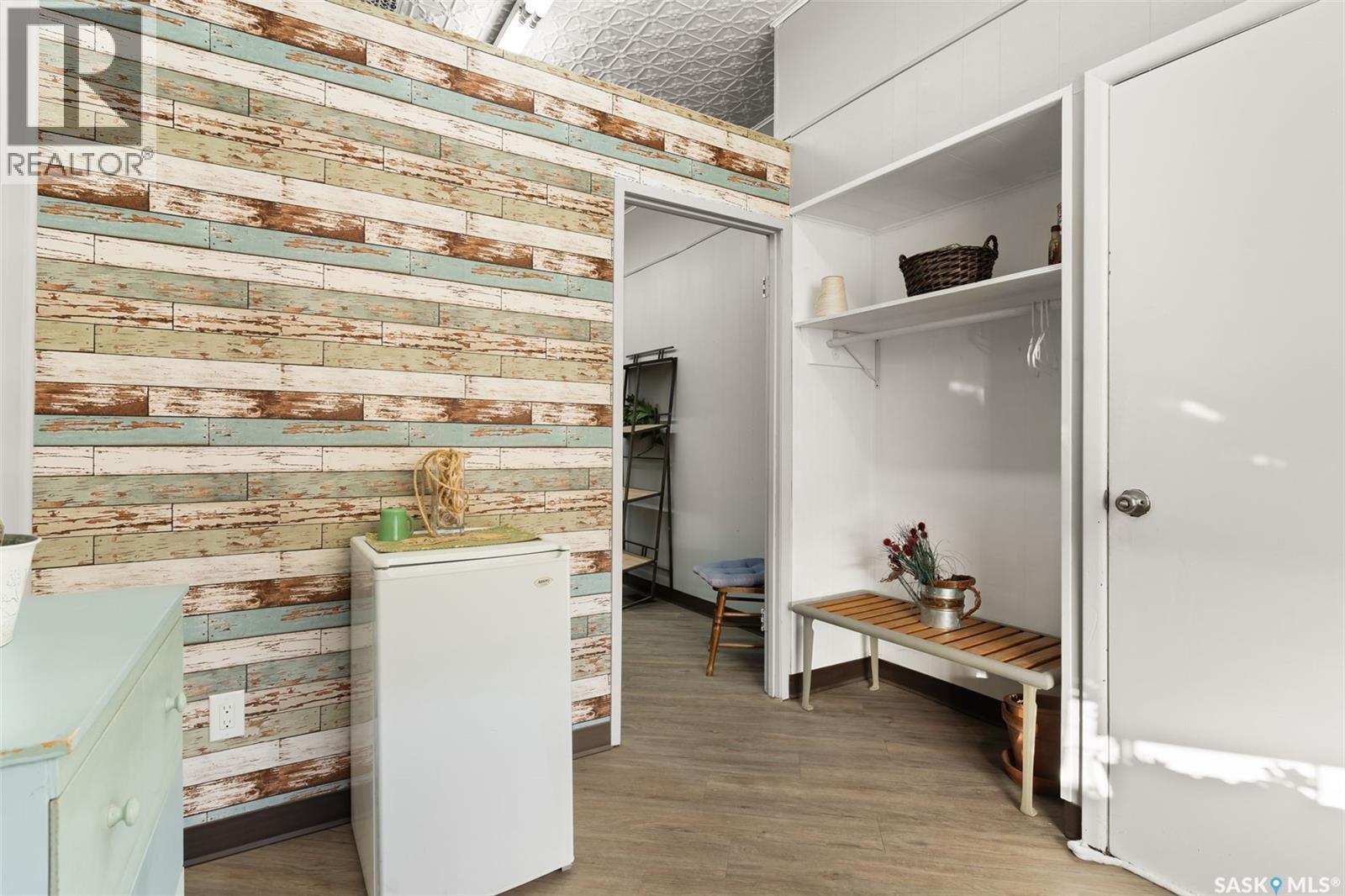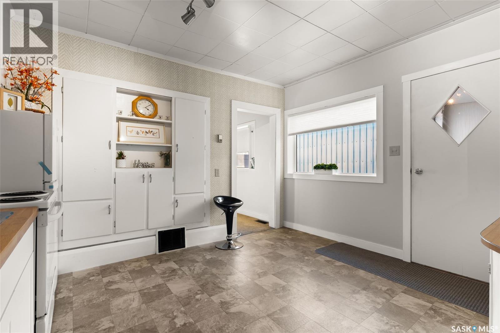 Located in Southey, SK on Railway Avenue with excellent site lines and visibility to Highway 6 is this 2,760 sqft mixed use commercial building. The building is comprised of 2 retail spaces and a 2 bedroom residential apartment. The end retail space is currently a tenant occupied vape shop. The tenant wishes to stay and is on a month to month lease. The vape shop was a former bakery and still has the commercial stainless steel sink and a gas line at the back that was used for the ovens. There is a dock door at the rear of the vape shop space. The centre retail space is a former hair salon that is in turn key condition with salon fixtures and plumbing in place. The salon has newer flooring, paint and a gorgeous tin ceiling. There is a laundry area at the rear of the hair salon plus a shared 2 piece bathroom for both retail areas to use. The salon space could be converted to other commercial uses. The residential quarters is spacious and filled with lots of light. It has been tastefully updated with newer flooring, paint, and updated 4-pce bathroom. The kitchen is fresh and bright with loads of cabinetry and kitchen appliances are included. The residence has one bedroom on the main floor and a second bedroom plus sitting room/den and a bonus room located on the second floor. There is a large storage area at the back of the building that can be shared. The building sits on 2 lots and there is ample parking in the rear for tenants accessed via the back alley. There is also an older garage at the rear that is currently being used for storage. (id:44393)