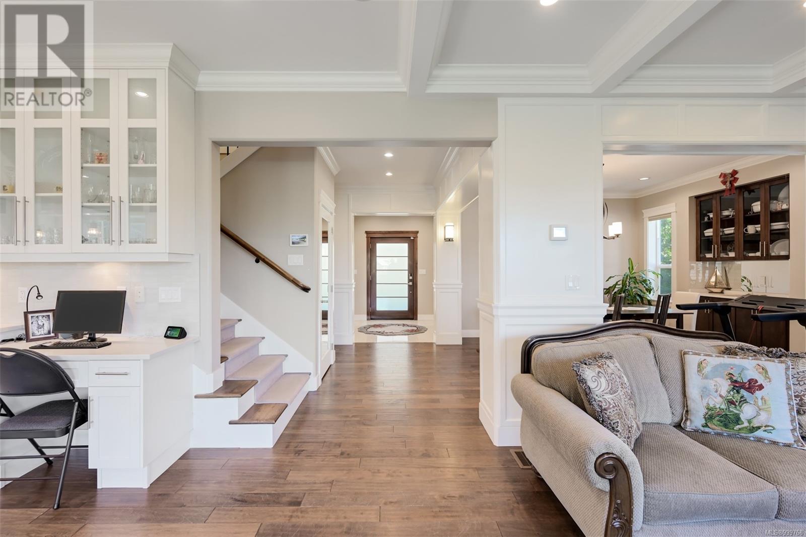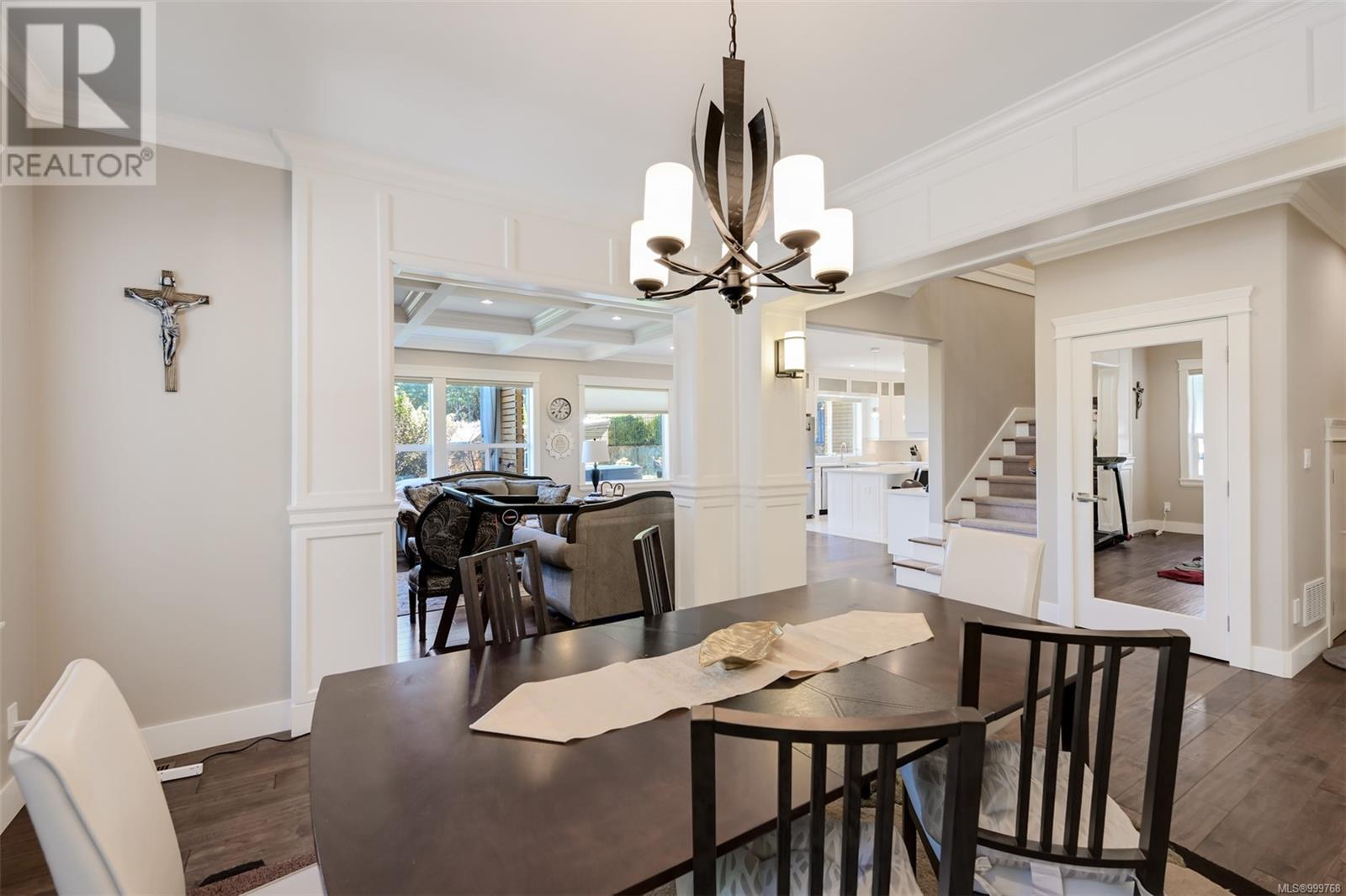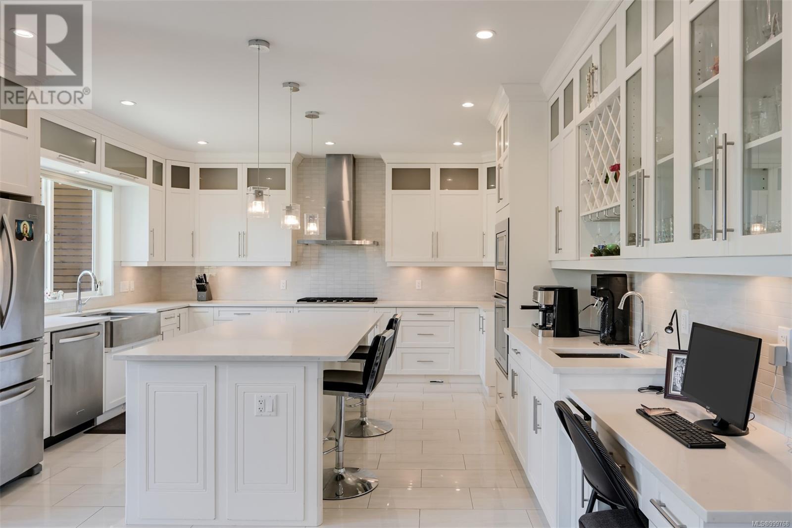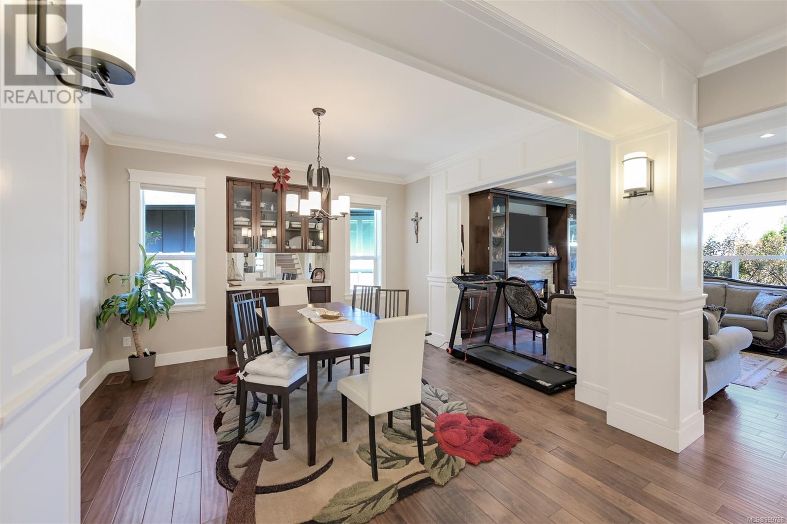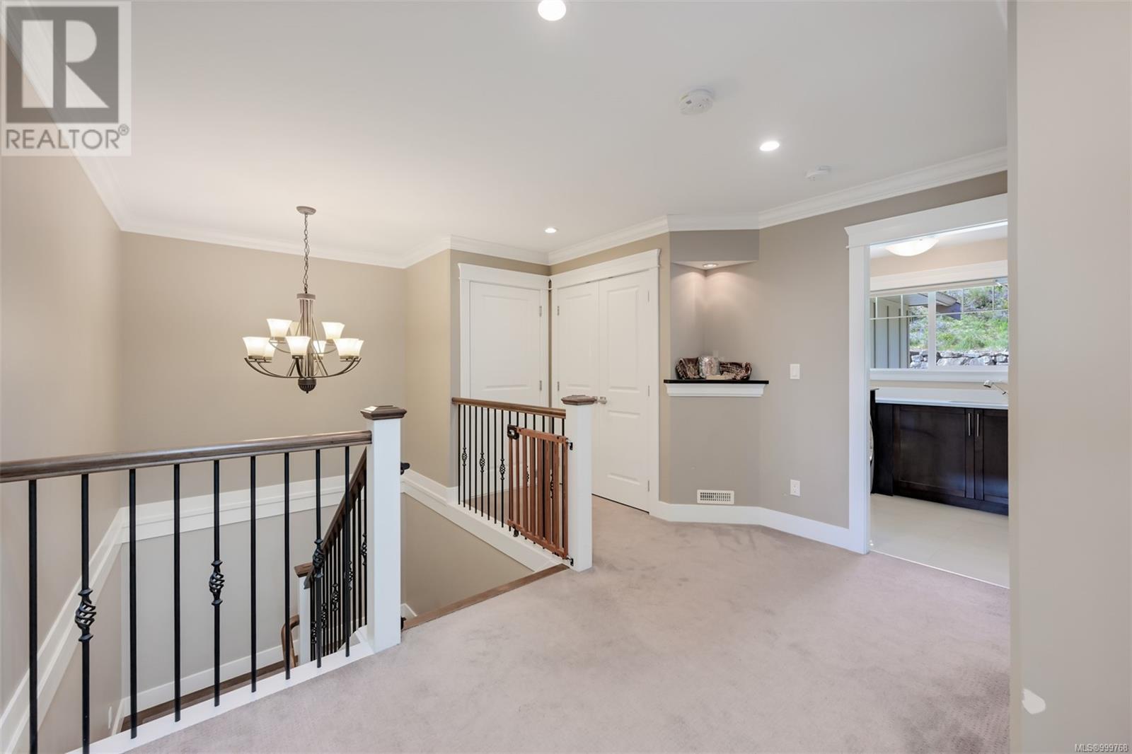 Executive luxurious home perched at the top of World Class Bear Mountain Golf Resort, 4 bdrm & den including a legal 1 bdrm suite above the garage. Gleaming hard wood floors built in cabinetry fireplace coffered ceilings wainscoting & panelled walls. The kitchen is the hub of the home w/large island, quartz countertops farmhouse sink built in wine rack 5 burner gas stove dual sinks & a massive hidden walk in pantry w/ automated lights disguised as cabinetry. The primary bedroom offers beautiful views 2 oversized walk in closets built in vanity dual sinks large jetted soaker tub walk in rain hood shower heated floors & quartz countertops. Suite is soundproofed w/its own side access & laundry set. Vaulted ceilings skylights heat pump crawl space security system hot water on demand extra storage & surround sound. The back yard has been tastefully landscaped, fully fenced w/ a dog run hot tub shed & covered bbq shelter wired & heated roof. Exceptional location and exceptional layout! (id:44393)