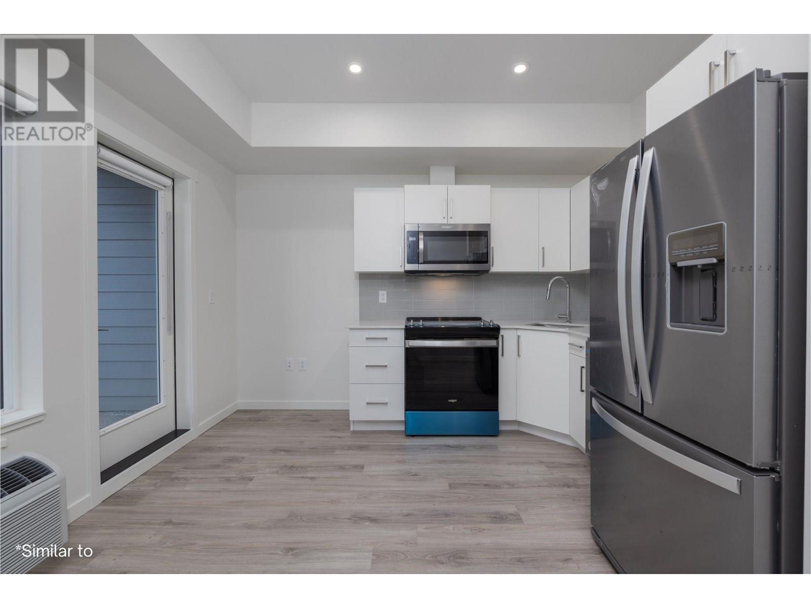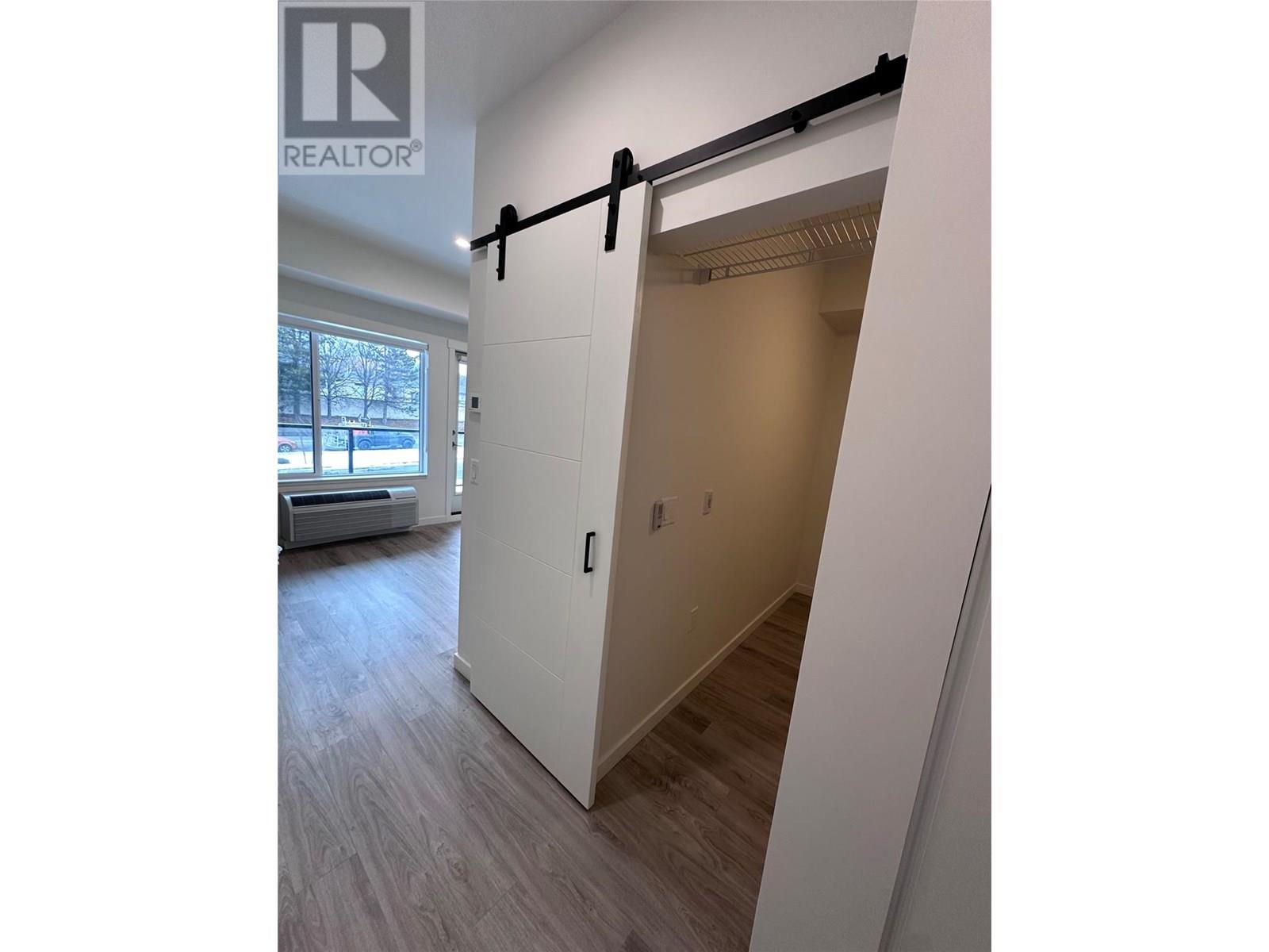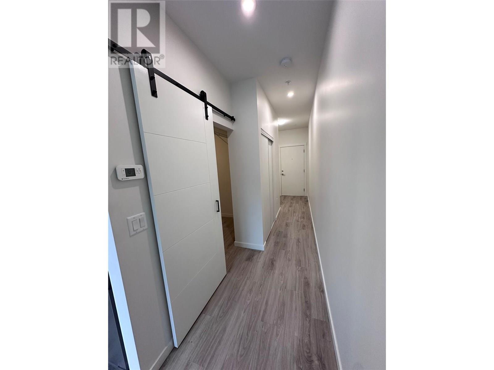 $178.90 MonthlyWelcome to ABODE, a perfect blend of style, function, and location in the heart of West Kelowna. This beautifully studio unit offers bright, open-concept living with 9’ ceilings, durable vinyl plank flooring, and a fresh coat of paint throughout for a truly move-in-ready experience. The layout has been smartly upgraded with a custom barn door, providing a defined sleeping area and added privacy. Functional touches like extra bedroom shelving and a ceiling fan make everyday living more comfortable. The modern kitchen features quartz countertops, flat-panel cabinetry, and stainless-steel appliances, ideal for cooking and entertaining. Step outside to your private deck, perfect for morning coffee or evening wind-downs. The included outdoor parking stall is extra wide, conveniently located at the parkade entrance, and sits alone for maximum ease. At ABODE, lifestyle is everything. Residents enjoy a host of amenities, including a stylish lounge with TV, games room, ping pong table, and computer nook, plus a fully equipped kitchen and entertaining space. Stay active in the state-of-the-art fitness centre, or take advantage of the dog wash, bike repair station, EV charging stations, and on-site guest suite. Located just steps to groceries, cafes, restaurants, and shopping, with beaches, golf courses, hiking trails, and renowned wineries all minutes away, this home delivers the best of Okanagan living. Still covered under New Home Warranty, this is your chance to secure a fantastic opportunity in one of West Kelowna’s most sought-after communities. Book your showing today! (id:44393)