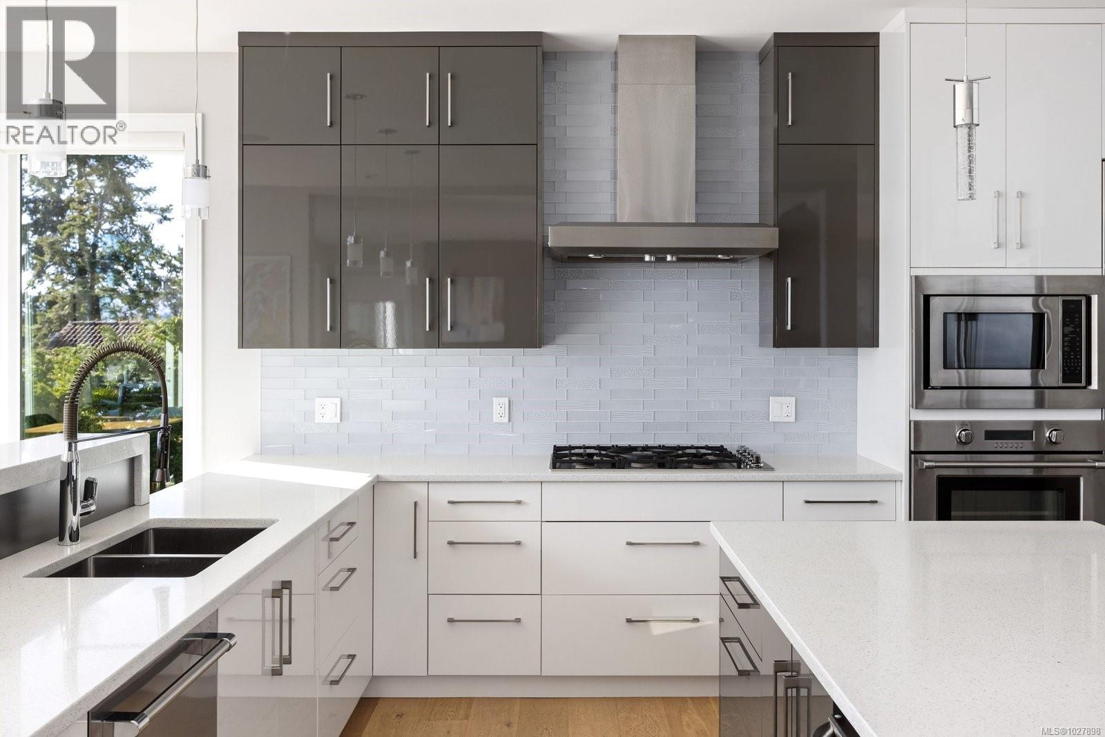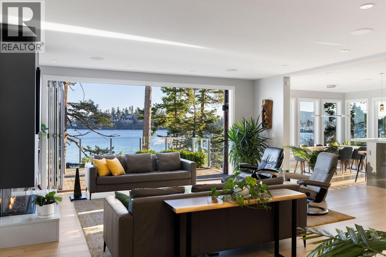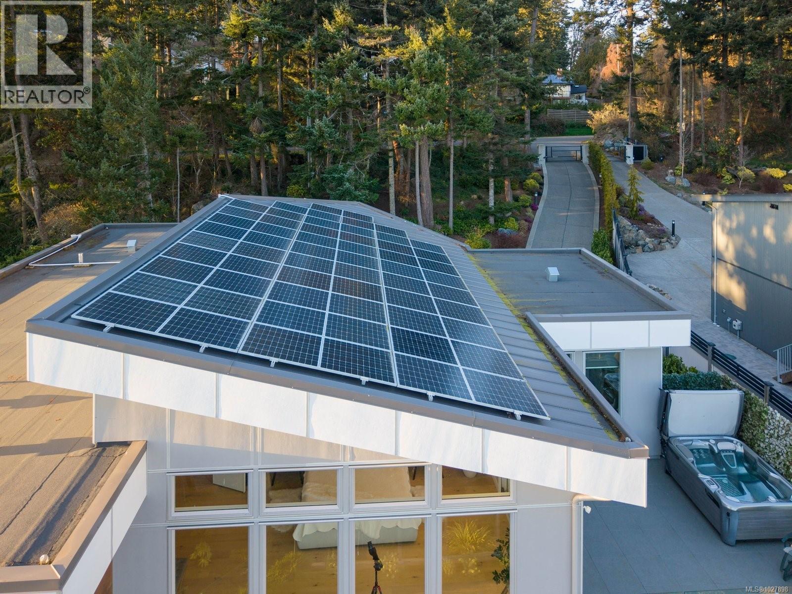 South-facing oceanfront living with exceptional, unobstructed 180° views and outstanding sun exposure from sunrise to sunset. Privately set behind a gated entrance on a beautifully landscaped, low-maintenance half-acre lot, this home offers over 1,050 sq ft of ocean-facing decks for seamless indoor-outdoor living. Enjoy easy beach access directly in front—perfect for launching a kayak or paddleboard—then unwind in the premium saltwater hot tub. Oversized windows fill the open-concept interior with natural light and showcase captivating views from nearly every room. The flexible layout offers 3 bedrooms plus an office or 4 bedrooms. A designer kitchen with high-end appliances anchors the space, complemented by hardwood floors, outdoor kitchen, infrared heaters and integrated sound system. Solar panels provide impressive energy savings. Double garage with Level 2 charger, ample storage and a quiet setting minutes to Sidney. (id:44393)