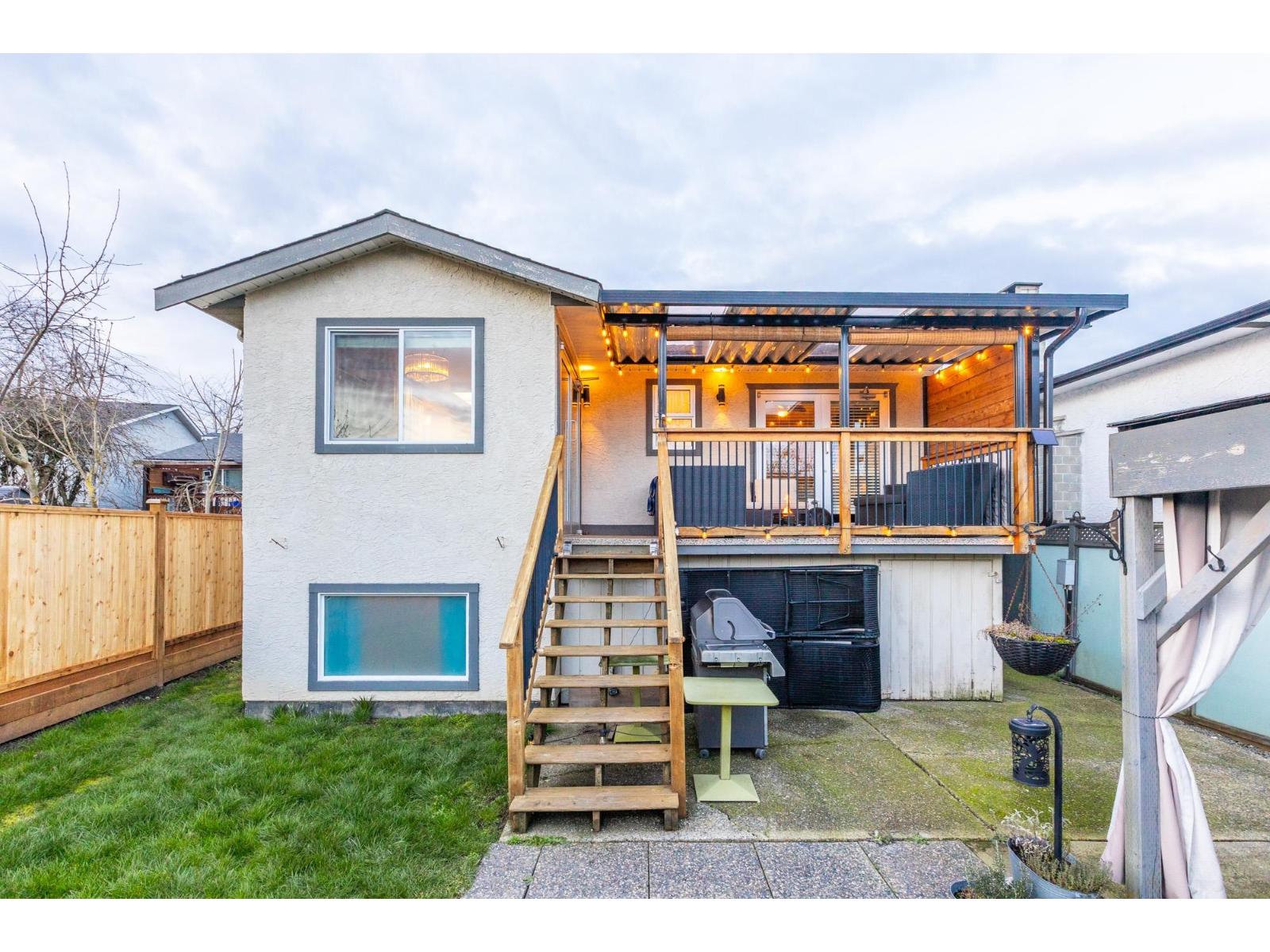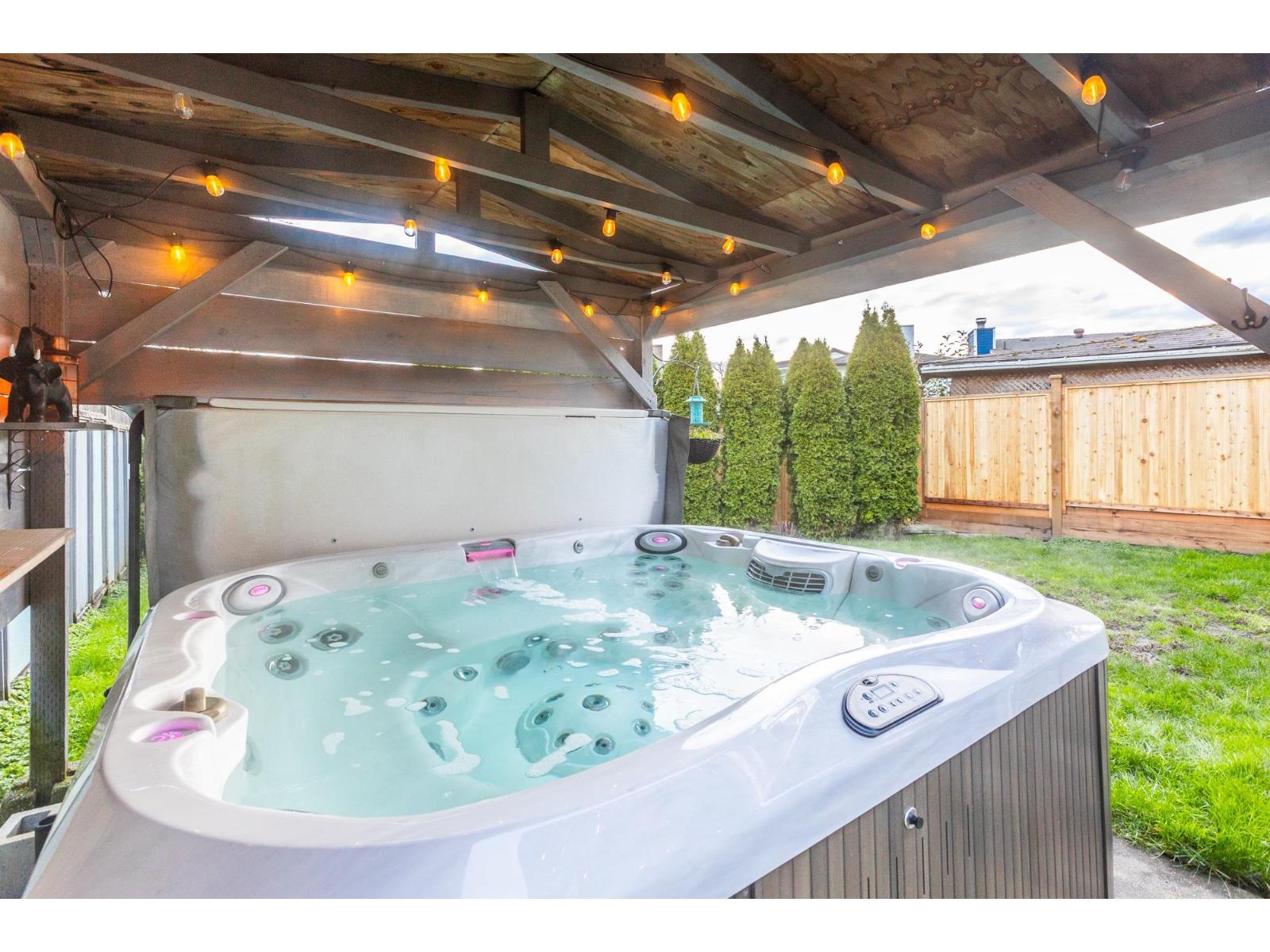 This one checks all the boxes! Bright 5-bed, 2-bath home offering 2,013 sqft, nestled in a quiet, family friendly Willoughby CUL-DE-SAC. Kitchen updated with white cabinetry, full pantry, SS appliances + coffee bar area. Stylish barn doors tuck away the dedicated laundry room. Custom glass French doors lead out to covered deck w/ gas BBQ hook-up. The south facing, fully fenced yard is a sanctuary complete with a cedar garden bed and private hot tub. Plenty of storage under deck. Bonus - A/C and new roof in 2020! Close to FUTURE SKYTRAIN, parks, school, mall, restaurants, groceries + more! Open House Sun 2-4pm. (id:44393)