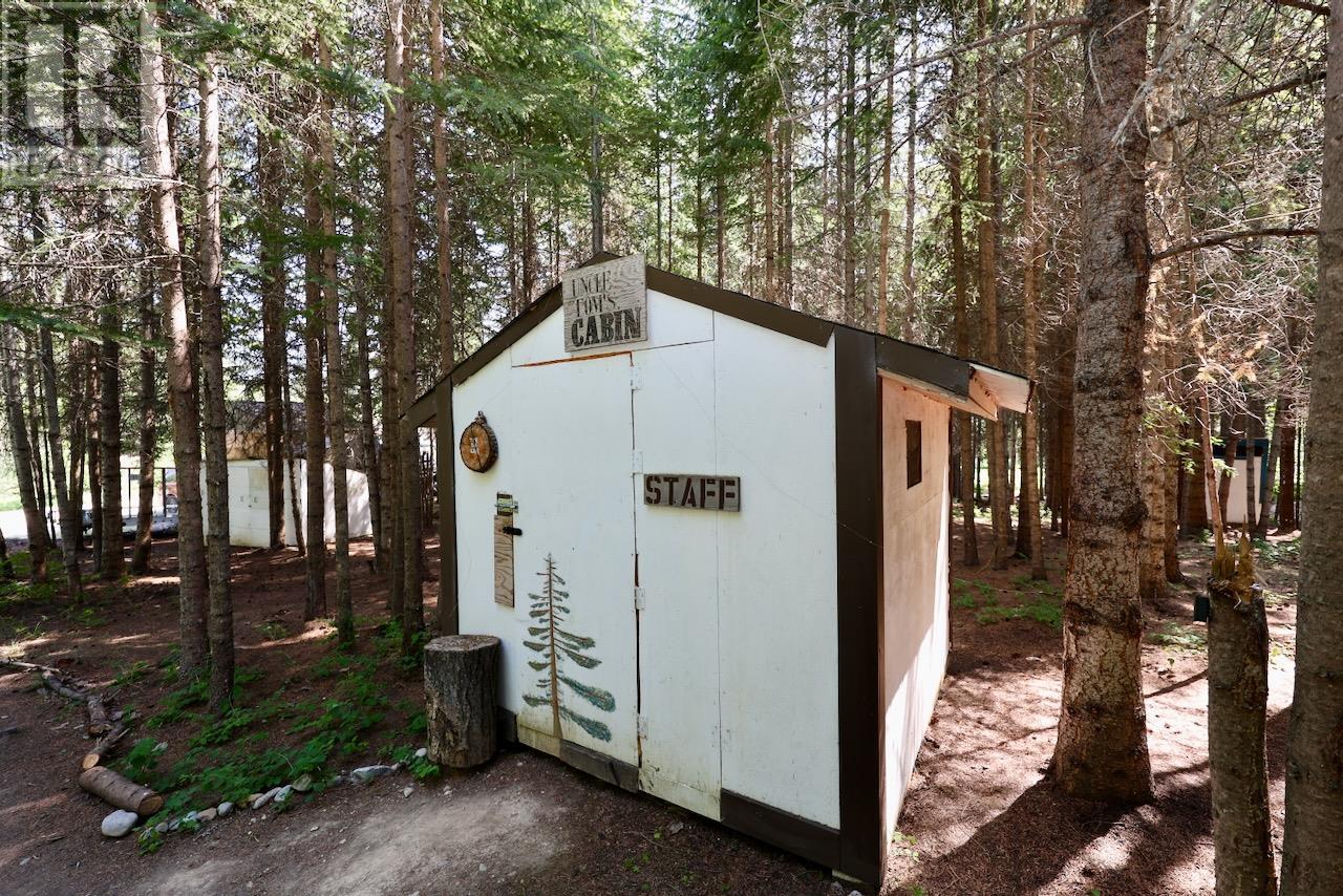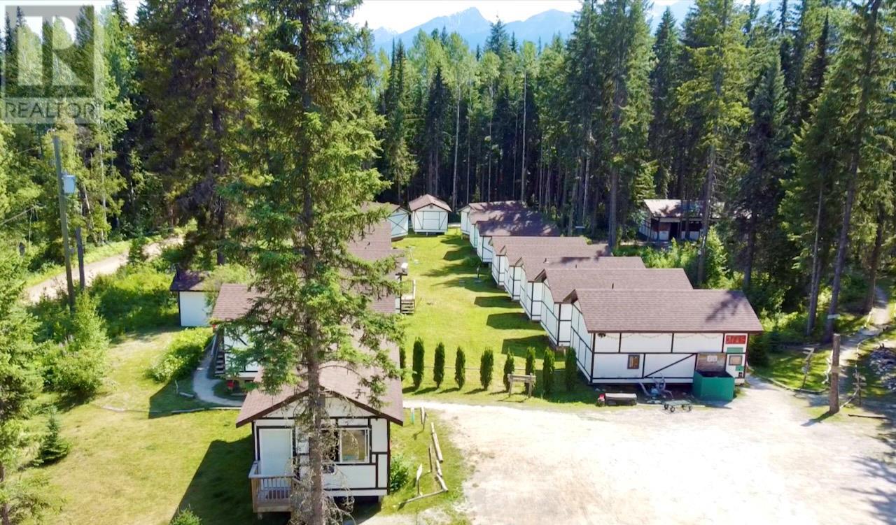 Mountain View Cabins is a 5.5-acre wilderness resort featuring 18 identical, 300 sq. ft. cabins, each equipped with a full-sized (3-piece) bathroom, separate hot water system and a mini kitchen. In addition to these, there are 5 bunkie-style cabins and two tents. While some spaces are allocated for staff, the majority are available for guests seeking adventure in the local mountains, rivers, wetlands, or any of the five nearby national parks. Conveniently located just 1.5 km off the Trans-Canada Highway, the resort is also close to the town of Golden, making trips for dining, shopping, and entertainment easy. The resort includes all the essentials to keep the business thriving: furniture, electronics, BBQs, appliances, cookware, dishes, utensils, linens, artwork, DVDs, games, tools, vacuums, laundry facilities, dishwashing, cleaning supplies, and more. A large covered pavilion is available for cooking, dining, and socializing, along with a fire pit and a sitting area that offers stunning views of the valley. The business model is highly flexible, allowing for year-round or seasonal operation. Owners can handle bookings themselves or lease to a tour company. There's also potential for expansion or converting some or all of the cabins into long-term rentals. The cabins are clean, comfortable, quiet, fully winterized, and have been rented year-round in the past. The possibilities are endless. Grab this opportunity before it's gone. (id:44393)