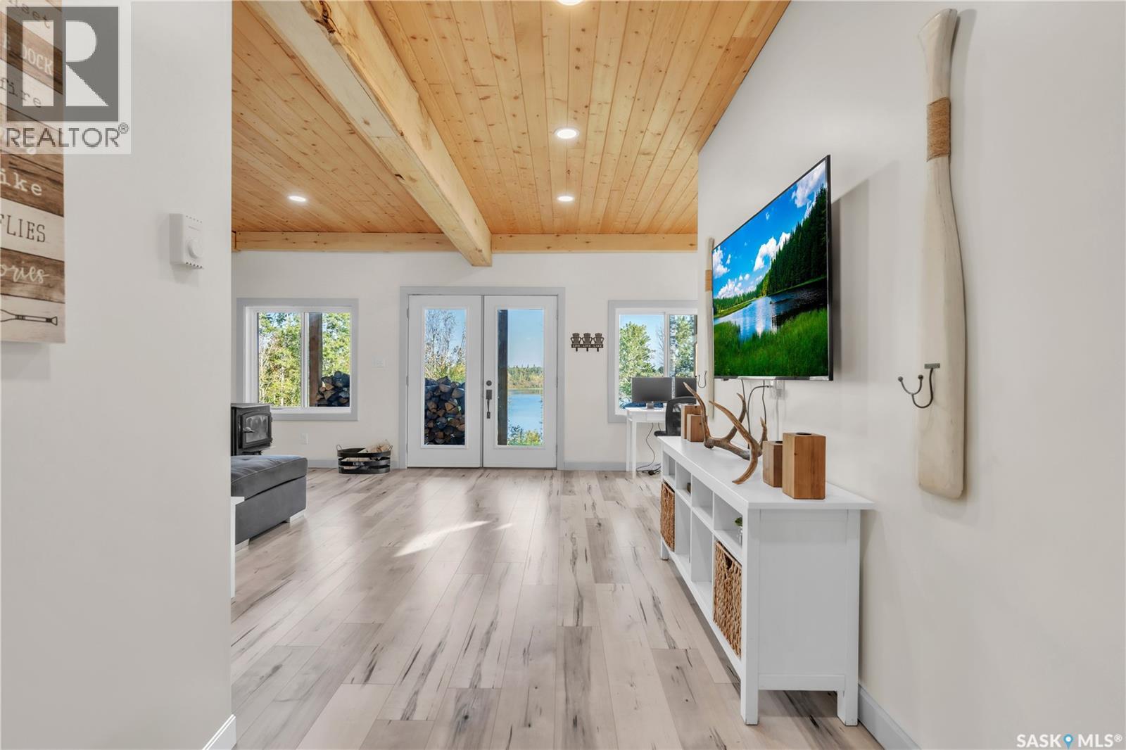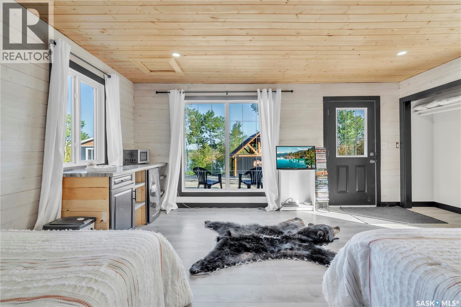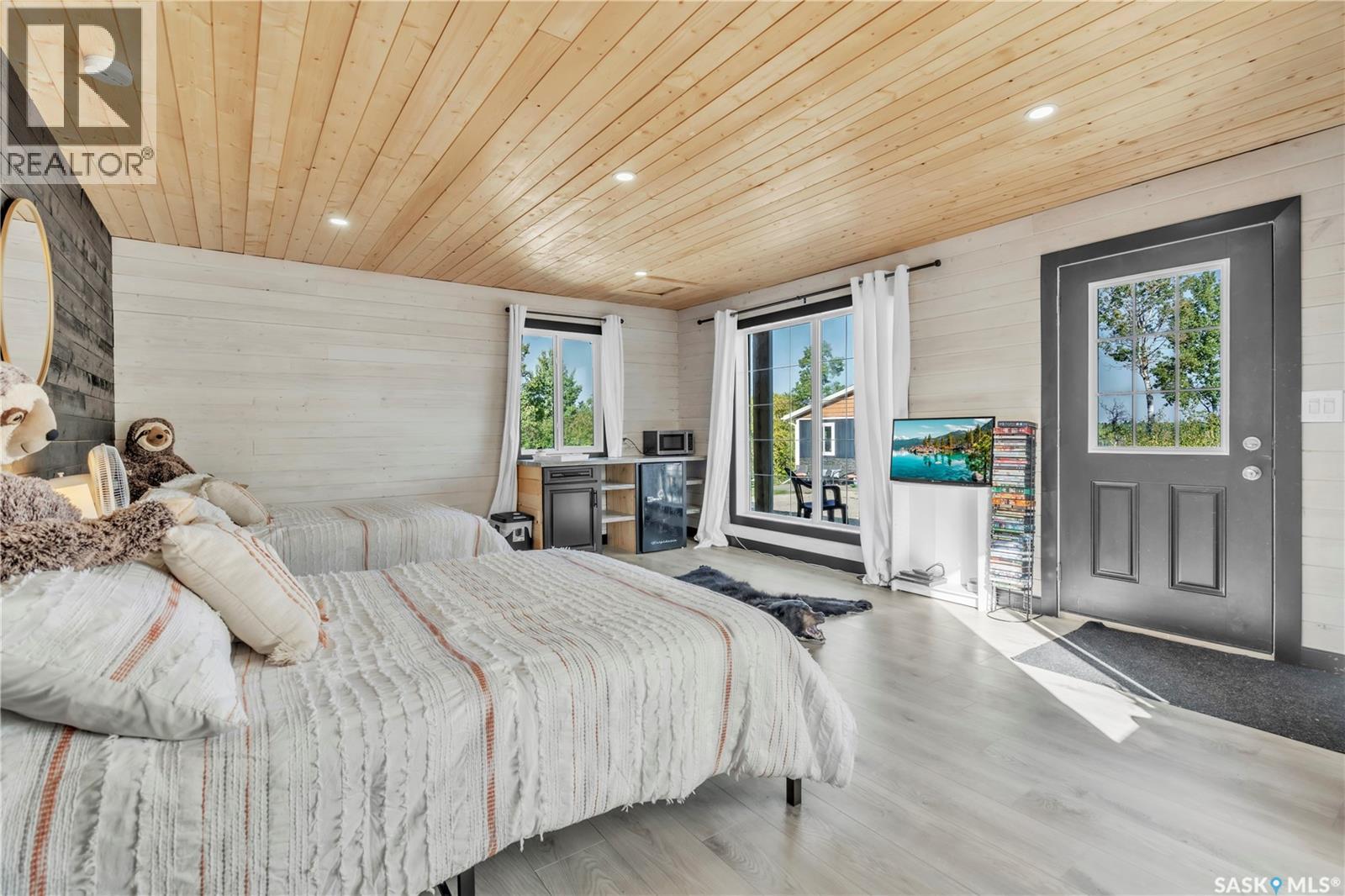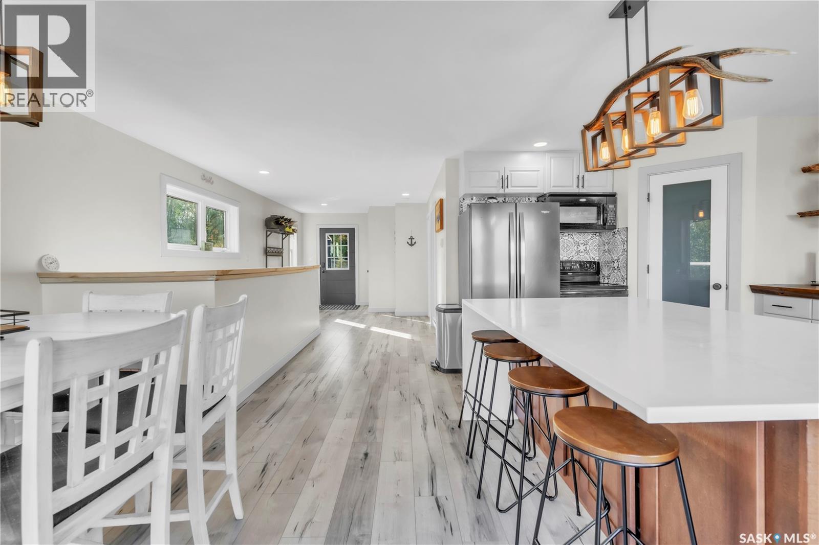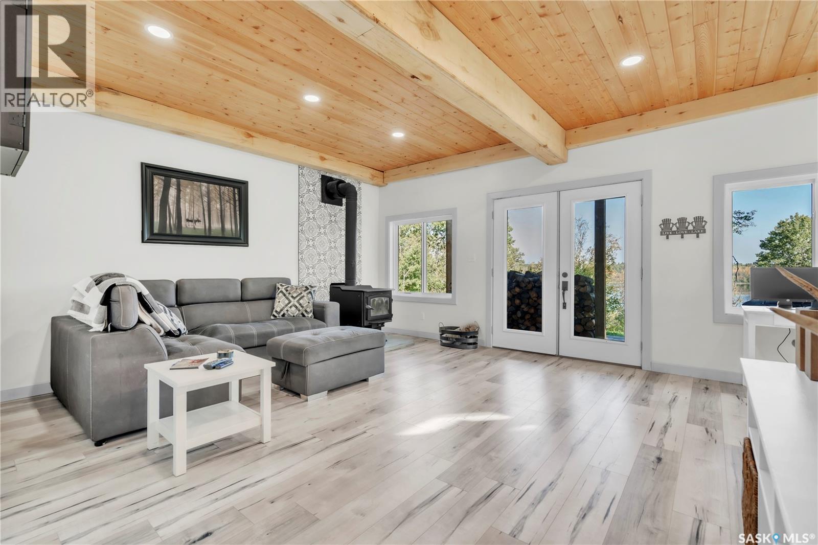 Tucked into a quiet subdivision on Murphy Lake, this stunning year-round home offers the perfect blend of comfort, privacy, and lake life. With three bedrooms, two bathrooms, and a separate bunkhouse for guests, this property was designed for making memories. The main floor features the primary bedroom with access to a four-piece bathroom and laundry. The bright open kitchen is the heart of the home, showcasing live-edge wood shelving, a large quartz island, and expansive windows with lake views and fill the space with natural light. The walkout basement adds two additional bedrooms, a three-piece bathroom, a thoughtfully designed bar area, and a spacious family room centered around a cozy wood stove, perfect for chilly mornings or a winter escape. Outside, the beautifully landscaped yard invites you to relax and entertain. A custom stamped concrete walkway leads to a fire pit area and outdoor kitchen ready for your BBQ and big screen TV. The 15’ x 19’ bunkhouse creates a private retreat for overnight guests or teenagers, while mature trees on both sides of the property provide exceptional privacy. A private path leads directly from the home to Murphy Lake, where you can easily launch your boat off your very own dock or spend the day fishing, cruising, or paddle boarding. Serviced by a cistern and septic system, this property is located approximately 1.5 hours north of Lloydminster and just over an hour southeast of Cold Lake. The town of Loon Lake is only 15 minutes away and offers groceries, restaurants, a medical clinic, and a golf course, with many additional lakes and parks nearby to explore. (id:44393)