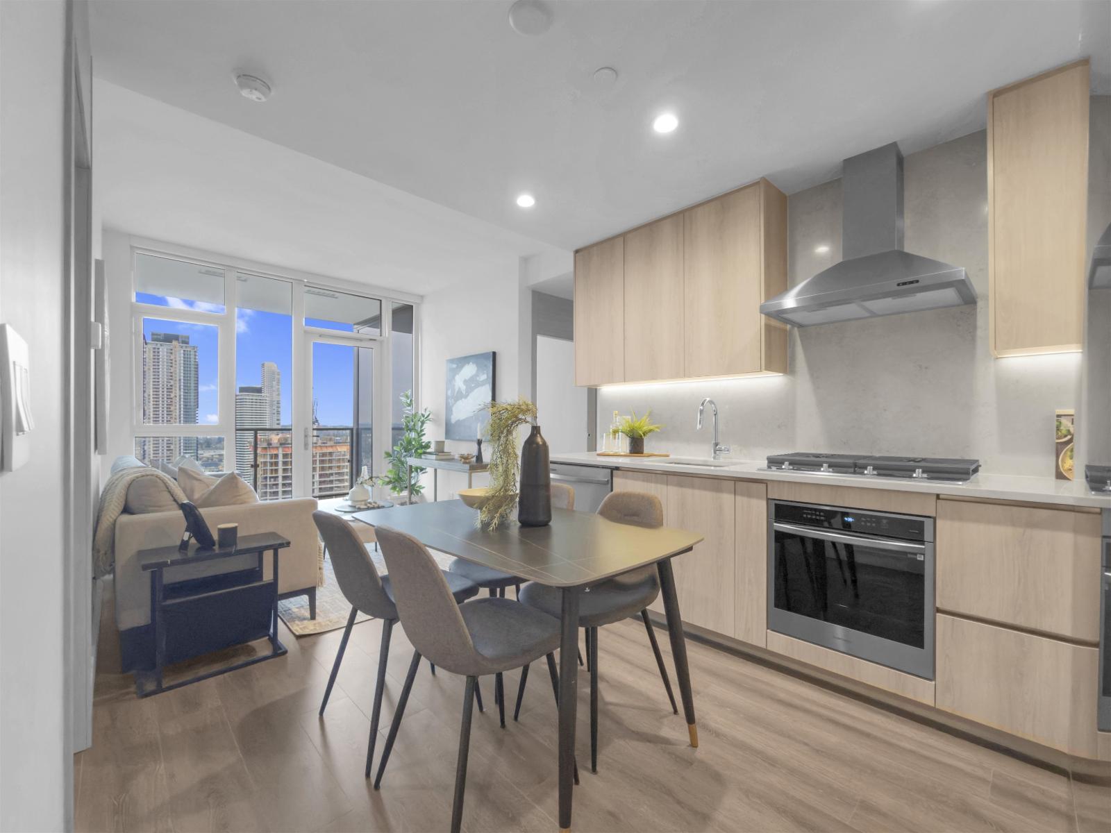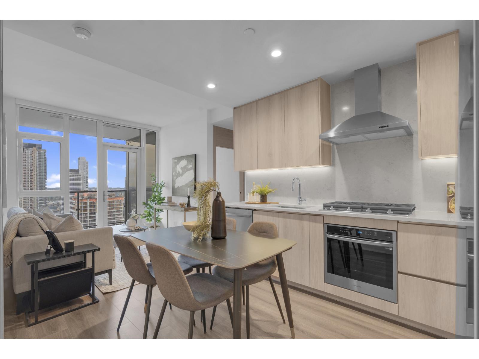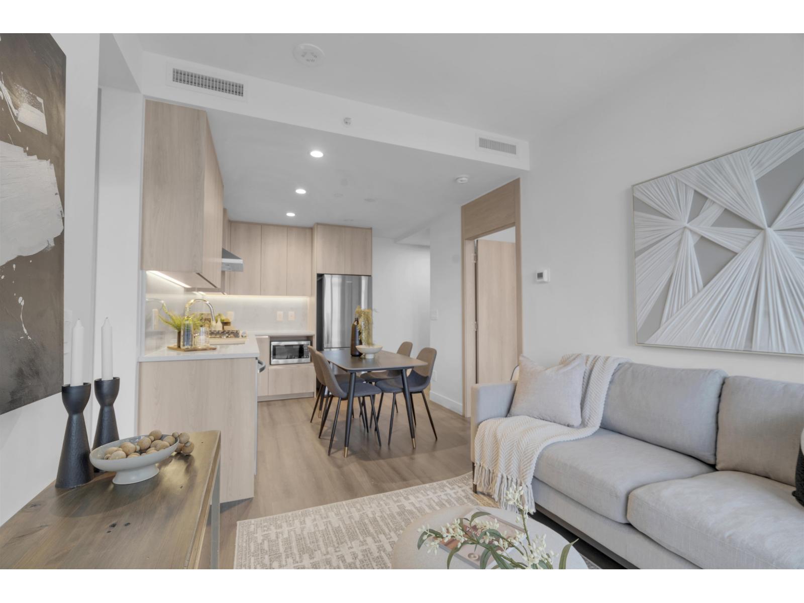 $396.02 Monthly**BRAND NEW** GST REBATE AVAILABLE TO QUALIFIED PURCHASERS. Welcome to The Grand on King George in Surrey City Centre. This bright and modern 2 bed, 1 bath home offers a smart, functional layout with unobstructed Mount Baker & City Centre views. Enjoy a spacious balcony, quality finishings, and contemporary comfort throughout. Features include central heating and cooling, gas cooktop, Samsung Wi-Fi appliances, and security rough-in. Heat, cooling, and gas are included in strata fees. Residents enjoy over 23,000 sq. ft. of premium indoor and outdoor amenities, including 24/7 concierge, fitness centre, outdoor BBQ area, dog walk, and private VR room. Just a 4-minute walk to Gateway SkyTrain and close to parks, schools, shopping, and Surrey City Centre conveniences. (id:44393)