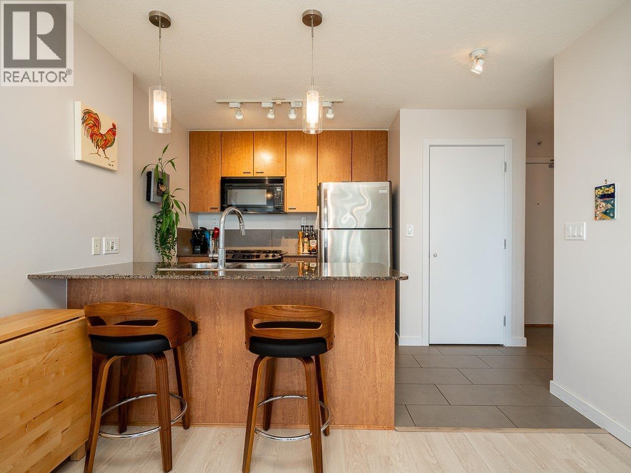 $255.92 MonthlyWelcome to The Emerson by Bosa, located in the heart of Highgate Village. This bright west-facing 1 bedroom suite offers spectacular panoramic views of the city skyline, mountains, and water, best enjoyed from the covered balcony. Inside, you´ll find laminate flooring throughout, a well-designed kitchen with stainless steel appliances, a natural gas stove, granite countertops, and in-suite laundry. The bedroom features a large sliding glass door that opens directly onto the balcony, bringing in natural light and extending your living space. Perks: a higher-floor outlook, a well-kept building, and an unbeatable location - steps to shopping, restaurants, the library, and public transit. Whether you´re looking for a comfortable place to call home or a solid investment, this is excellent value in one of Burnaby´s most desirable communities. A must-see. (id:44393)