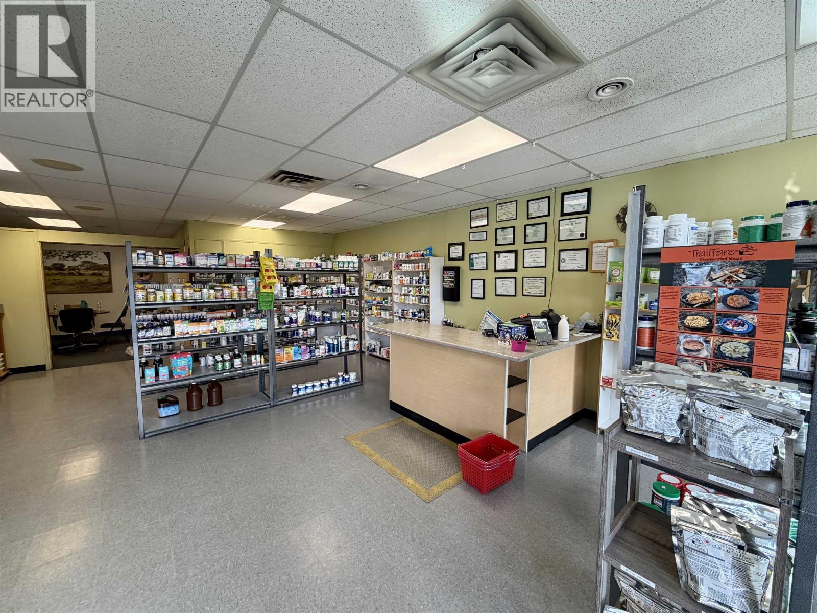 Prime main street commercial opportunity in downtown Vanderhoof! This well-located building offers excellent exposure with sidewalk frontage and rear lane access to parking and storage. Updates include a high-efficiency gas furnace, hot water tank, updated windows, and 200 amp electrical service. Interior features a functional layout with office space, small kitchen area, lunch room, and two 2-piece bathrooms. The part/unfinished basement provides ample additional storage area. Currently operating as a vitamin/health store (an established business for 20 years in this building) and previously a physiotherapy clinic. Other past uses include a convenience/corner/variety store, a coffee shop, water store, book store, and a beauty salon. The C1 zoning allows for a wide range of retail, office, and service uses. Great investment or owner-occupier opportunity! (id:44393)