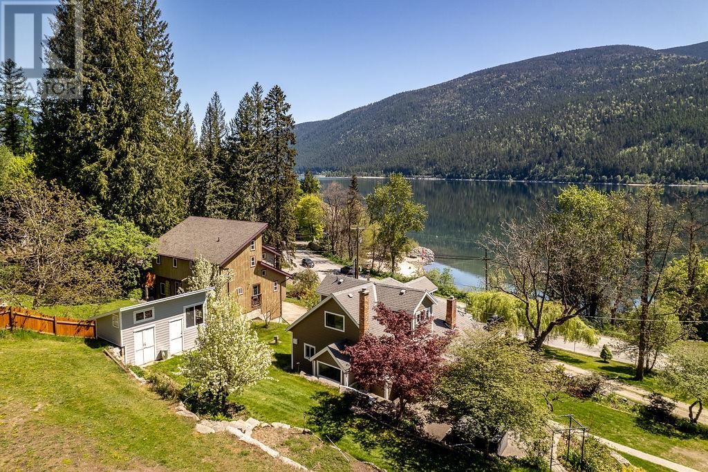 Welcome to your own slice of paradise! This stunning, updated 2-bedroom, 2-bathroom heritage home is meticulously maintained and brimming with charm. Nestled on a sprawling 1.06-acre estate, this property offers breathtaking lake and mountain views that will leave you speechless. Imagine relaxing on your expansive sundeck, gazing out at the pristine waters and majestic peaks. Beyond the main home, discover a private lower level featuring two separate 1-bedroom suites, perfect for guests or generating rental income. The meticulously landscaped grounds are a gardener's dream, boasting a vibrant array of fruit and nut trees and thriving vegetable gardens. Practicality meets beauty with a convenient storage shed and workshop, and ample parking for you and your guests. Enjoy semi-private access to a sandy beach just across the road, making lakeside living a daily reality. Located minutes from Nelson at 5-Mile, you'll enjoy the tranquility of rural living with easy access to city amenities. Whether you're seeking a family sanctuary, a lucrative investment, or a serene vacation escape, this exceptional property is ready to fulfill your dreams. Don't miss this rare opportunity to own a piece of paradise! (id:44393)
