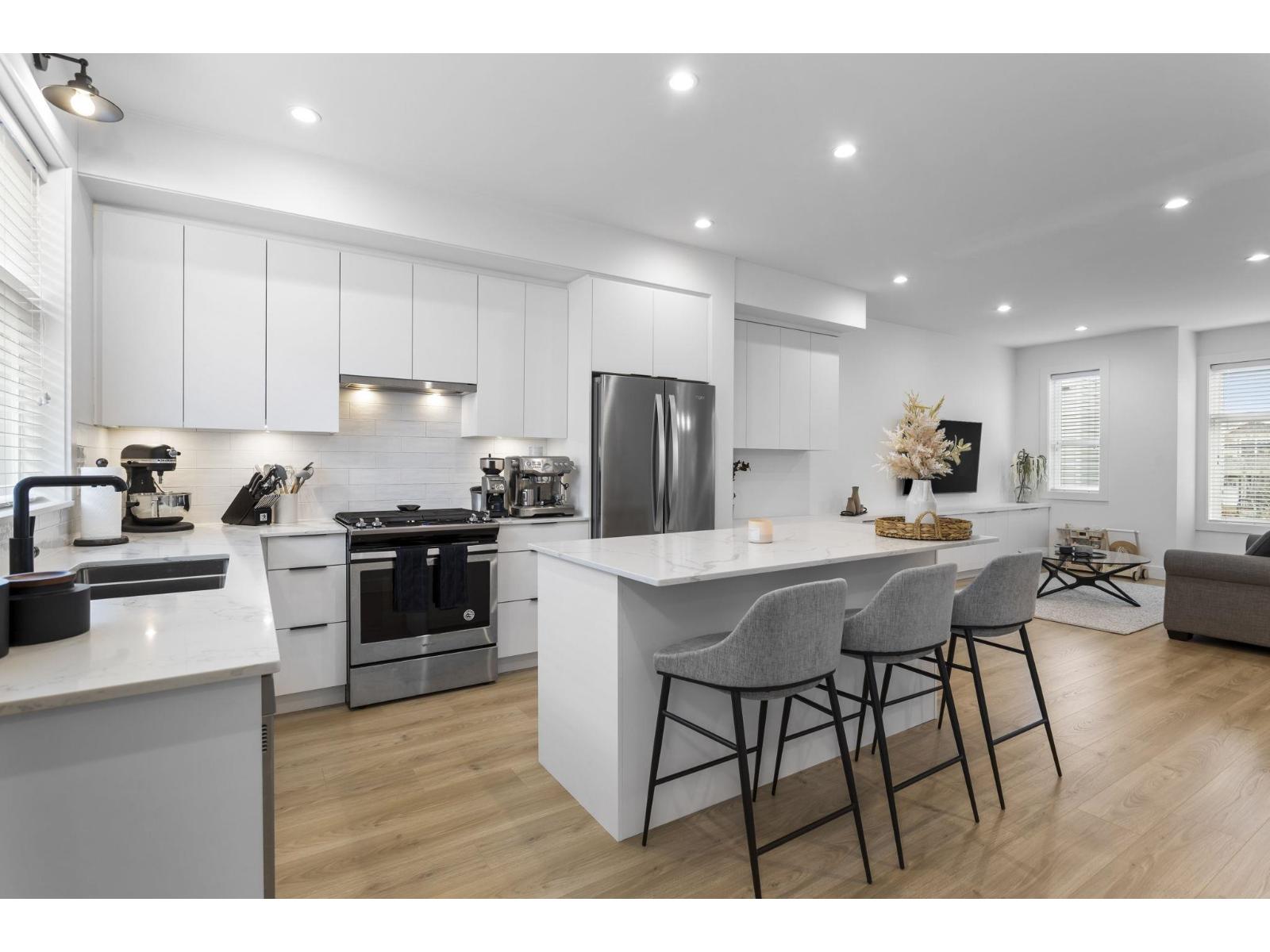 $352.23 MonthlyWelcome to Clayton Street - a modern, 2021-built townhome offering 1,861 sq. ft. of thoughtfully designed living space. The open-concept main level features a kitchen, dining, and living area, plus a custom bar with wine fridge and extensive built-ins. Step out from the kitchen to a deck perfect for BBQs and entertaining, with a large ground-level patio and fenced yard. Upstairs has 3 bedrooms, including a primary suite with stunning ensuite and walk-in closet. The large bonus room downstairs can serve as a fourth bedroom. Double side-by-side garage is roughed-in for EV charging. Part of an Energy Star-certified community with remainder of the 2-5-10 New Home Warranty, all near parks, shops, cafés, and schools. (id:44393)