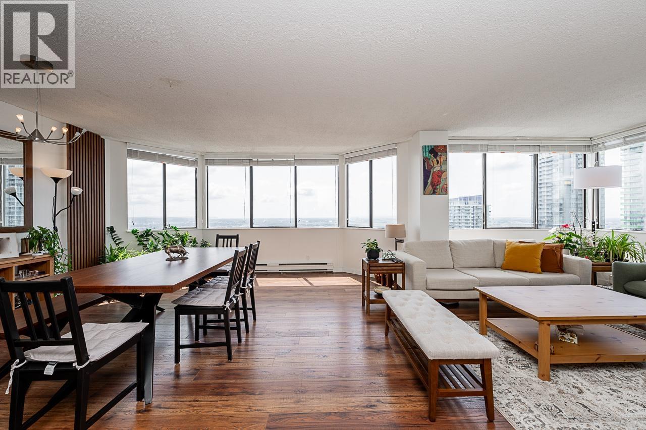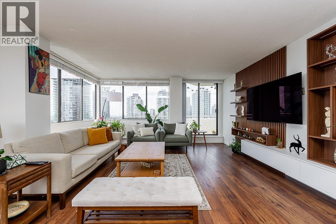 $456.29 MonthlyThis renovated sub-penthouse delivers stunning 270° views stretching from the North Shore Mountains and Downtown Vancouver to the Fraser Valley and Mount Baker. With 2 bedrooms and 1 spa-inspired bath, this bright corner unit features a sleek modern kitchen with quartz counters, stainless steel appliances, and an oversized island perfect for cooking and entertaining. Expansive window panels fill the open-concept living and dining area with natural light, complemented by warm-toned laminate flooring throughout. Relax in the deep soaker tub and enjoy the convenience of in-suite laundry and generous storage. Situated in a well-managed concrete high-rise with outstanding amenities: a full fitness centre, squash court, basketball court, and secure entry. Steps to Metrotown, Crystal Mall, SkyTrain, Bonsor Rec Centre, shopping, and dining. Includes 1 parking and 1 storage locker. Pet- and rental-friendly-ideal for both homeowners and investors. (id:44393)