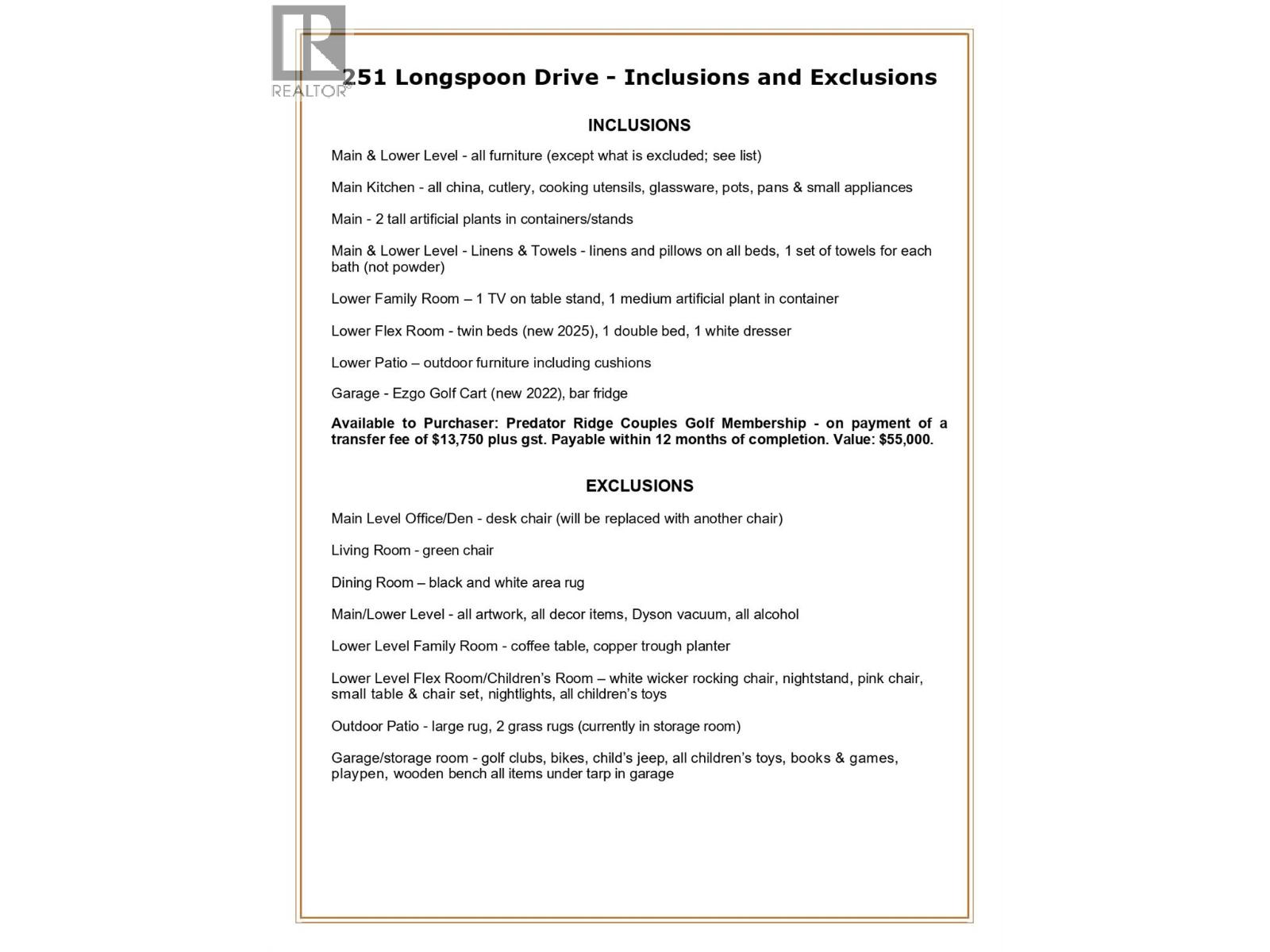 No Speculation Tax! Whether you’re seeking the perfect Okanagan getaway or full-time living, this beautifully appointed, fully furnished 2,426 sq ft carriage home offers exceptional value and effortless enjoyment. Featuring 3 bedrooms plus a den, it’s designed for comfort, style, and entertaining. Simply arrive and enjoy, everything is included, from a well-stocked kitchen with cookware and essentials to quality bedding, towels, and outdoor furnishings. The spacious patio is ideal for relaxing or hosting, complete with a large Weber BBQ. A 2022 Ezgo golf cart is included for easy access to your tee time or exploring the community. A Predator Ridge Couples Golf Membership with a value of $55,000 is also available (see supplements for details). Thoughtfully updated since 2021 (see supplements), the home shows true pride of ownership. Enjoy partial views of the 5th fairway at Predator Ridge. The open-concept main living area is filled with natural light from tall transom windows and doors, creating an airy feel. The kitchen features quartz countertops, a large island with bar seating, ample cabinetry, and a generous pantry. The main-floor primary suite allows for easy living, while all bathrooms offer heated floors. The lower level includes two guest bedrooms, a family room, and a versatile flex space. (id:44393)