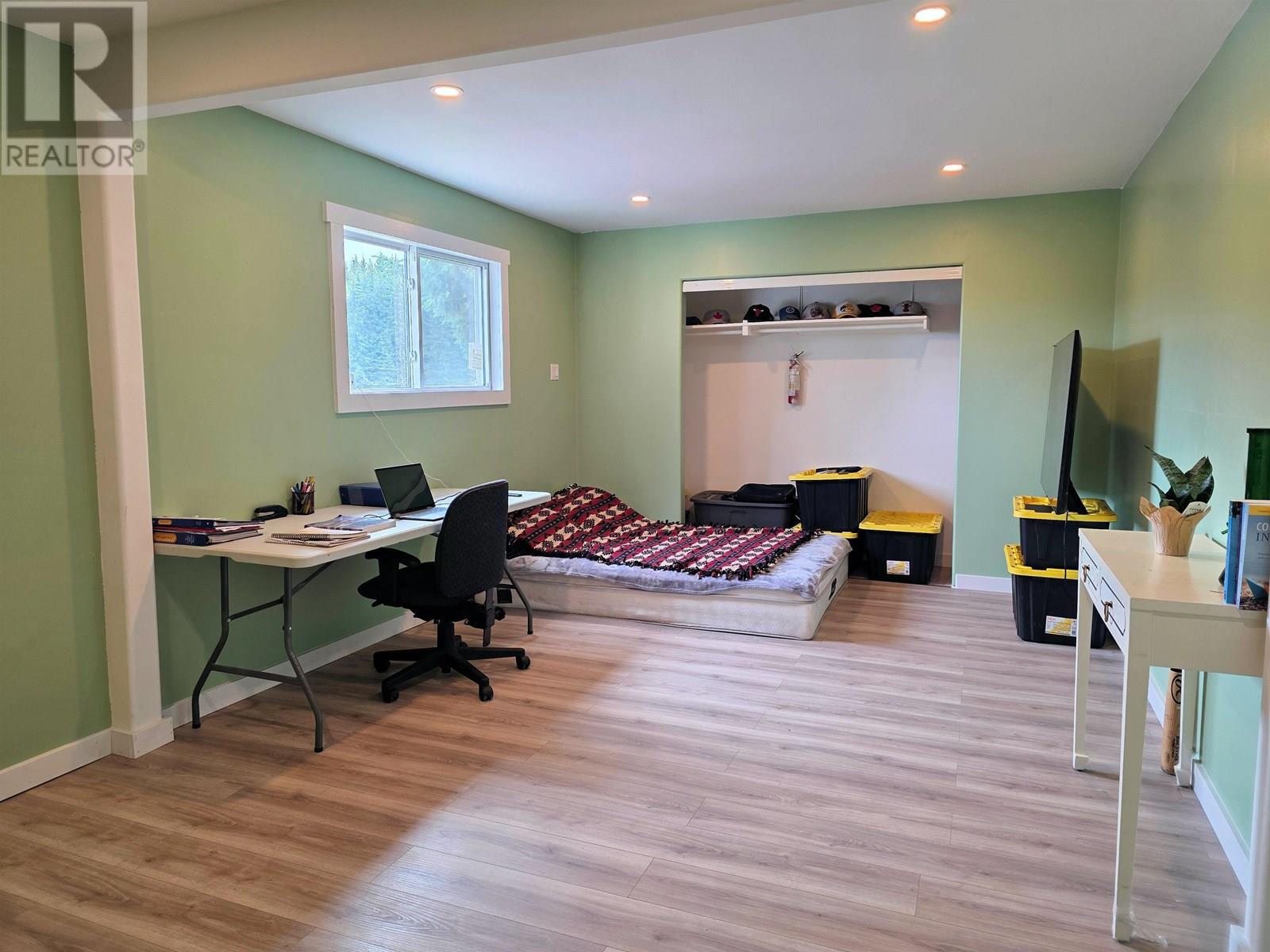 Great location on a very private a large lot! This property features over 15,000sq' of land that borders a large field giving you a ton of privacy and great sun exposure. Solid 3 bedroom (could be 4), 2 bath home with many recent renovations and updates. Updates include flooring, kitchen and bathroom renovations, siding, windows, new plumbing, new hot water tank, and newer appliances. Bright eating area with patio doors leading to a large deck. The basement features a bedroom, bathroom, laundry area, cold storage, and a large rec room with woodstove. Detached 24' x 30' shop with 10' ceiling height, hoist and woodstove. Lots of parking space. Fenced yard with fire pit area. Located within walking distance to town and only a few steps away from a great swimming spot in the Bulkley River. (id:44393)