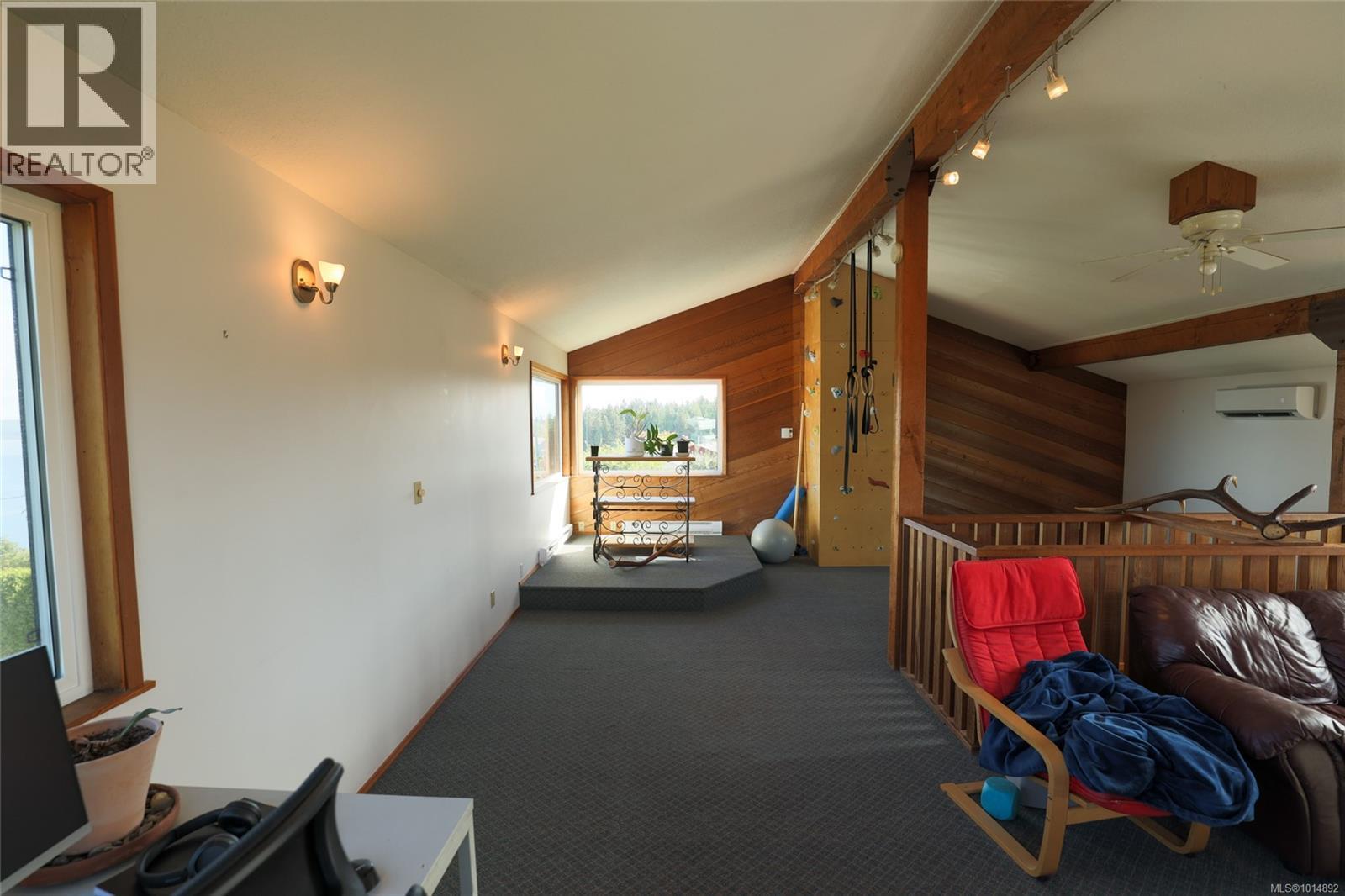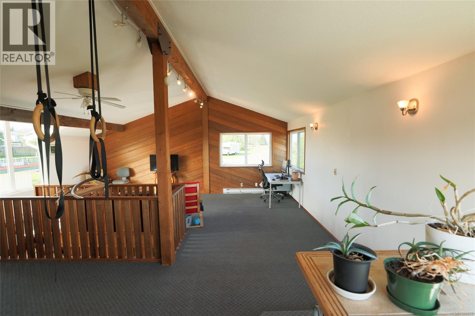This unique Port McNeill home offers character, comfort, and big updates. Built in 1975 with a modern layout, it features new vinyl windows, perimeter drains, a heat pump, Blaze King woodstove, and cork flooring in the basement. The main floor has a bright great room with expansive ocean and mountain views, a dining area with deck access, and a kitchen overlooking the backyard. A 2-piece bath and laundry/mudroom complete this level. Upstairs is a versatile loft family room/office, while the lower level has 3 bedrooms and a full bath. Outside, enjoy a level yard with dog run, greenhouse, woodshed, quad storage, and multiple producing fruit trees and berry plants. Plenty of parking with a 2-car garage, RV/boat space, and a workshop/studio above the garage. A true standout! (id:44393)