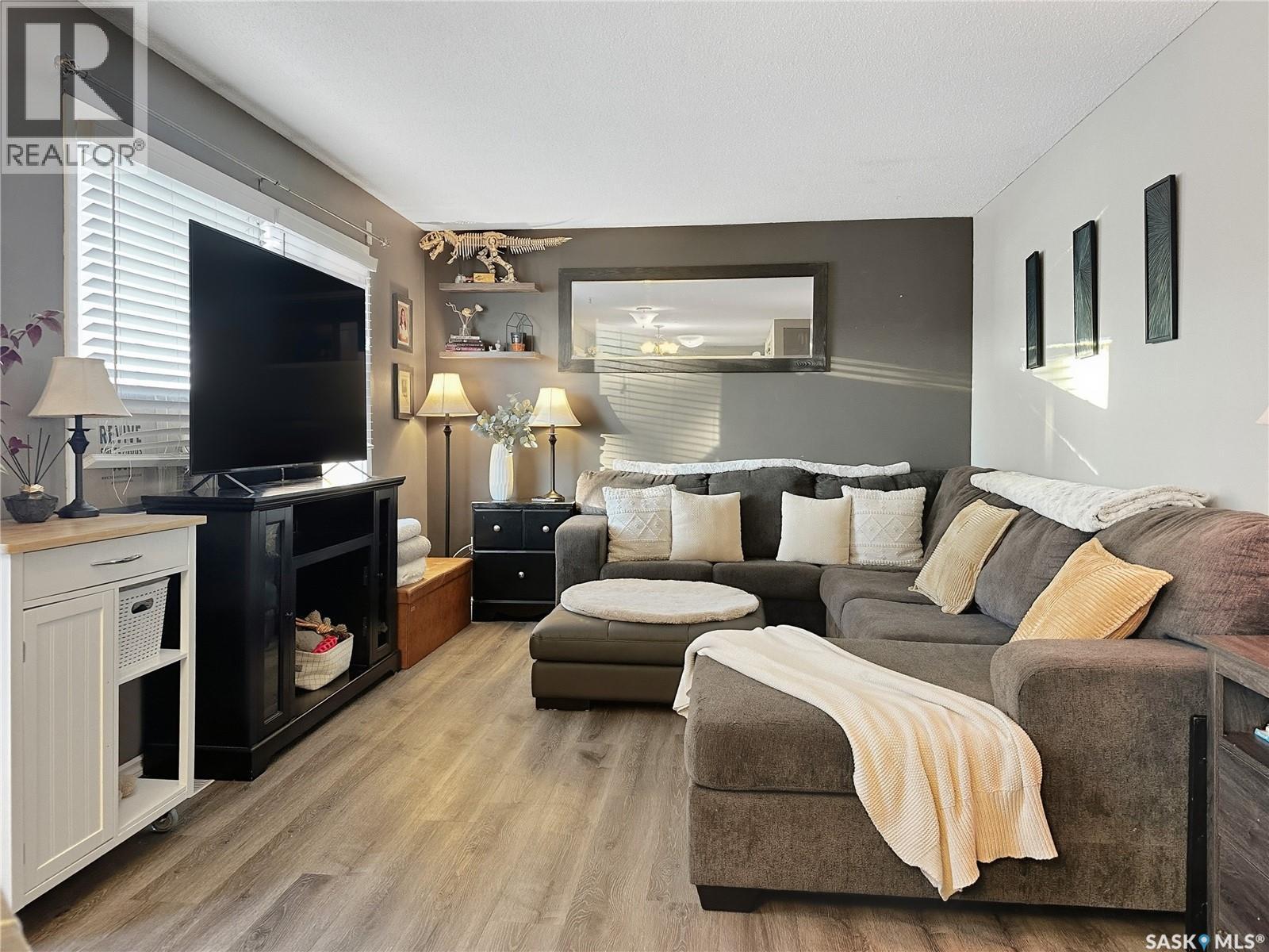 Welcome to this charming, move-in-ready home located on a quiet, family-friendly street in the Town of Battleford. Offering 828 sq. ft. of thoughtfully designed living space, this property is ideal for families, first-time buyers, or retirees seeking the ease of main-floor living. The open-concept kitchen, dining, and living area creates a bright and welcoming atmosphere, perfect for everyday living and entertaining. The kitchen features updated stainless steel appliances, all of which are included. All three bedrooms are conveniently located on the main floor, along with a 3-piece bathroom featuring a deep soaker tub. Main-floor laundry is also located upstairs, adding to the home’s practical layout. The fully finished basement offers a cozy family room—perfect for movie nights or relaxing—along with excellent storage space and a 3-piece bathroom with a walk-in shower as well as a den, providing extra comfort and flexibility. Enjoy the convenience of a single attached garage that is heated and insulated, with direct entry into a spacious mudroom. Step outside to an updated front deck, ideal for morning coffees or evening beverages after a long day. The fully fenced yard includes a shed for outdoor storage. Air conditioning has been added for comfort during warm summer months. With a layout that suits many different lifestyles and strong resale appeal, this well-maintained home is one you won’t want to miss. Call today to book your personal tour! As per the Seller’s direction, all offers will be presented on 01/18/2026 1:00PM. (id:44393)