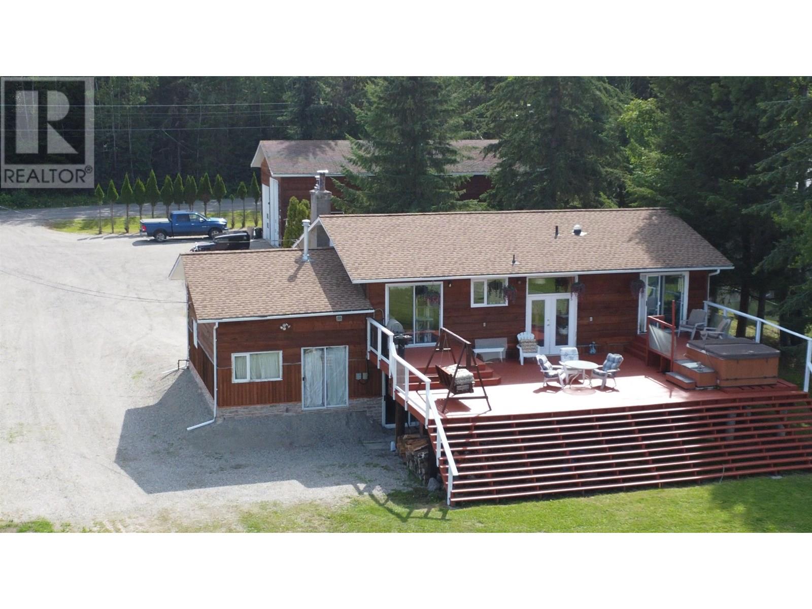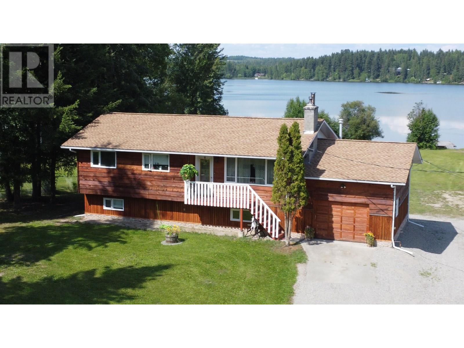 Waterfront, popular Bouchie Lake, less than 15 mins from downtown Quesnel. First time on market, relax on your 100' of level lake access and firepit or the massive 20'X40' deck and hot tub taking in those beautiful Cariboo sunsets. Property features a four bedroom home with two bedrooms up, primary walks out on to deck and two bedrooms down with a WETT certified wood stove in the basement.. Upstairs has sliding glass doors from the dining room on to the deck with a fireplace / insert in the living room, home is also heated by natural gas with 200amp electrical service and attached garage. The 30 'X 50' two bay shop features 12' & 14' doors, 16' ceiling, hoist, natural gas radiant heaters, 200amp electrical, mezzanine and two-piece bathroom. Fishing, Kayaking a Birdwatchers paradise. (id:44393)