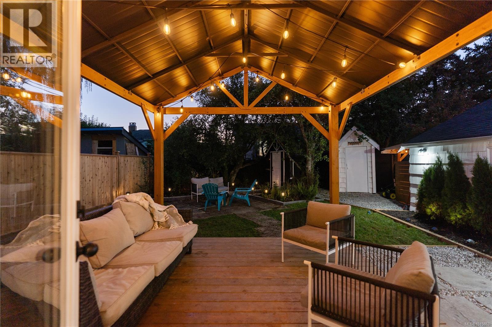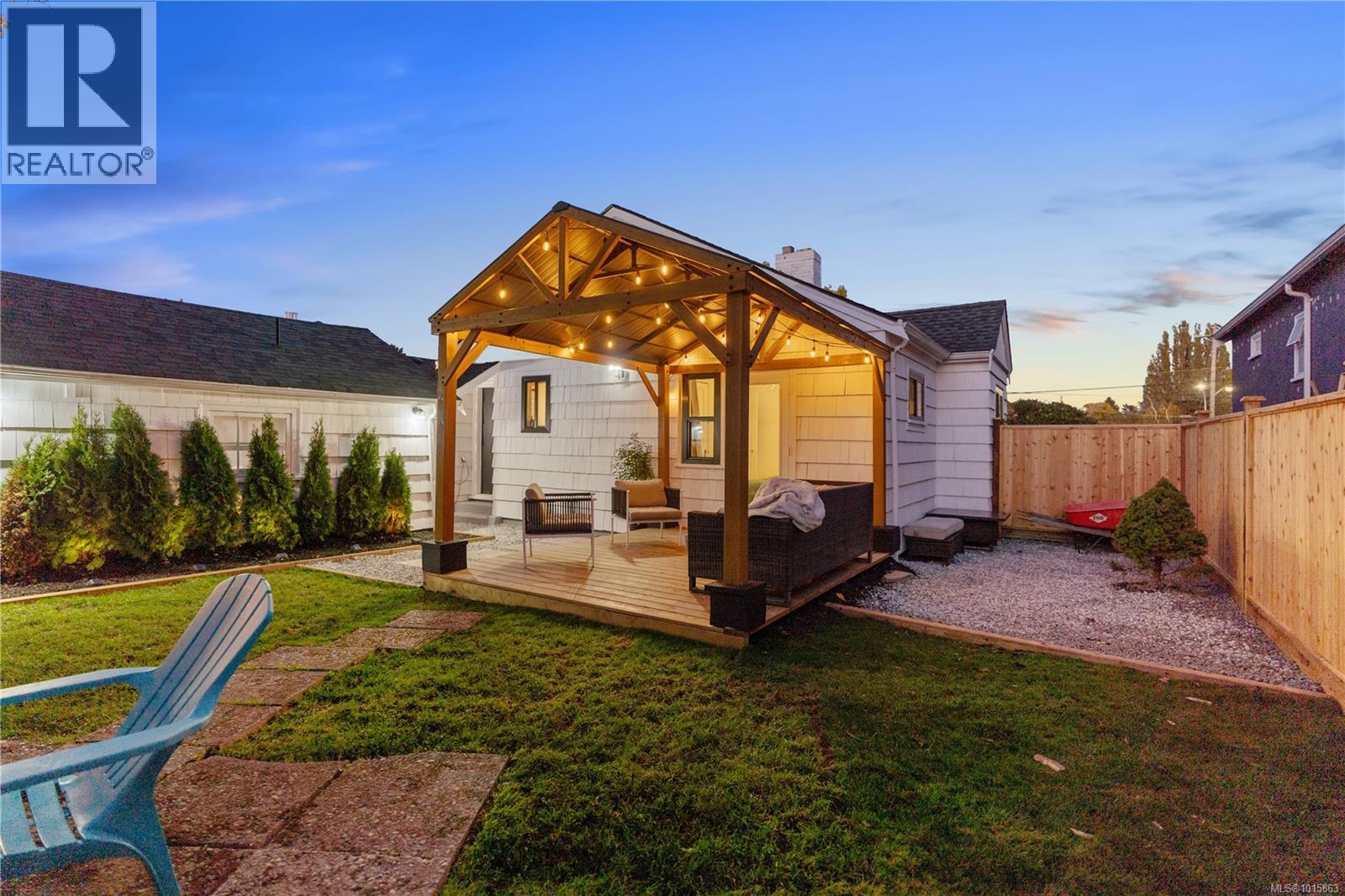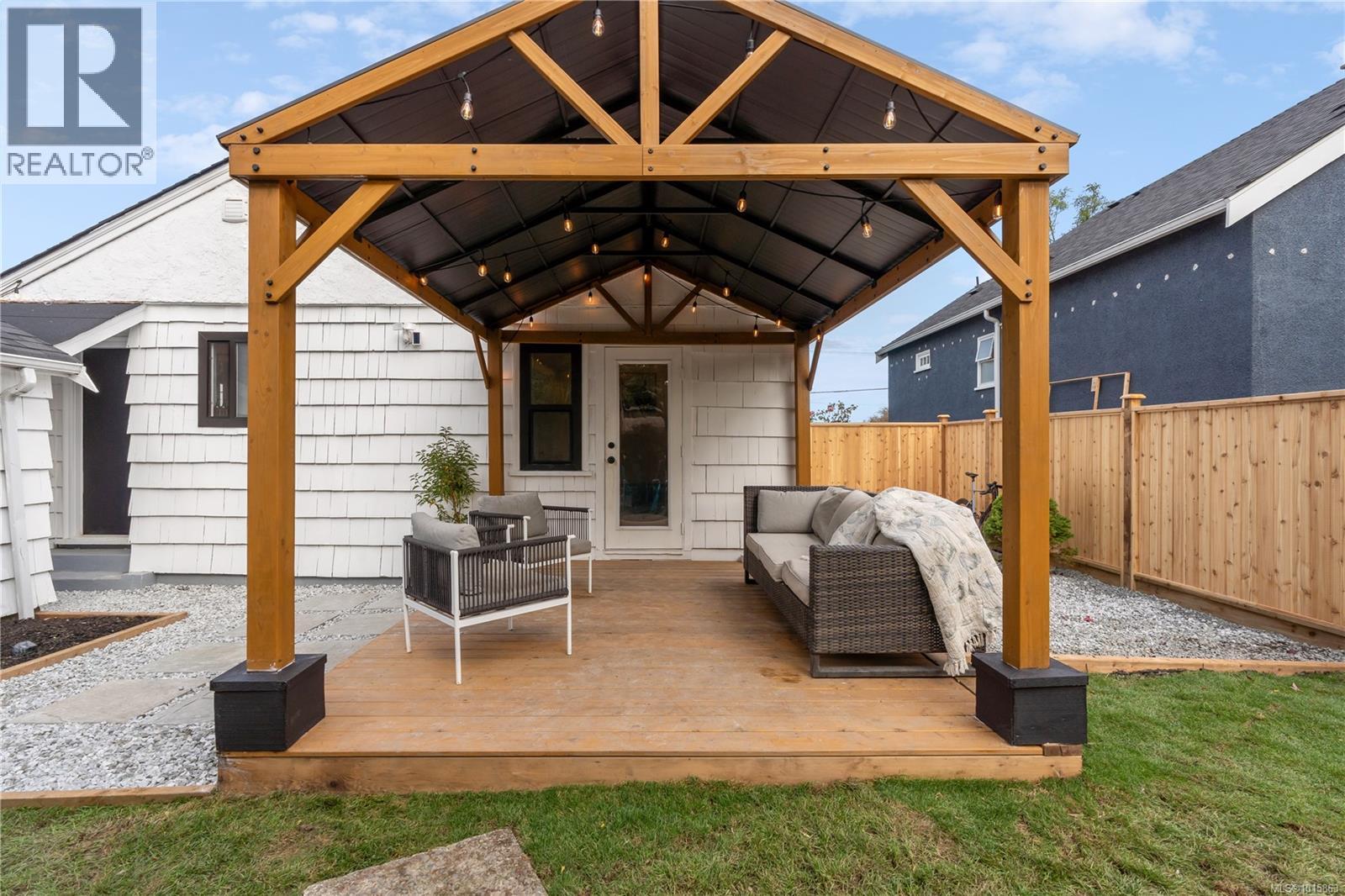Welcome to 2540 Blackwood street located directly across from a beautifully manicured park in one of the most walkable, bike friendly locations in Victoria! This stunning character home has been completely brought back to life! As you walk thru the front door you will be greeted with a warm, airy & cozy vibe with designer finishes throughout. The 2bed/1bath one level main home features a newly renovated kitchen with white oak harringbone flooring, floating oak shelves, custom wood cabinetry, quartz countertop & backsplash, pot filler, newer appliances & dining nook. The east facing living room with a custom Oak feature wall is flooded with natural light throughout the entire day while the private, fully fenced, southwest facing backyard receives sun all afternoon into the evening. The primary bedroom opens up to a newly constructed deck and gazebo perfect for a morning cup of coffee or an evening glass of wine regardless of the weather! The second bedroom has a large window looking out to a mature rose bush and built in storage. Upstairs you will find a finished loft area great for housing young guests, a cozy office space or a fantastic option for storage. The self contained garden studio has also been completely overhauled & finished with shiplap walls, new engineered floors, new kitchen, laundry & bathroom including its own covered patio space & romantic pathway from the side entrance. This idyllic Victoria street is full of prideful homeowners! Walk to Fernwood village, Quadra Village, downtown, coffee shops, grocery stores and some of the best dining in the city! Ask your realtor for list of the updates! Some updates include 200 amp panel, structurally reinforced & damp-proofed foundation, remediated landscaping with drain rock around the home entire home all the way down to the footing of the foundation, Mysa smart home heating system, new windows throughout the entire main home & more. Zoned high priority growth district makes for a great holding property! (id:44393)