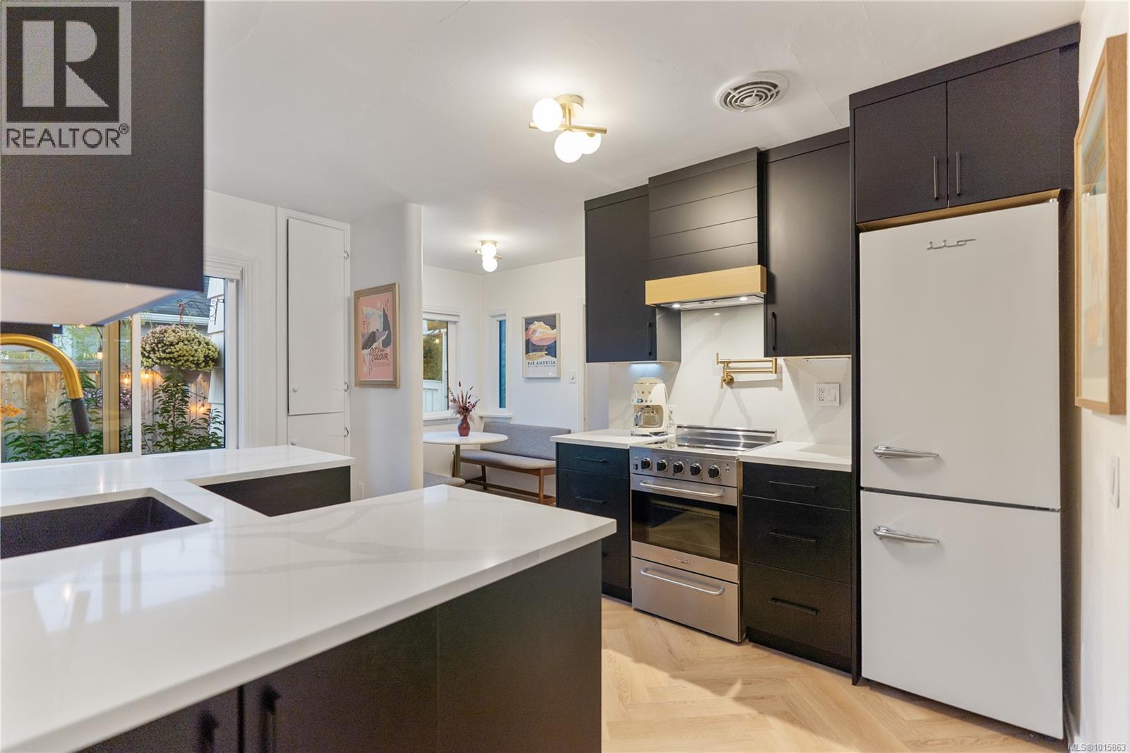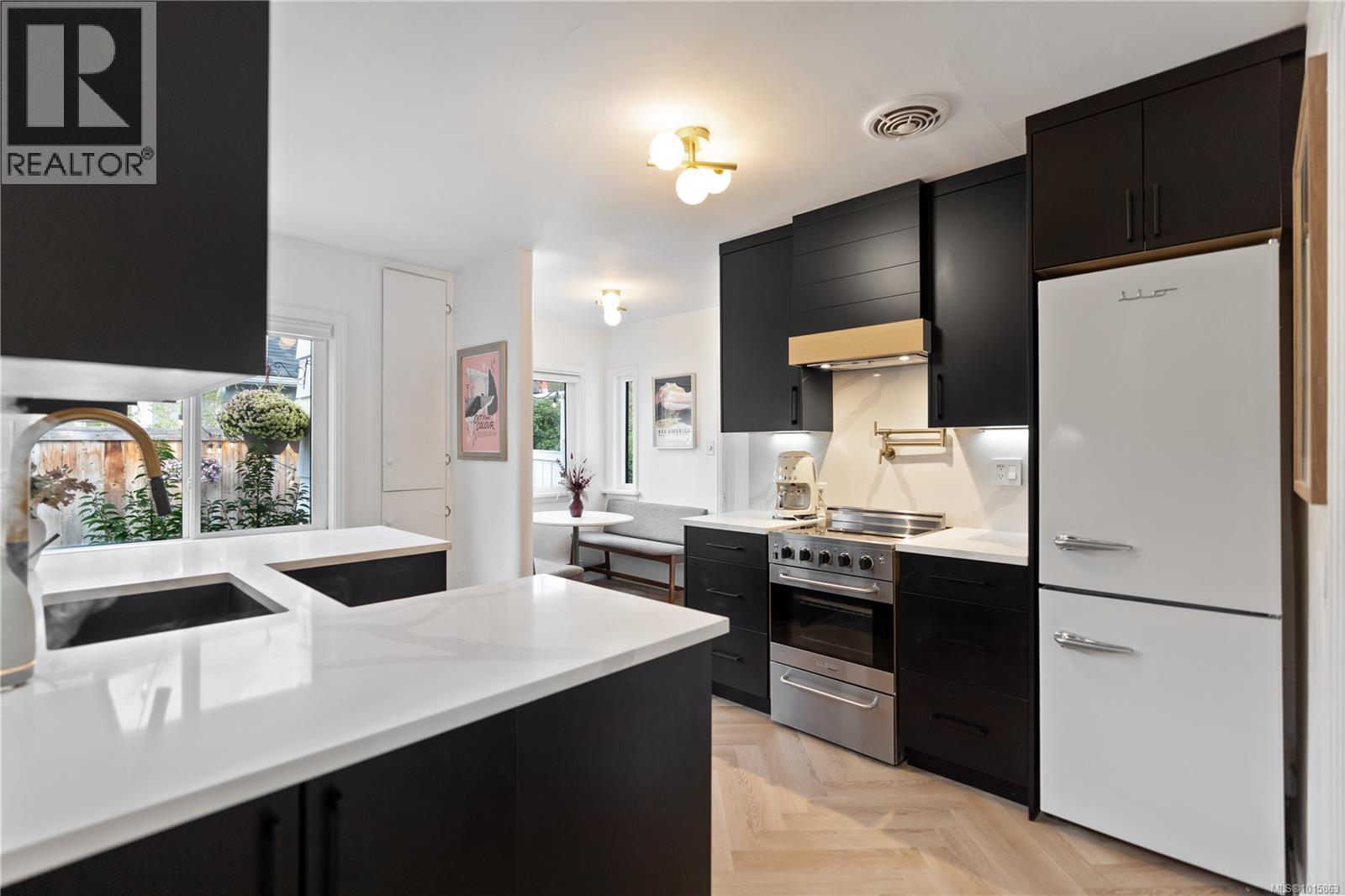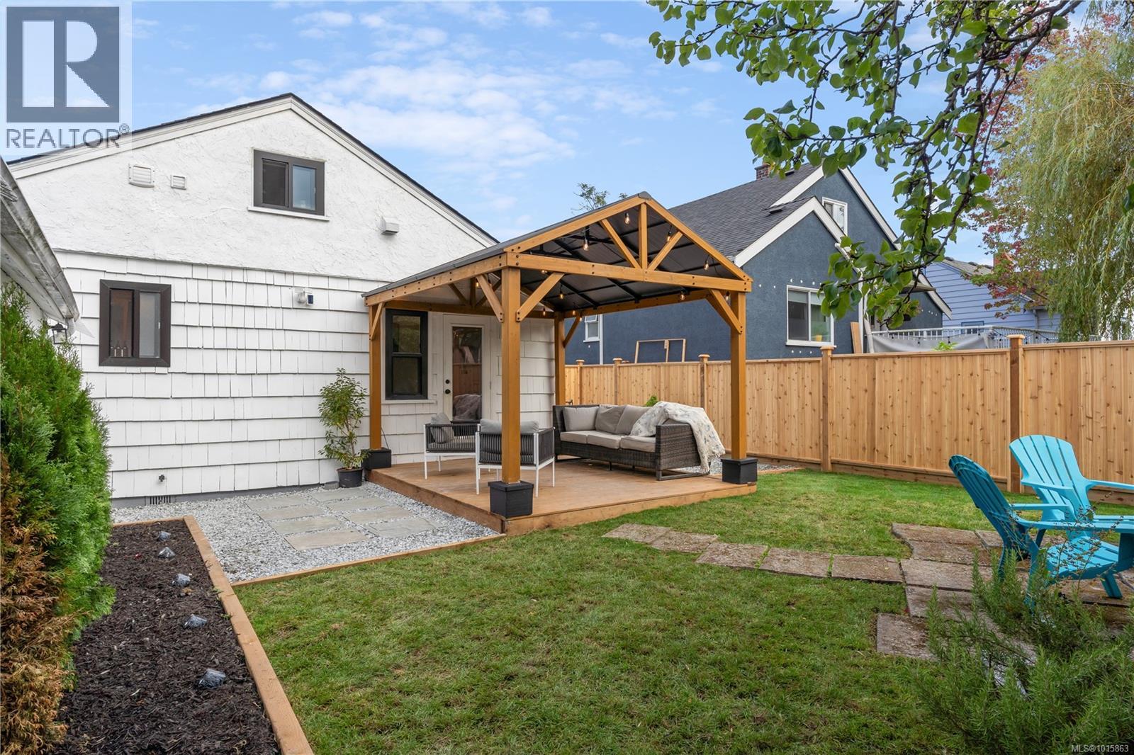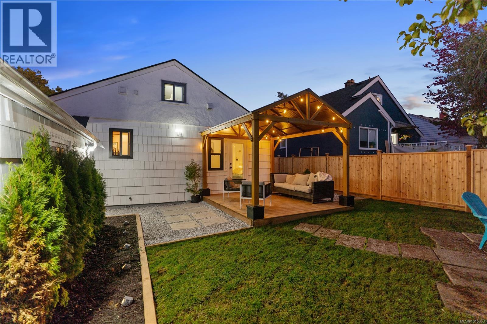 Welcome to 2540 Blackwood street located directly across from a beautifully manicured park in one of the most walkable, bike friendly locations in Victoria! This stunning character home has been completely brought back to life! As you walk thru the front door you will be greeted with a warm, airy & cozy vibe with designer finishes throughout. The 2bed/1bath one level main home features a newly renovated kitchen with white oak harringbone flooring, floating oak shelves, custom wood cabinetry, quartz countertop & backsplash, pot filler, newer appliances & dining nook. The east facing living room with a custom Oak feature wall is flooded with natural light throughout the entire day while the private, fully fenced, southwest facing backyard receives sun all afternoon into the evening. The primary bedroom opens up to a newly constructed deck and gazebo perfect for a morning cup of coffee or an evening glass of wine regardless of the weather! The second bedroom has a large window looking out to a mature rose bush and built in storage. Upstairs you will find a finished loft area great for housing young guests, a cozy office space or a fantastic option for storage. The self contained garden studio has also been completely overhauled & finished with shiplap walls, new engineered floors, new kitchen, laundry & bathroom including its own covered patio space & romantic pathway from the side entrance. This idyllic Victoria street is full of prideful homeowners! Walk to Fernwood village, Quadra Village, downtown, coffee shops, grocery stores and some of the best dining in the city! Ask your realtor for list of the updates! Some updates include 200 amp panel, structurally reinforced & damp-proofed foundation, remediated landscaping with drain rock around the home entire home all the way down to the footing of the foundation, Mysa smart home heating system, new windows throughout the entire main home & more. Zoned high priority growth district makes for a great holding property! (id:44393)