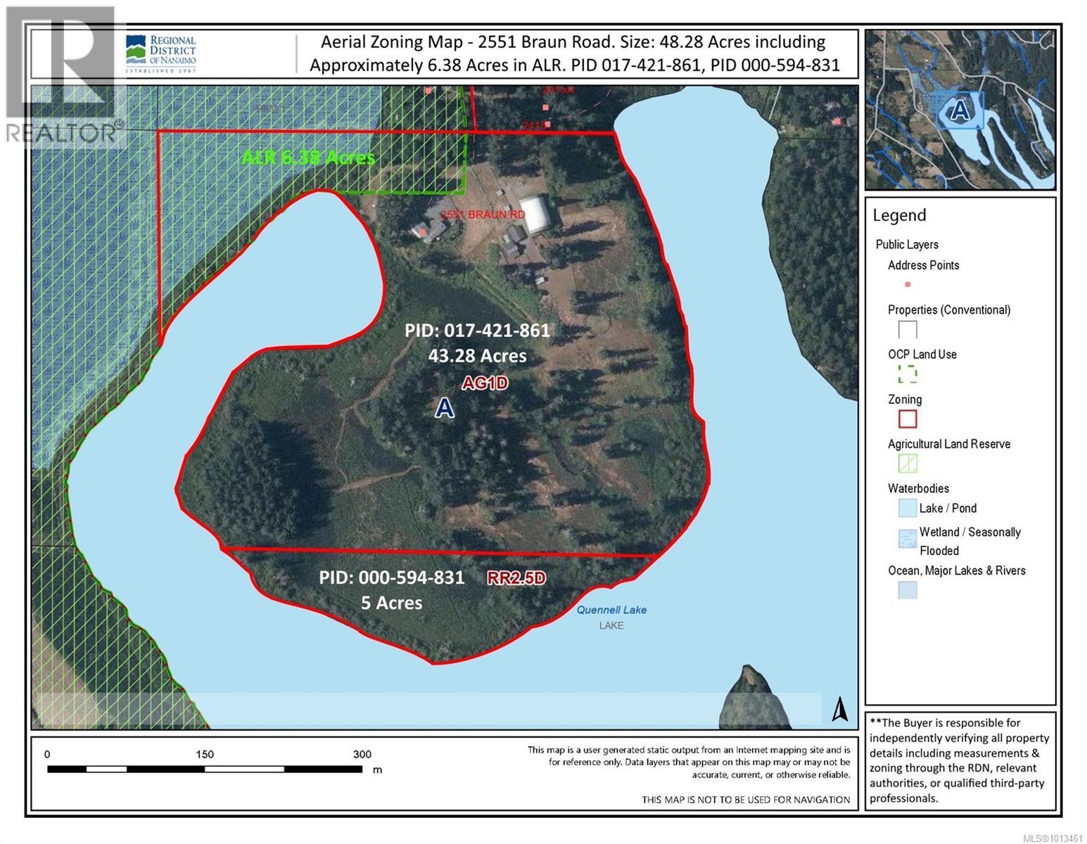 Flying B Acres is a 48-acre Quennell Lake estate just south of Nanaimo, offering 5,000+ feet of pristine waterfront, fertile farmland, versatile agricultural zoning, and extraordinary commercial potential. The property is improved with a 3,600 sq ft, 3-bedroom, 3-bathroom country home and a separate 972 sq ft, 2-bedroom, 2-bathroom guest house. Turnkey agribusiness infrastructure includes a covered riding arena, barn, stables, paddocks, storage sheds, and onsite power. Easily accessed via Quennell Lake’s floatplane airdrome (20 minutes from YVR) or a 10-minute drive from Nanaimo Airport and ferry terminals, the property offers seamless connectivity. The agricultural zoning provides a wide range of development opportunities within the farm context, including farm retail sales and processing, value-added ventures such as winery, cidery, or artisanal food and beverage production; equestrian enterprises from boarding and training to riding lessons and therapeutic programs; animal-based ventures like beekeeping, alpaca, or sheep farming for fiber and textiles; agritourism and hospitality with farm stays, tours, and lodging; hosting event gatherings like weddings, corporate retreats, or music festivals; aviation and waterfront experiences like floatplane fly-ins, seaplane tours, and eco-adventures; sustainability initiatives such as solar, wind, or conservation projects; cannabis production and mushroom cultivation (inside the ALR portion); agricultural research; and forestry or sawmill operations for on-site timber processing. Blending stunning natural beauty, fertile farmland, dependable irrigation options, and turnkey infrastructure with versatile zoning, Flying B Acres is uniquely positioned to support agribusiness, destination agritourism, equestrian operations, and event hosting - offering multiple revenue streams and the opportunity to create a landmark Vancouver Island destination. (id:44393)