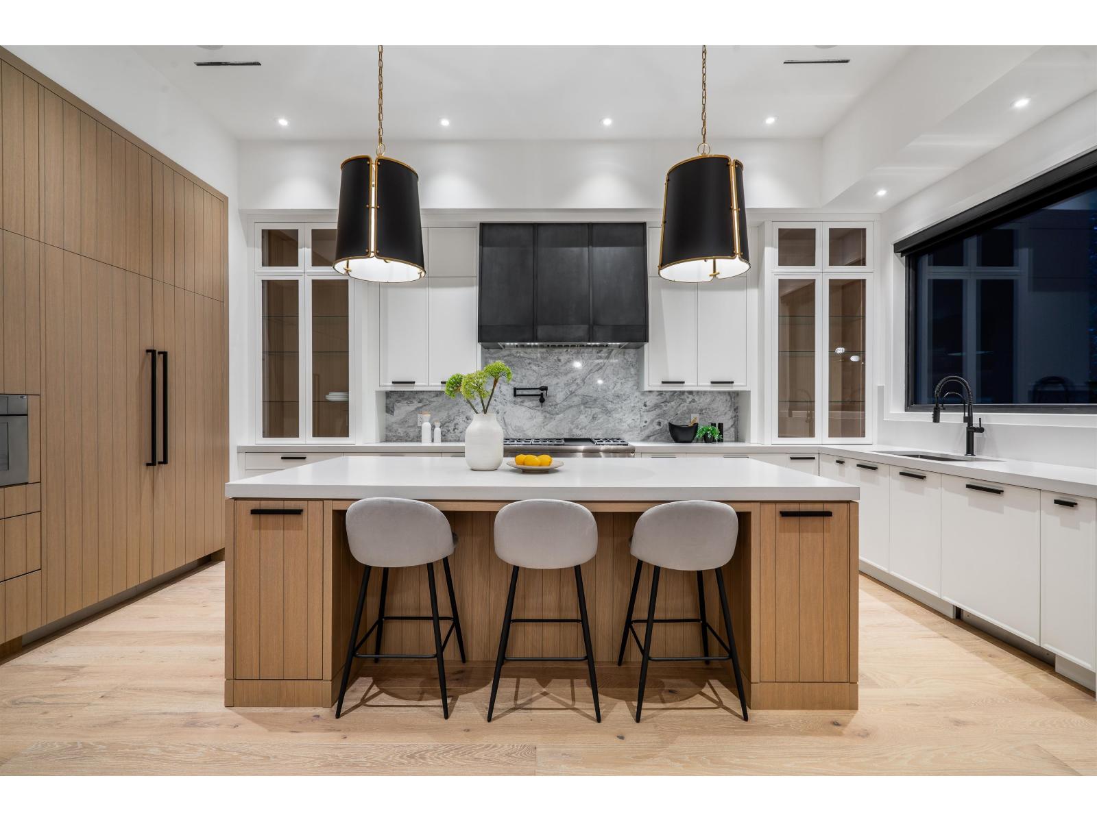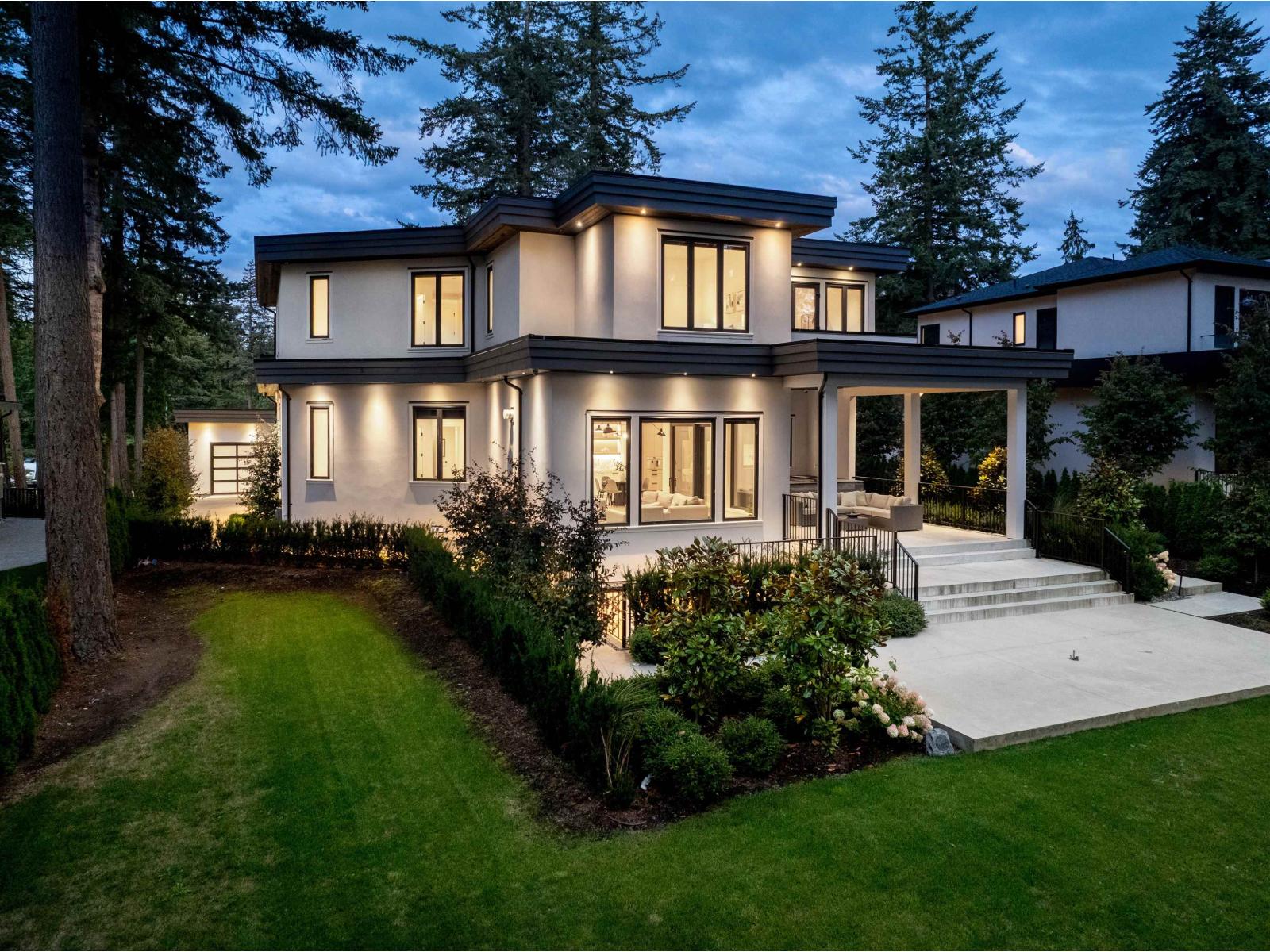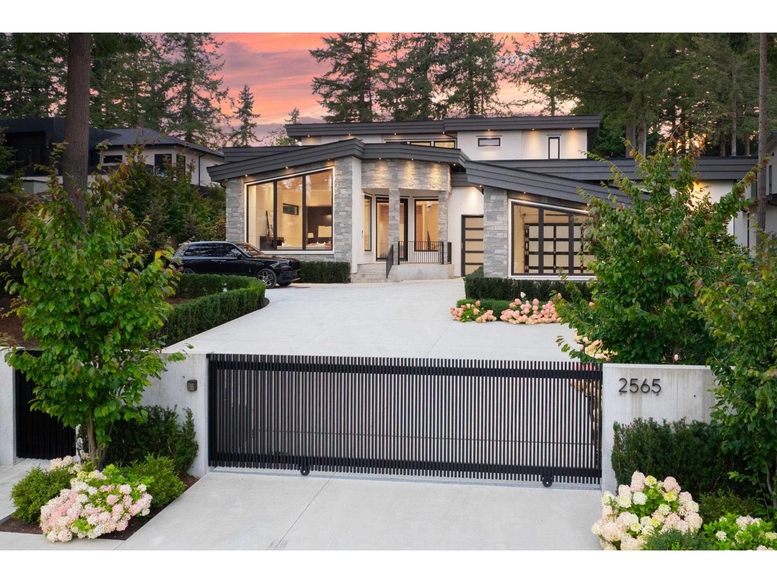 Located in South Surrey's exclusive Elgin neighbourhood, this brand new modern estate is situated on a private and gated 24,000+ sf property. The exceptional craftsmanship and exquisite selection of materials by the award-winning designer Rose & Funk Interiors, define this 8 bedroom, and 9 bathroom luxury residence offering every modern convenience imaginable with a blend of comfort and refined elegance. Experience large principal rooms with soaring ceilings, and folding glass doors that provide an indoor-outdoor lifestyle experience with built in BBQ and a covered terrace overlooking the manicured, park-like grounds. Additional features include: an elevator, primary bedroom on the main, 2nd daily kitchen, gym, bar, sauna, legal suite, Control 4 smart home technology, and 4 car garage. (id:44393)