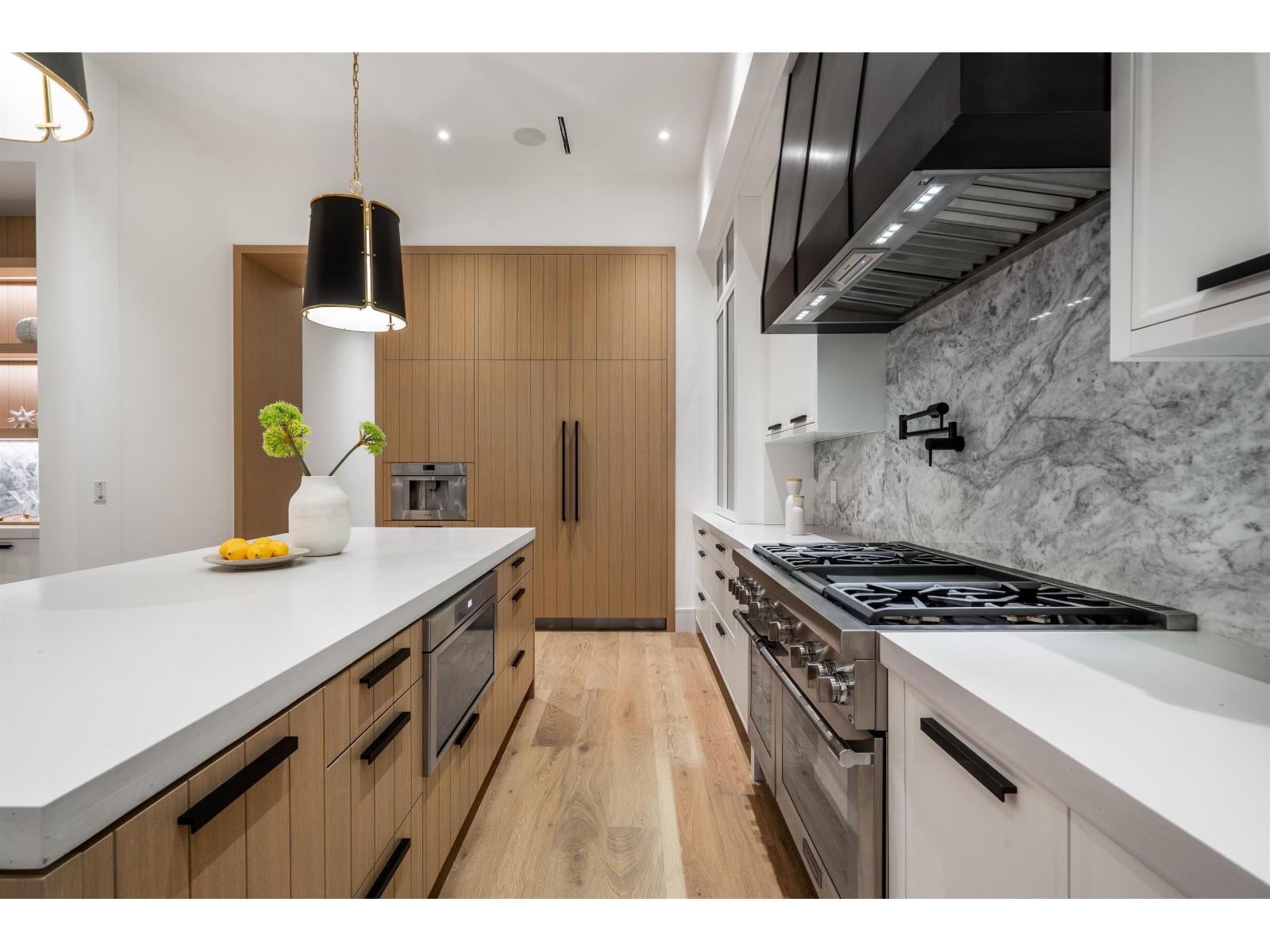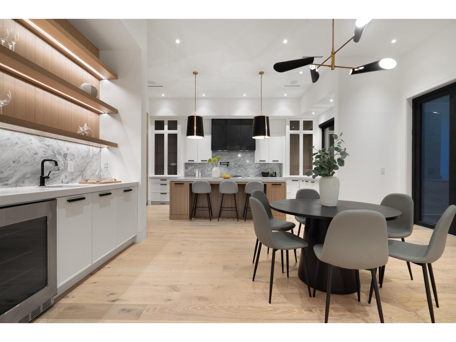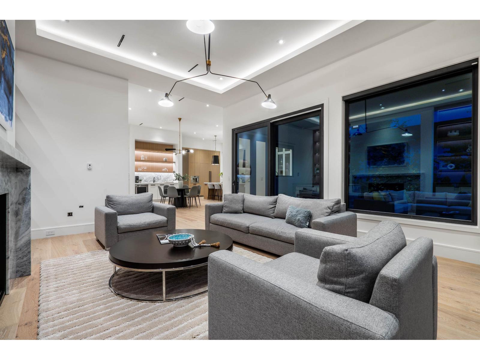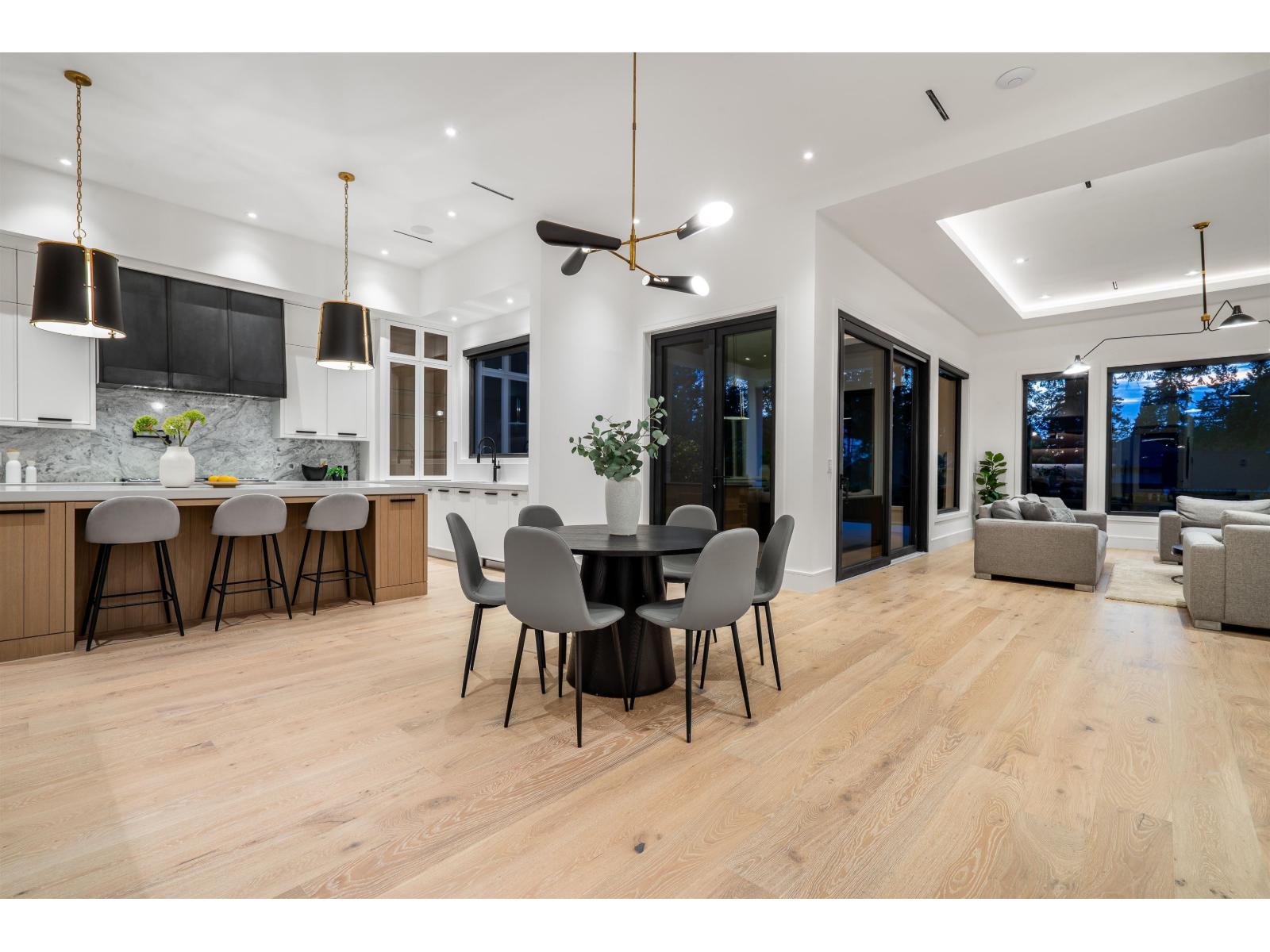 Located in South Surrey's exclusive Elgin neighbourhood, this brand new modern estate is situated on a private and gated 24,000+ sf property. The exceptional craftsmanship and exquisite selection of materials by the award-winning designer Rose & Funk Interiors, define this 8 bedroom, and 9 bathroom luxury residence offering every modern convenience imaginable with a blend of comfort and refined elegance. Experience large principal rooms with soaring ceilings, and folding glass doors that provide an indoor-outdoor lifestyle experience with built in BBQ and a covered terrace overlooking the manicured, park-like grounds. Additional features include: an elevator, primary bedroom on the main, 2nd daily kitchen, gym, bar, sauna, legal suite, Control 4 smart home technology, and 4 car garage. (id:44393)