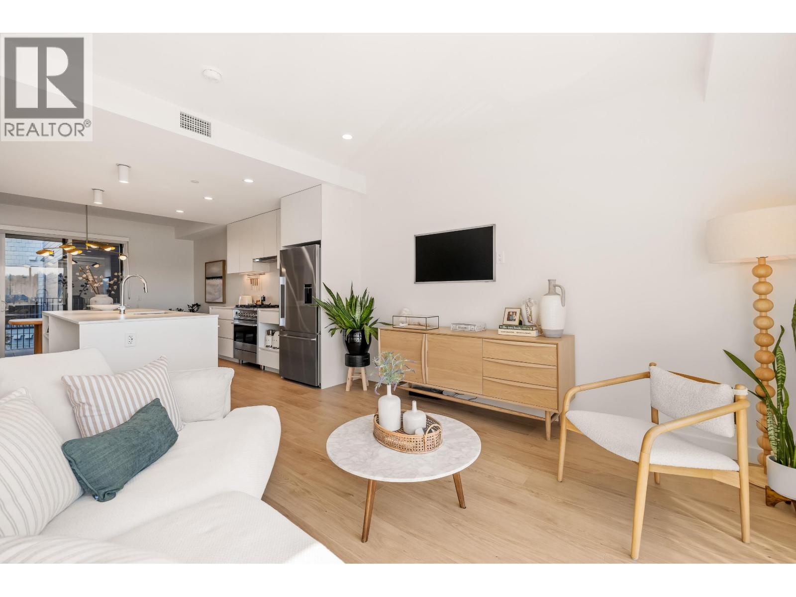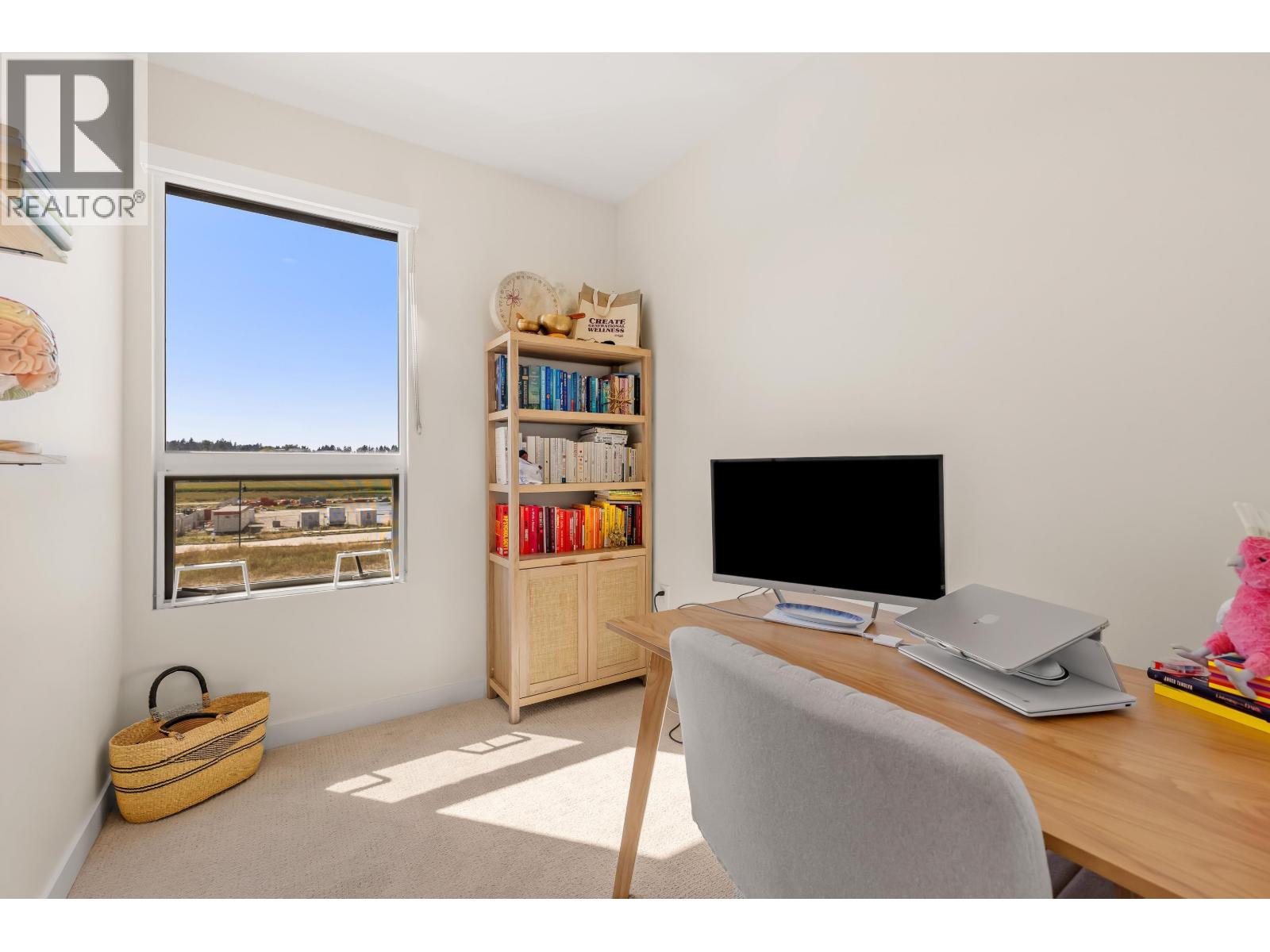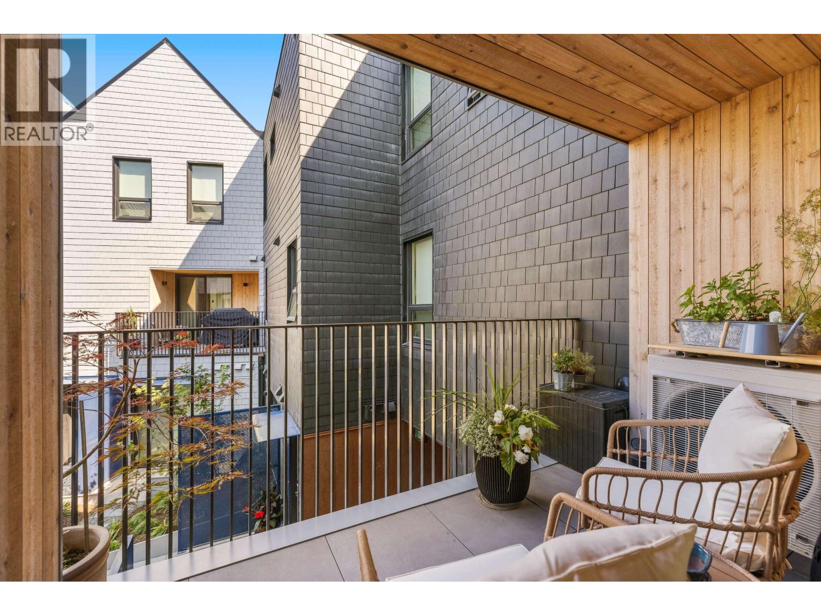 $579.04 MonthlyTucked into the vibrant Southlands community, this immaculate TH is a total mood booster, modern & warm with a clean neutral palette throughout. Over 1,350 sf, it´s open & bright, yet completely private. Floor to ceiling windows, 9´ ceilings & vaulted ceilings upstairs, this home is practically brand new without the GST. Live, eat & entertain on your spacious main floor with a powder room + easy access to your covered balcony where you can enjoy a peaceful outlook to the private courtyard. Truly is the heart of this home, the kitchen has a 9´ island with stunning matte Quartz counter. FisherPaykel appliances - sweet! Up, 2 big bedrooms, big closets, 2 beautiful baths + flex space that moonlights as a home office. 2 parking, but walk to Four Winds or the beach. (id:44393)