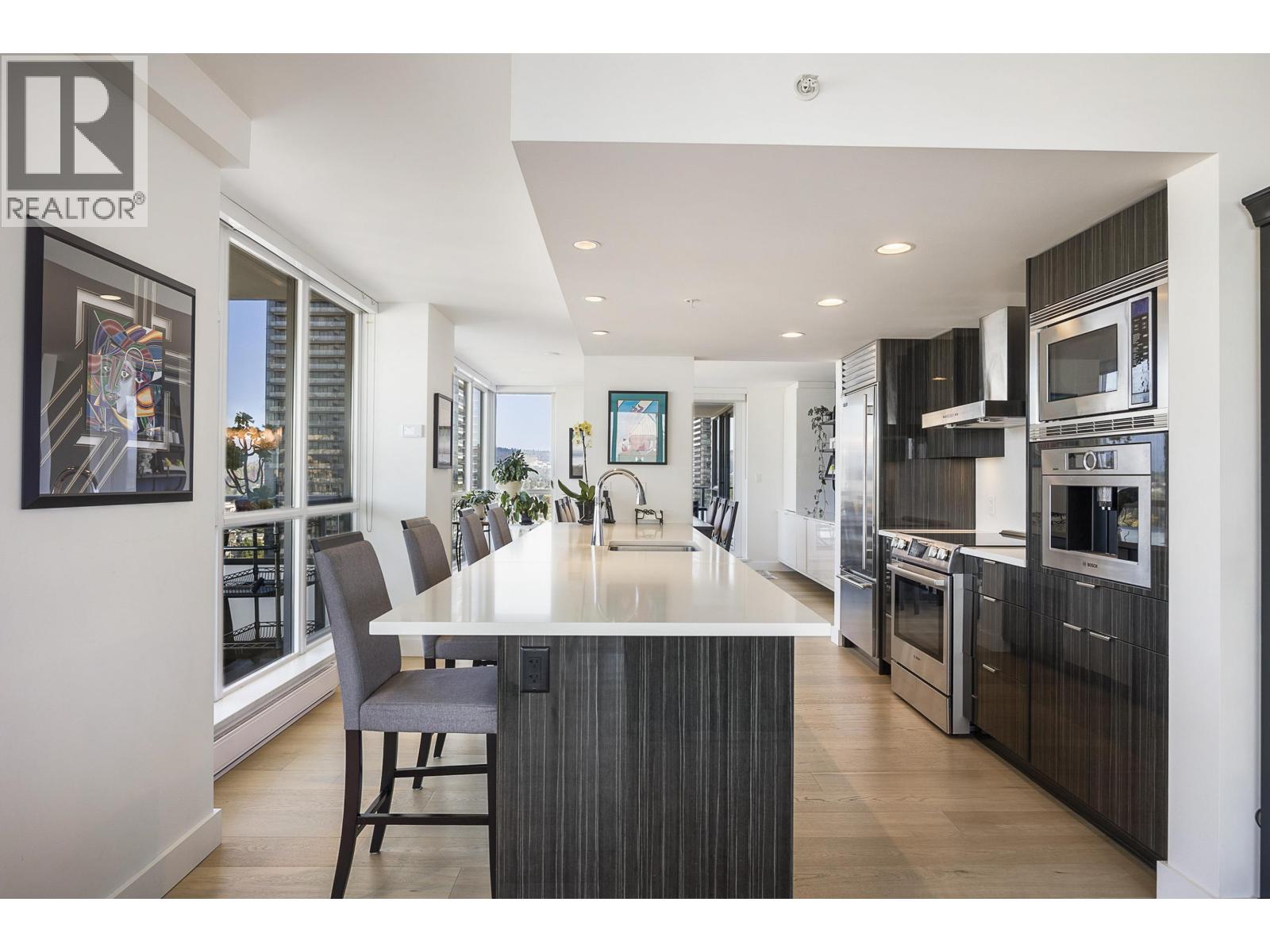 $1,073.34 MonthlyLUXURY LIVING in Brentwood Mall area built by Appia Group. This 1947SF, spacious 3 bed & 3 full bath home, showcases STUNNING 180 degree East, North & West VIEWS. The open style kitchen is renovated with high end cabinetry & appliances, countertops, & espresso maker. Spacious living & dining rooms are perfect for entertaining featuring newer engineered hardwood throughout. Other upgrades include custom cabinetry throughout, 120 bottle wine fridge, & built in wall bed and desk in guest bdrm. Extensive storage throughout. Enjoy INCREDIBLE VIEWS on a 480SF WRAP AROUND BALCONY perfect for entertaining! Off the dining area is a secondary balcony at 112SF with more views. 2 parking, 1 locker, & fantastic amenities. Location beside Brentwood, Skytrain, Solo District, Whole Foods & more! See video! (id:44393)