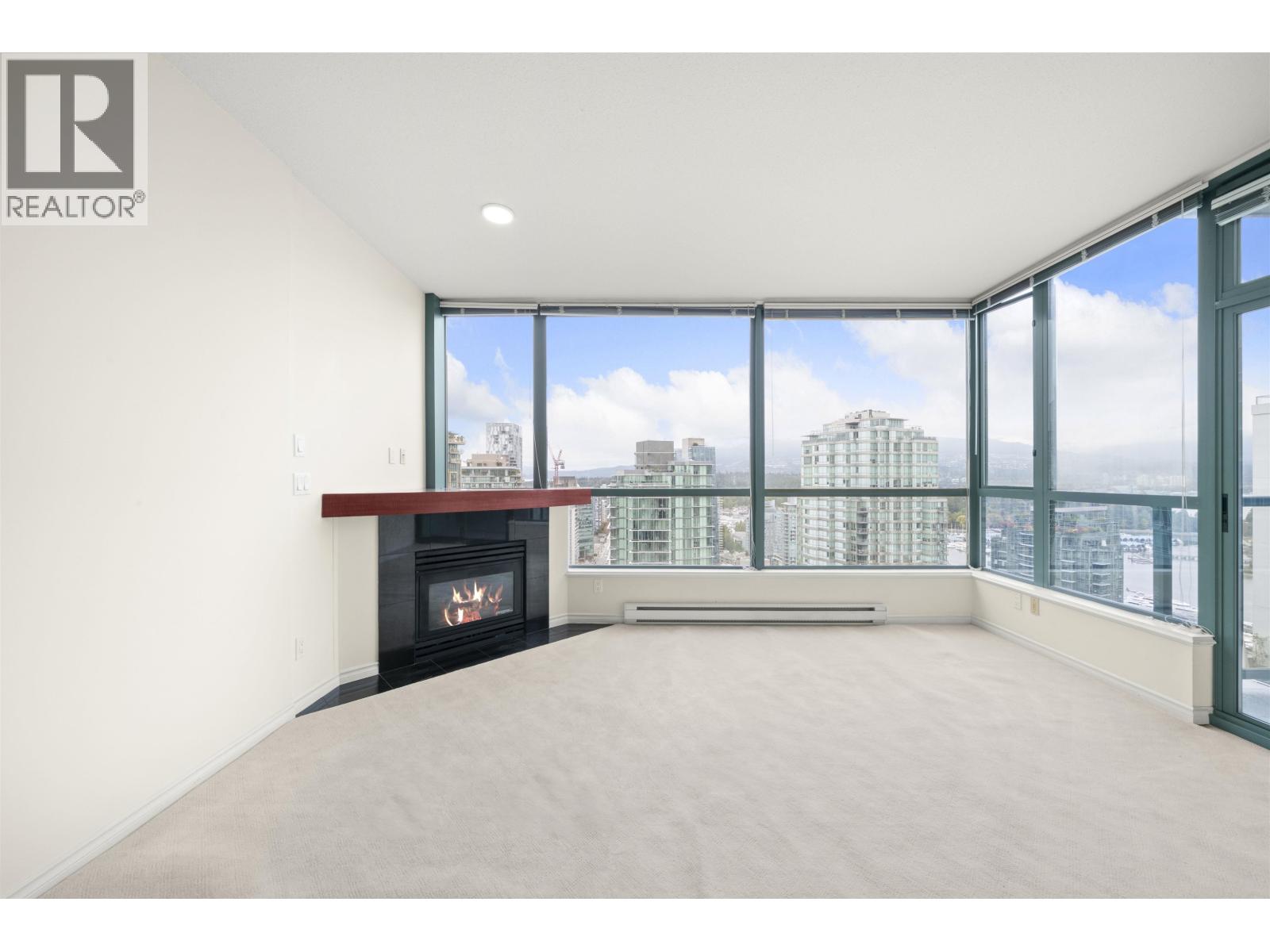 $454.80 MonthlyMove-in ready - live, rent, or renovate! This 26th floor 1 bedroom + flex home offers spectacular city, water, and mountain views through floor-to-ceiling windows. A bright and functional layout features a cozy gas fireplace, open kitchen, in-suite laundry, and a flex room ideal as a home office or extra storage. Step out onto your private balcony and soak in sweeping views over Coal Harbour and Stanley Park. The building offers 24/7 concierge, indoor pool, hot tub, sauna, and fitness centre for a resort-style lifestyle. Includes 1 parking and 1 storage locker. Unbeatable location with the seawall, Stanley Park, shops, dining, and transit just steps from your door. A fantastic opportunity to create your Downtown Vancouver dream home. Open Sat 4th 2-4 PM (id:44393)