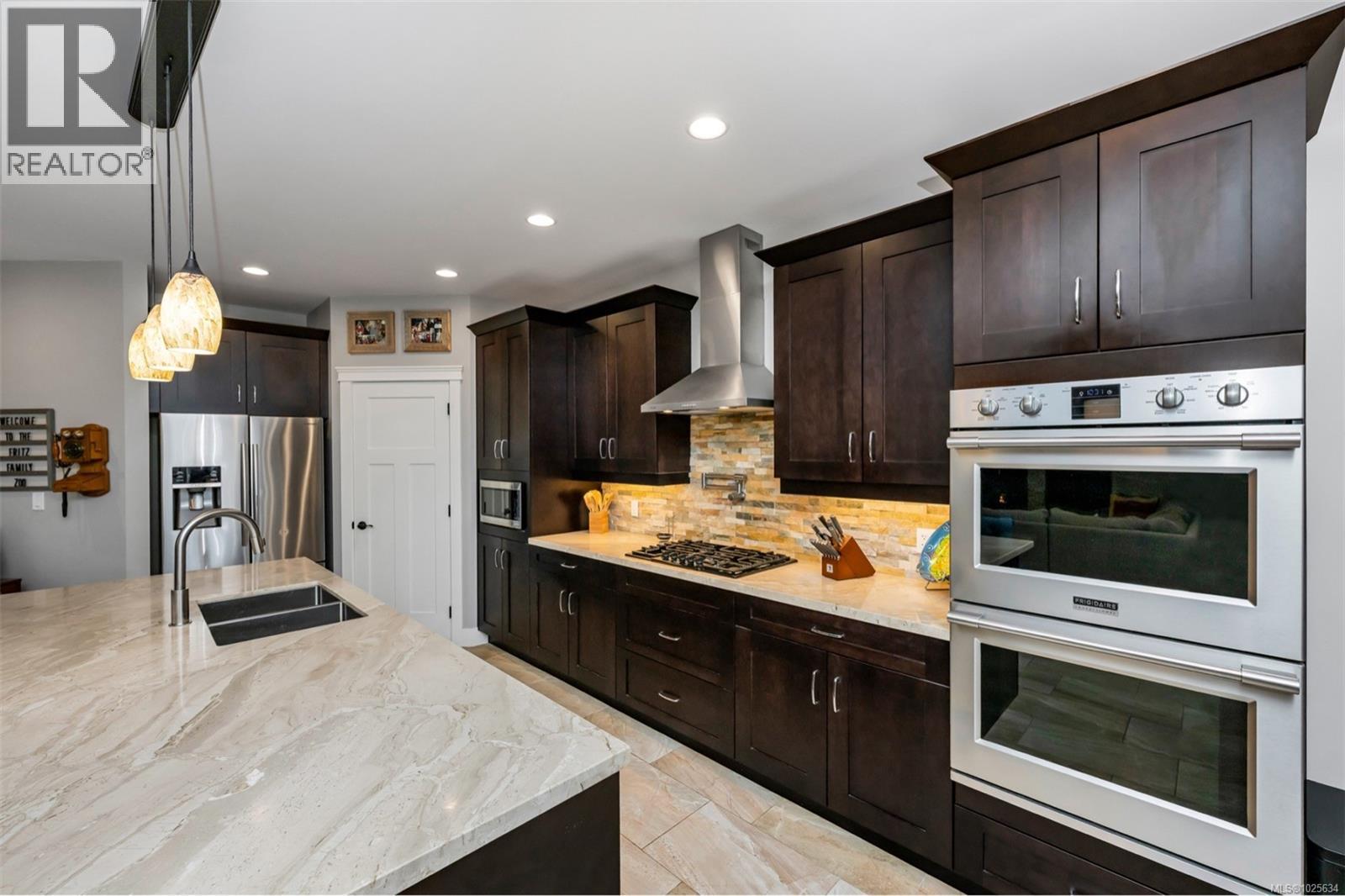 $60 MonthlySet on a private 0.68-acre cul-de-sac with stunning southeast mountain views, this exceptional home offers 2,847 sqft on the main floor plus a 934 sqft bonus area upstairs. The thoughtfully designed open-concept layout features a luxurious primary bedroom on the main level alongside three additional bedrooms, with another bedroom and bonus room upstairs. The high-end kitchen boasts terrazzo stone countertops, double ovens, a gas stove with water filler, and premium finishes throughout. Coffered ceilings in the living room and office, detailed trim work, and a natural gas fireplace highlight the craftsmanship. Enjoy efficient heat pump heating, a double garage with ample storage, shop space, and a huge 3’10” crawlspace. Step onto the covered porch overlooking a flat, fully fenced backyard. Just 30 minutes to Langford and a short stroll to Shawnigan Lake for swimming and boating—perfect for commuters and outdoor enthusiasts alike. (id:44393)