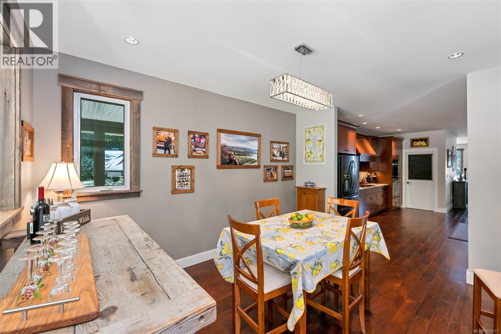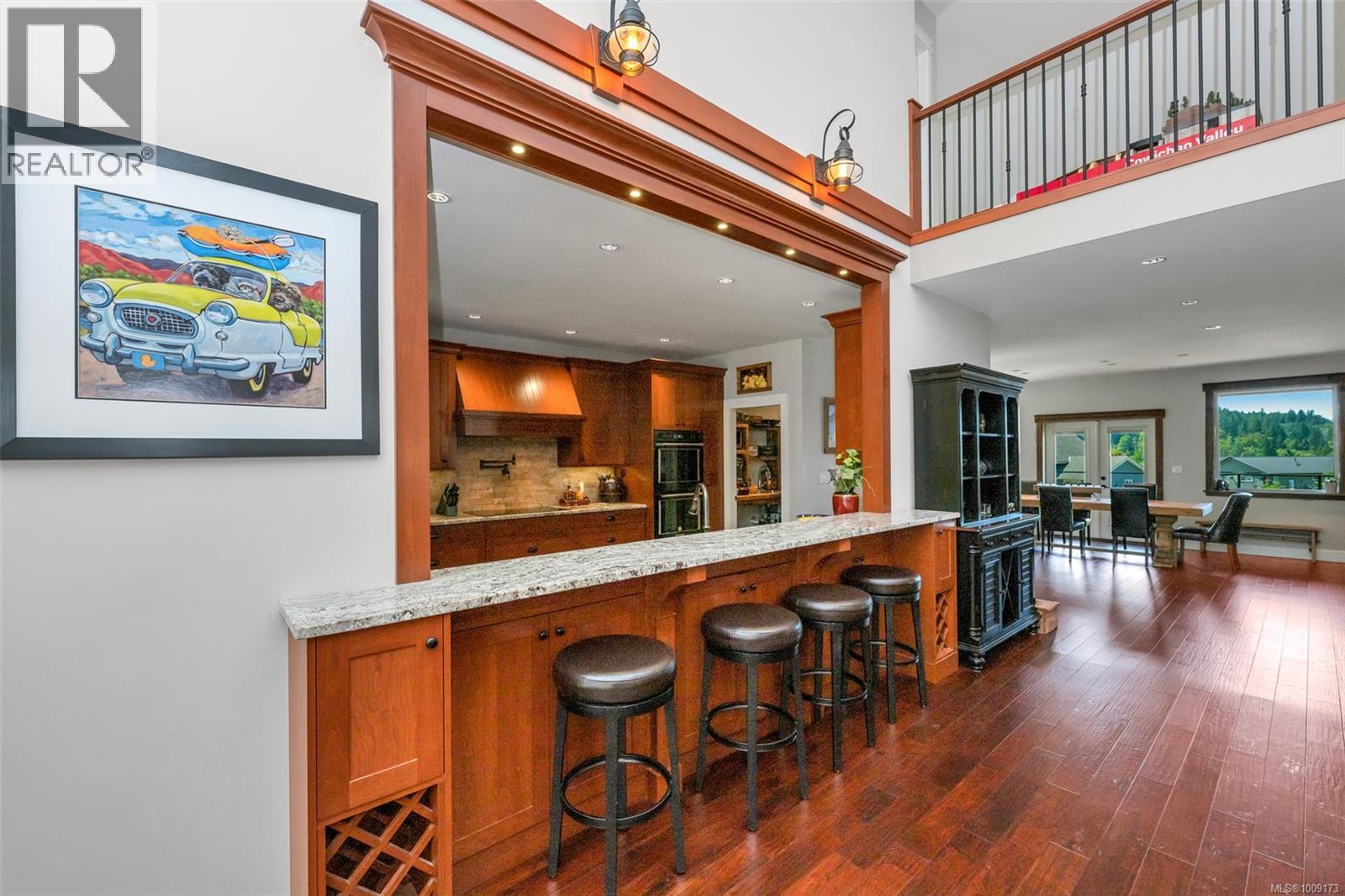 A One-of-a-Kind Custom Masterpiece in the Heart of Lake Cowichan. Prepare to fall in love the moment you arrive at this extraordinary home. This custom-built residence is brimming with warmth, character, and craftsmanship. From the moment you step on to the front porch, the tone is set for what lies ahead. Inside, the details speak for themselves. The rich engineered hardwood flooring and stunning cherry wood kitchen cabinetry combine to create a home that’s both luxurious and grounded in natural beauty. The great room, thoughtfully designed for entertaining whether you're hosting a lively gathering or an intimate dinner party, and the chef’s kitchen is a dream come true. Induction cooktop, double convection ovens, granite countertops, and a spacious walk-in butler pantry provide everything you need and more. The primary suite on main is a true sanctuary, a large walk-in closet and ensuite with heated floors. Step outside to a covered saltwater hot tub, perfect for unwinding after a long day. Upstairs offers three large bedrooms and full bath. The lower level is far more than a basement, this space has been intelligently designed for maximum functionality and creativity with media room, workshop and storage. Step in to the pride of the home to an exceptional wine room that will captivate even the most serious collector, complete with a live-edge wet bar and hand-carved cedar sink. Modern comforts include a dual-zone variable speed heat pump with two air handlers, a Wi-Fi enabled Lutron lighting system, and pre-wiring for a generator. Access to an oversized garage. Every corner reveals a new surprise, a thoughtful detail, or a hidden delight. This is a home full of magic and soul. Lovingly created by its original owner, this is more than a house, it’s a labour of love. Be inspired for your next chapter. Meander thru peaceful trails, and enjoy the large flat usable yard. With views of the lake, valley, and surrounding mountains. Don’t just imagine it, experience it. (id:44393)