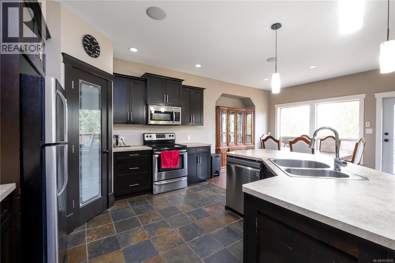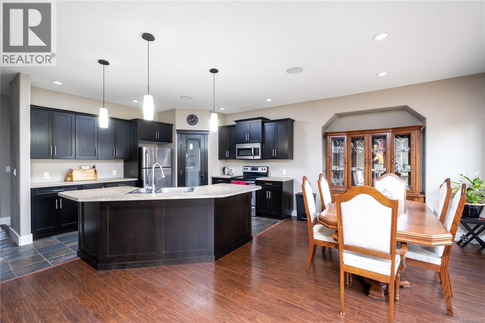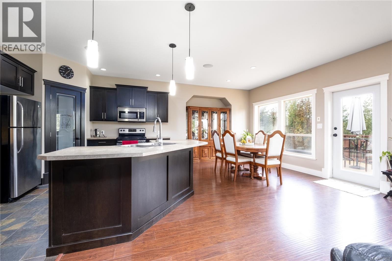 Modern 2600 sqft plus family home centrally located in the vibrant village of Cumberland. Highly desirable main floor entry with daylight basement means there's lots of light and room for everyone! This residence built in 2011 features an open concept living/dining/kitchen combo which is perfect for family life and entertaining. Large deck off back where one can sit back and enjoy the private backyard and green space behind. Master bedroom is huge and sports a generous ensuite and walk in closet. Bedroom upfront near main entrance is ideal for an office or kids. Downstairs is an additional two bedrooms, rec room and family room. Storage solutions abound on both levels and the double garage easily holds vehicles, sports equipment etc. Heat pump offers energy efficient heating in winter and cooling in summer. Recreation, schools and vibrant village center are all within easy reach. Come check out and live the cool Cumberland lifestyle today! (id:44393)