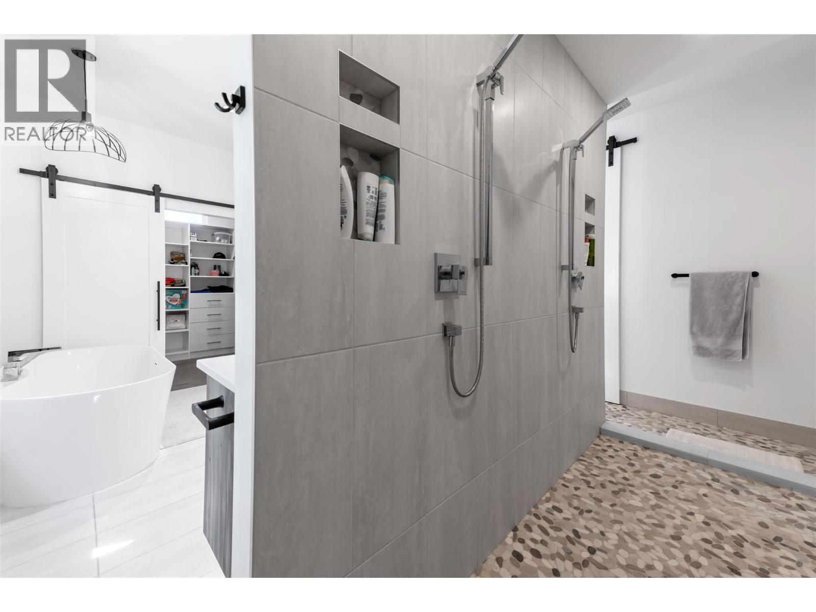 Modern Custom Home with fabulous Lake Views. This stunning 4 bedroom, 4 bathroom home with a legal one bedroom suite is ready for its new owners. This bright and spacious design, with 12 ft ceilings and floor to ceiling windows, allows lots of natural light and great views of Okanagan Lake and Kelowna. The Primary bedroom is complete with a spacious walk in closet, luxurious ensuite bathroom with freestanding tub, walk through dual shower and his and her sinks with ambience lighting to accentuate the vanities. The Kitchen includes granite counters, a coffee/mini bar and stainless steel appliances. The home also features a large roof top patio, a triple tandem garage, and ample parking for your recreational vehicles. Book your showing today. (id:44393)