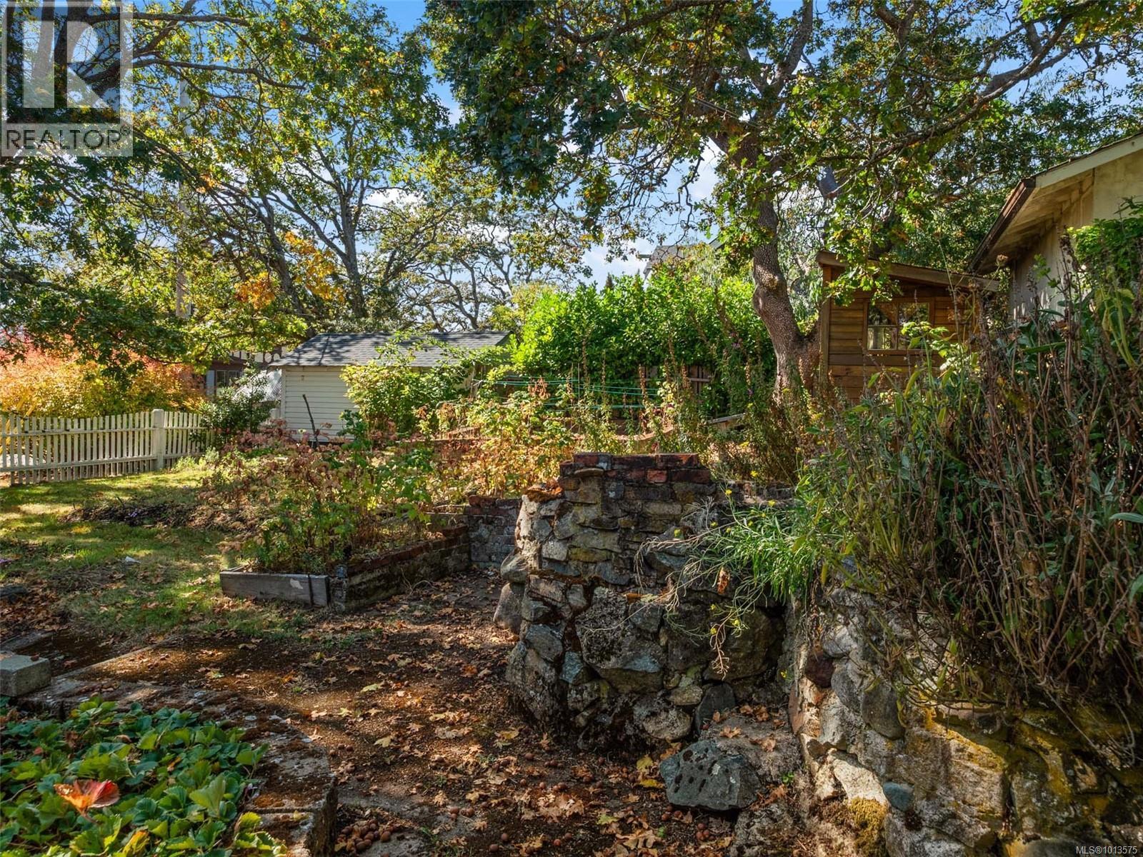 In 1944, Oaklands was a developing neighbourhood in Victoria, BC, known for its growing residential areas and its proximity to the city's central amenities, with the first school, Oak Bay United Church, and shops being established in the late 1920s and 1930s. Welcome to this timeless 1944 character home, perfectly situated on a quaint, tree-lined street in the heart of Victoria’s sought-after Oaklands neighbourhood. Brimming with charm, this residence blends classic craftsmanship with flexible living spaces and endless potential. The main level showcases a thoughtfully designed layout with a spacious living room highlighted by gleaming oak floors, elegant coved ceilings, an inviting fireplace and a bright bay window that fills the room with natural light. The functional kitchen and adjacent laundry room add everyday convenience, while the main floor also features two comfortable bedrooms including a primary with a 2-piece ensuite plus a large walk-in closet. Downstairs, the lower level presents versatility with a flex space, a 3rd bedroom, a 3-piece bathroom and an abundance of storage space. A separate access to the gardens for convenience. Outdoors, the property shines with multiple areas to enjoy the private, maturely landscaped yard. A sunny rooftop terrace provides the perfect setting for summer BBQs, while additional patio spaces invite relaxation throughout the day. Rock gardens, stately oak trees meadow and a fully fenced level backyard enhance the tranquil setting and provide a private oasis & potential further development. A single garage adds further practicality. This is a rare opportunity is situated within minutes of vibrant shopping districts, schools, parks and offers easy access to transit. Whether you choose to update and customize to your taste or simply enjoy the immediate livability as it is, this Oaklands gem offers a wonderful place to call home with enduring value and remarkable potential for the future. (id:44393)