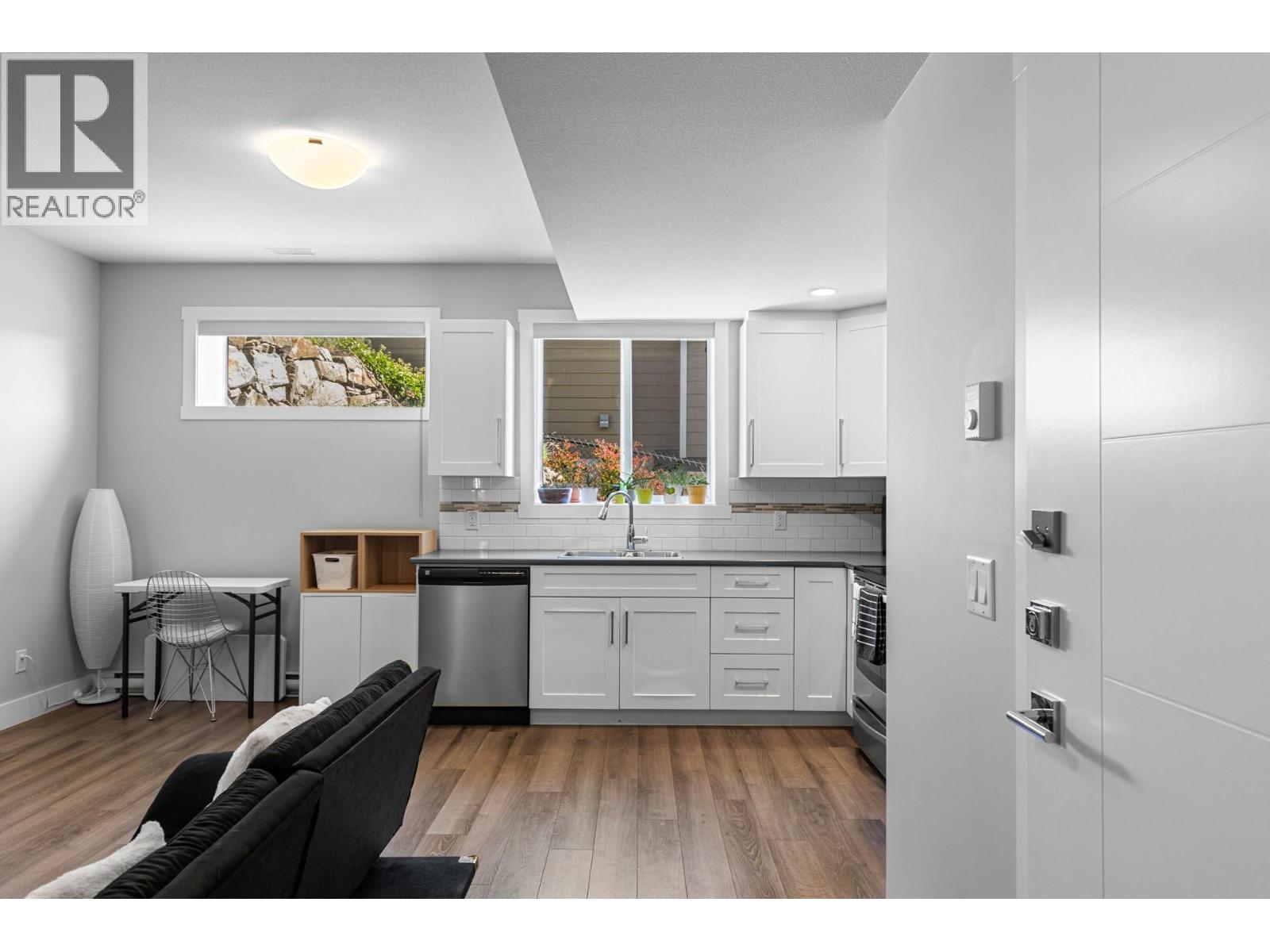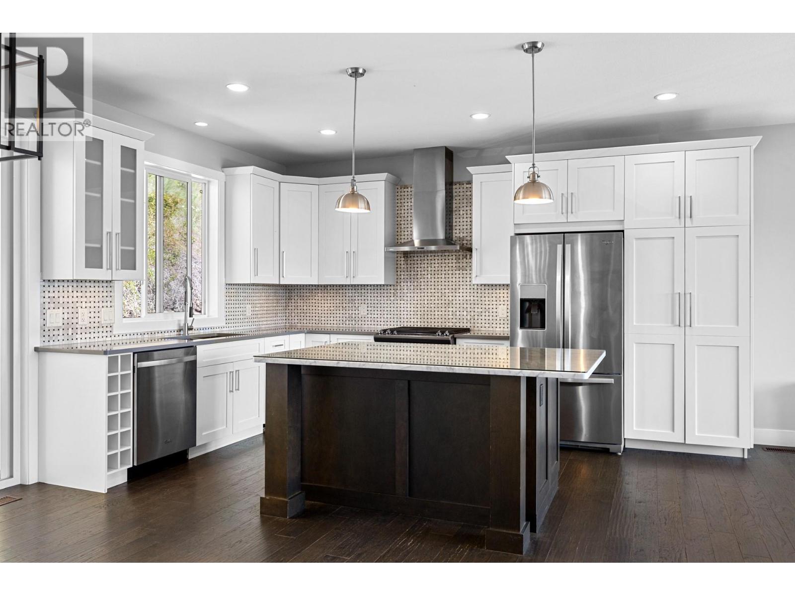 Nestled in the established Wilden neighbourhood, this home is set in a family-friendly community surrounded by nature. Hiking and biking trails are just steps from the door, with parks within walking distance and local ponds that transform into skating rinks in the winter. Families will value the proximity to North Glenmore Elementary and Dr. Knox École, both less than five minutes away, and the convenience of being only 15 minutes to YLW, Aberdeen Hall, and UBCO. This home is the best priced home with a legal suite in Wilden! A thoughtfully designed 4-bedroom, 2-bathroom main home with a legal 1-bedroom suite offers 2,545 sq. ft. of well-appointed living space on a landscaped 0.19-acre lot. The upper level features three bedrooms, laundry, and two bathrooms including a bright primary suite with walk-in closet and spa-inspired ensuite. The lower level adds a versatile fourth bedroom/office plus a fully self-contained suite with private entrance is an ideal space for extended family or rental income. The open-concept main floor boasts vaulted ceilings, engineered hardwood, and large windows that flood the home with natural light. A chef’s kitchen showcases soft-close maple cabinetry, quartz counters, Carrera marble island, and pantry with pull-out shelving. The living room offers a 9’ tray ceiling, gas fireplace with custom built-ins, and access to a fully fenced backyard with hot tub, irrigation, and gas BBQ hookup. Quick possession is available. (id:44393)