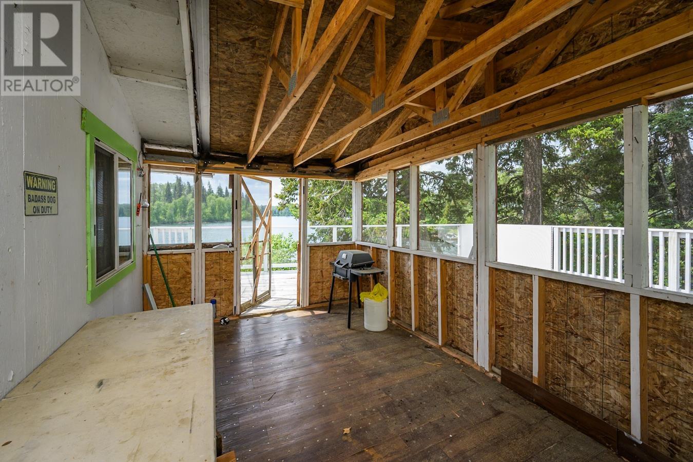 Welcome to 27345 N Ness Lake Road - Just 25 minutes from town, this charming rustic cabin is your ideal lakefront escape. Enjoy 100 feet of beautiful shoreline, a private dock, and a sandy beach—perfect for swimming, boating, and soaking up the sun. The cabin features two cozy bedrooms, a wood stove for those cooler nights, and a spacious deck with stunning lake views. With hydro (no running water), it offers a simple, off-grid lifestyle while still providing comfort. The property includes an RV pad with power and a sani-dump. There is also plenty of flat parking, making it easy to host guests or expand. (id:44393)